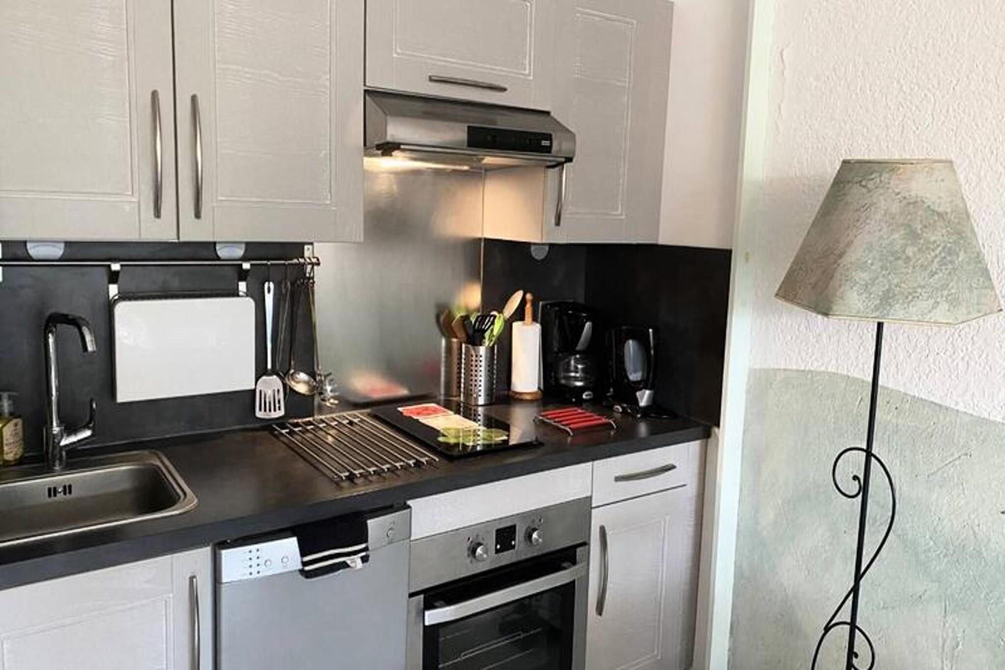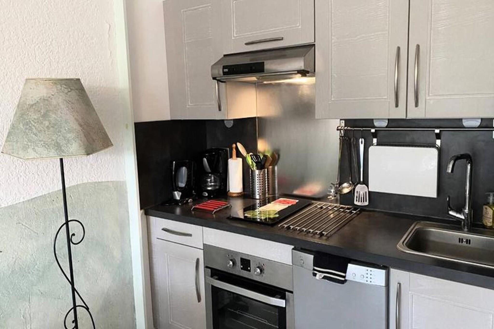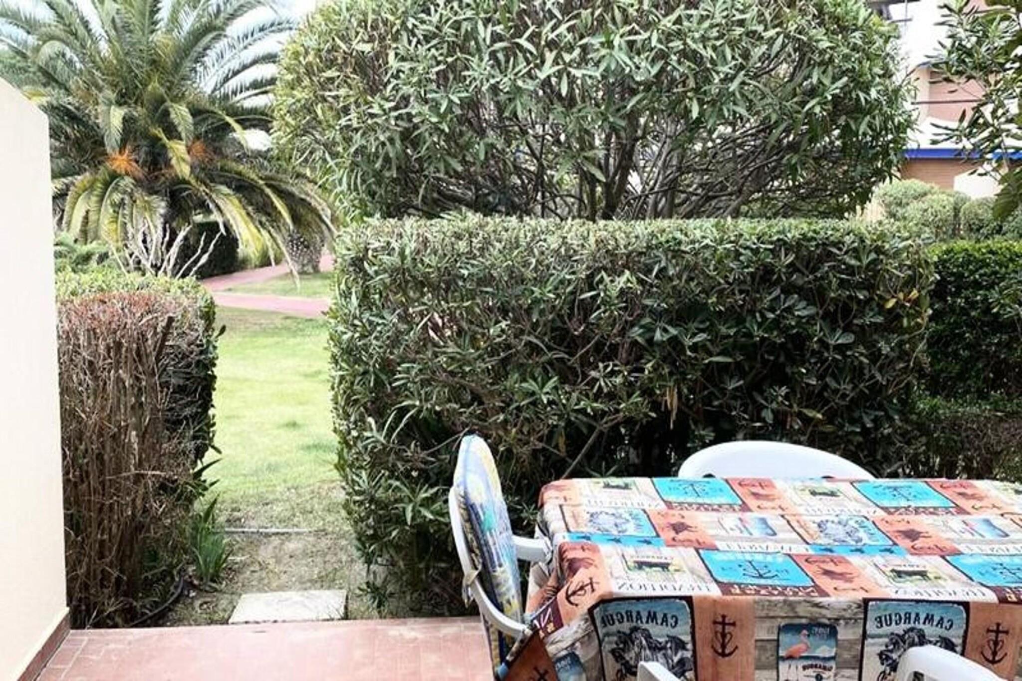 This spacious and bright studio on the ground floor accommodates up to 4 people. It features a 140 cm sofa bed, TV, and a bunk bed for 2, perfect for families or small groups. The apartment is air-conditioned for comfort during warmer days. Located within a secure residence, the studio offers shared parking for your convenience. Please note, the property is not pet-friendly, ensuring a peaceful environment. The studio's prime location is just 100 meters from the beach, making it easy to enjoy the coast. You’ll find shops, restaurants, and cafes within walking distance, offering a variety of dining and shopping options. Public transport is also nearby, providing easy access to explore local attractions and the surrounding area. Everything you need is within reach, making your stay both relaxing and convenient. The apartment is fully equipped with a kitchen featuring a microwave, dishwasher, fridge/freezer, and oven for your meal prep. The bathroom includes a washing machine and WC. Outside, the terrace overlooks the garden and port, creating a serene space to unwind. Whether you're staying for a short or long term, this studio has all the essentials for a comfortable and enjoyable stay.