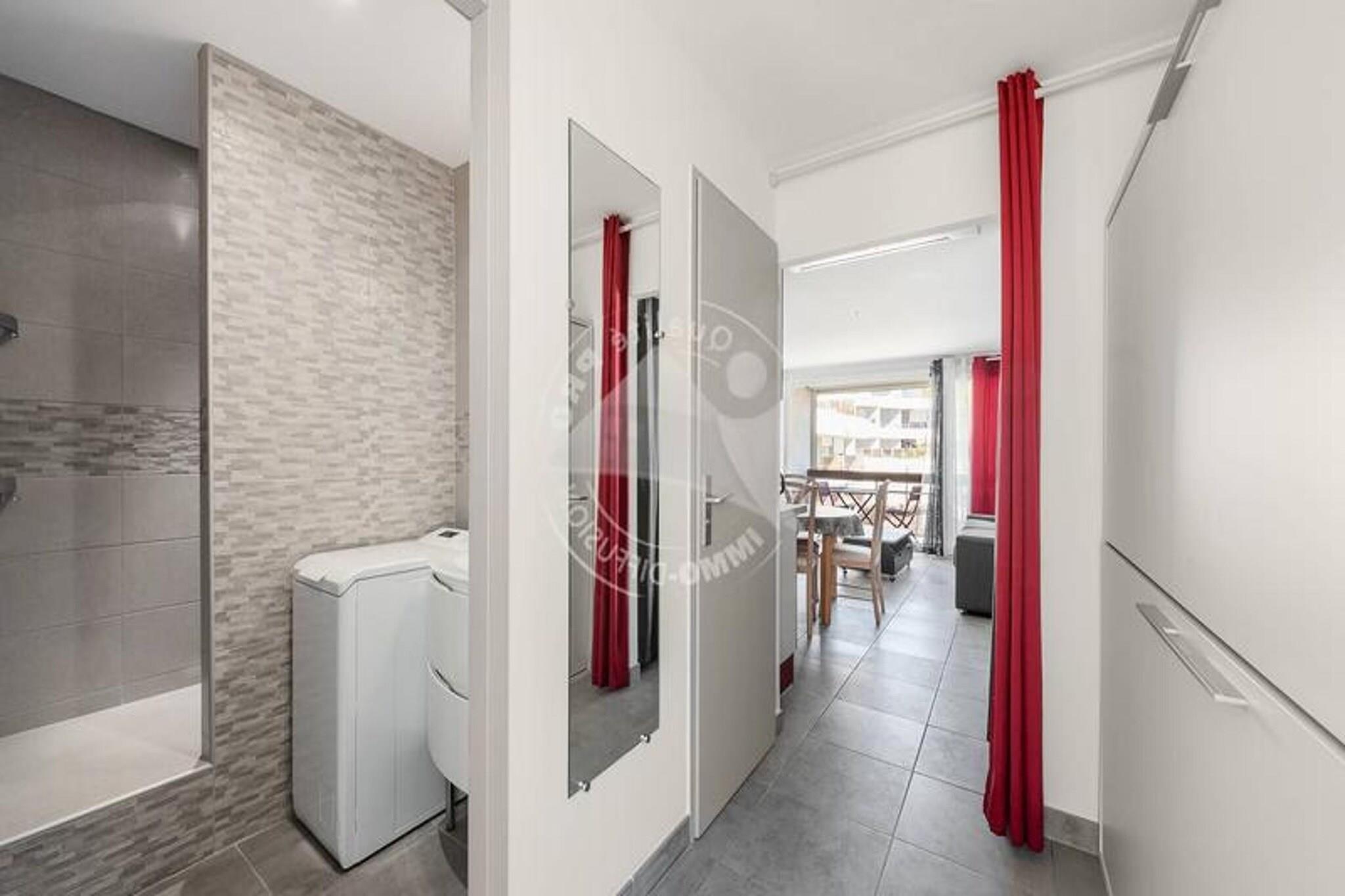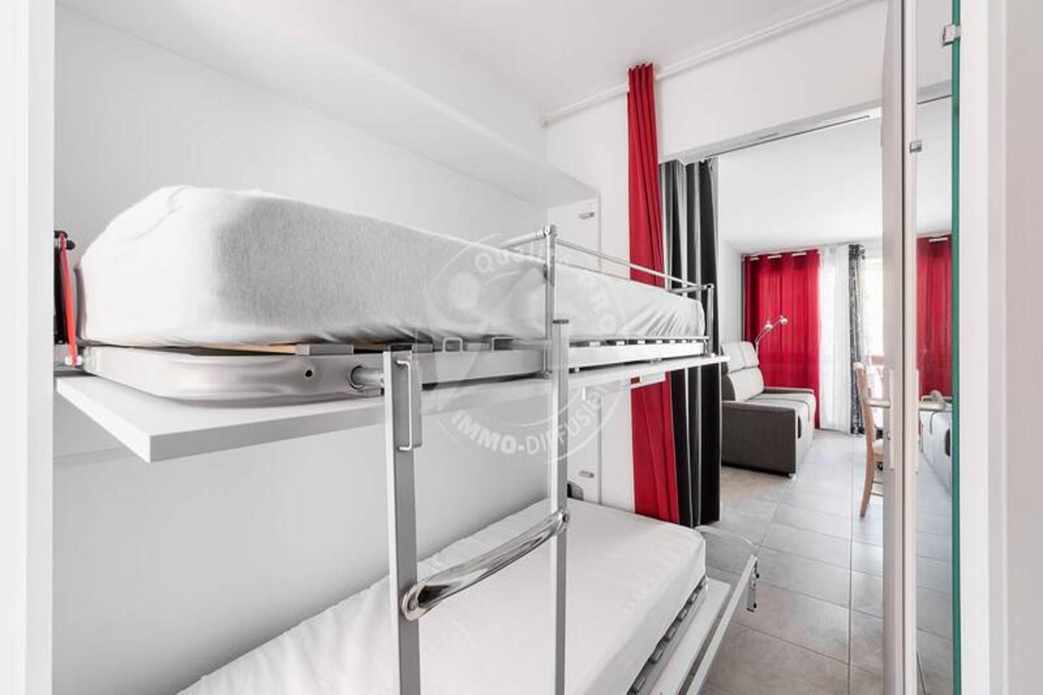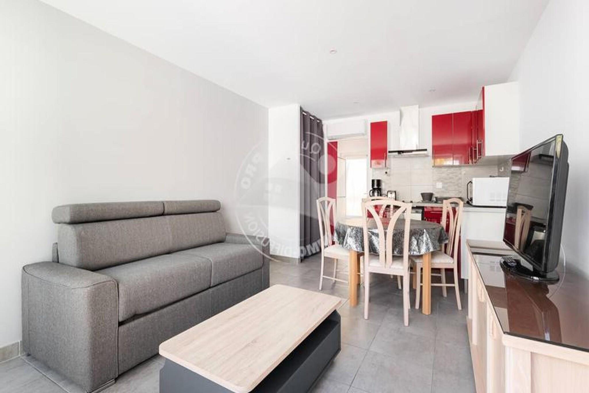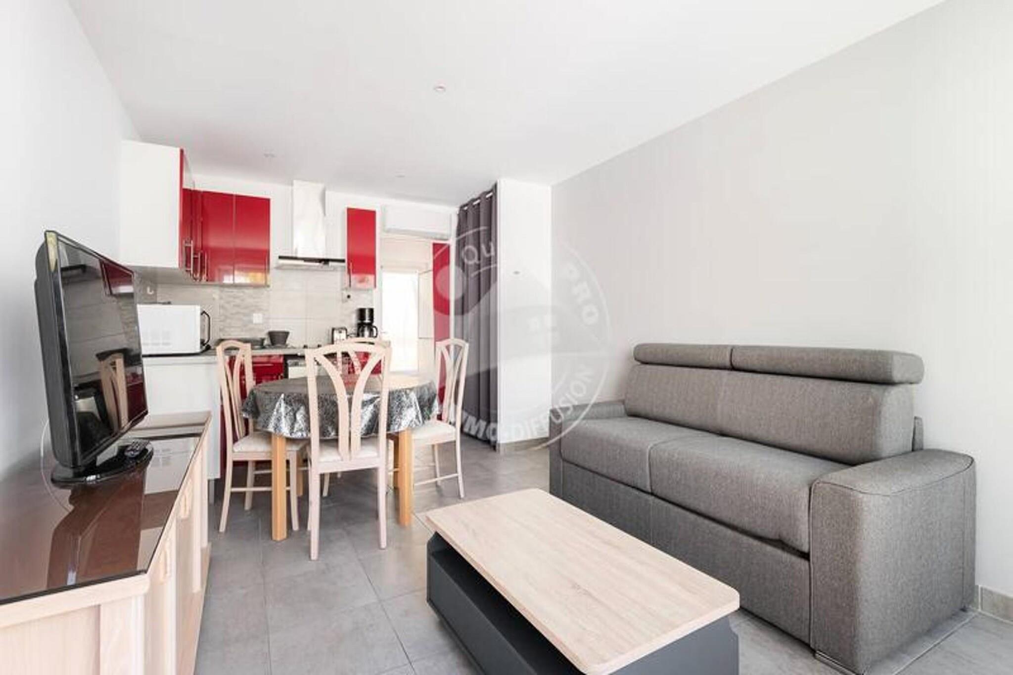 This renovated studio cabin offers a comfortable stay for up to 4 people, featuring a 140cm sofa bed in the spacious living room, air conditioning, and a TV for entertainment. The apartment also includes a cabin with a wardrobe and bunk bed, providing ample sleeping arrangements for all guests. Pets are not allowed. The studio has a 3m² terrace with a side view of the sea, perfect for relaxing outdoors. The residence is located just 20m from the beach, offering convenient access to the water. The property is ideally situated, with the Town Center only 600 meters away, where you can explore local cafes, shops, and attractions. The nearby shopping center, just 500 meters from the apartment, offers additional conveniences and options for dining and shopping. This location is perfect for those who want to enjoy both the beach and the vibrant town atmosphere. The apartment features a fully equipped kitchen with a top fridge, oven/microwave, and hob, ideal for preparing meals. The shower room includes a washing machine, and there is a separate toilet for added convenience. The apartment is thoughtfully furnished to ensure a comfortable and functional stay.