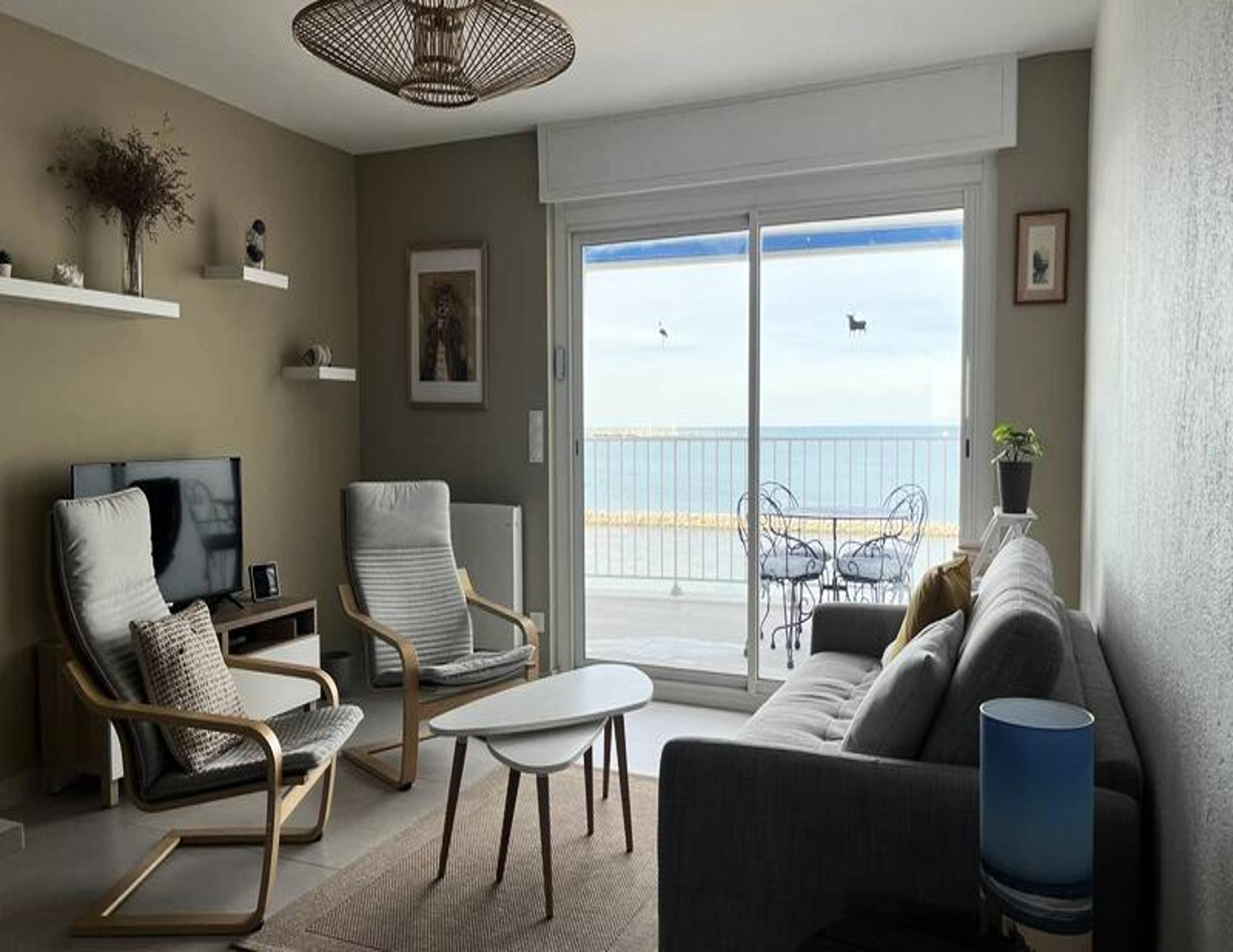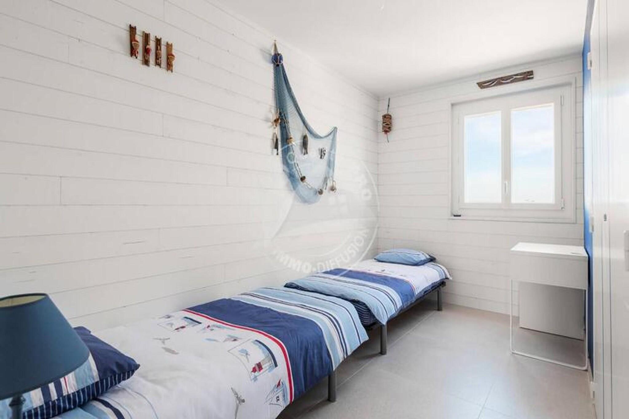 This charming 65m² apartment, located on the 5th and top floor of a building with an elevator, offers a luxurious stay for up to 6 guests. It includes a spacious living room with a 140 cm sofa bed, TV, air conditioning, and Wi-Fi, perfect for relaxation. Two bedrooms are provided: one with a 160 cm double bed, and the other with two 90 cm single beds. Both rooms are air-conditioned and feature mosquito nets for comfort. The apartment is pet-free, ensuring a clean and serene environment for all guests. Situated in the heart of the city center, this apartment boasts a prime location just steps away from the beach. It is conveniently surrounded by a variety of local shops, cafes, and water activity providers, offering endless opportunities for enjoyment. The vibrant atmosphere of the area invites guests to explore the surrounding markets, dine at local restaurants, and experience the charming coastal town of Grau du Roi. The apartment also offers stunning sea views from its terrace, making it an ideal spot for unwinding. The fully equipped kitchen includes modern amenities such as a dishwasher, microwave, fridge/freezer, and oven, ensuring a convenient cooking experience. A bathroom with a washing machine and a separate toilet add to the comfort and functionality of the space. Guests can enjoy a meal on the 12m² terrace with outdoor furniture, electric plancha, and awning, all while taking in the breathtaking view of the sea and the Grau du Roi bay.