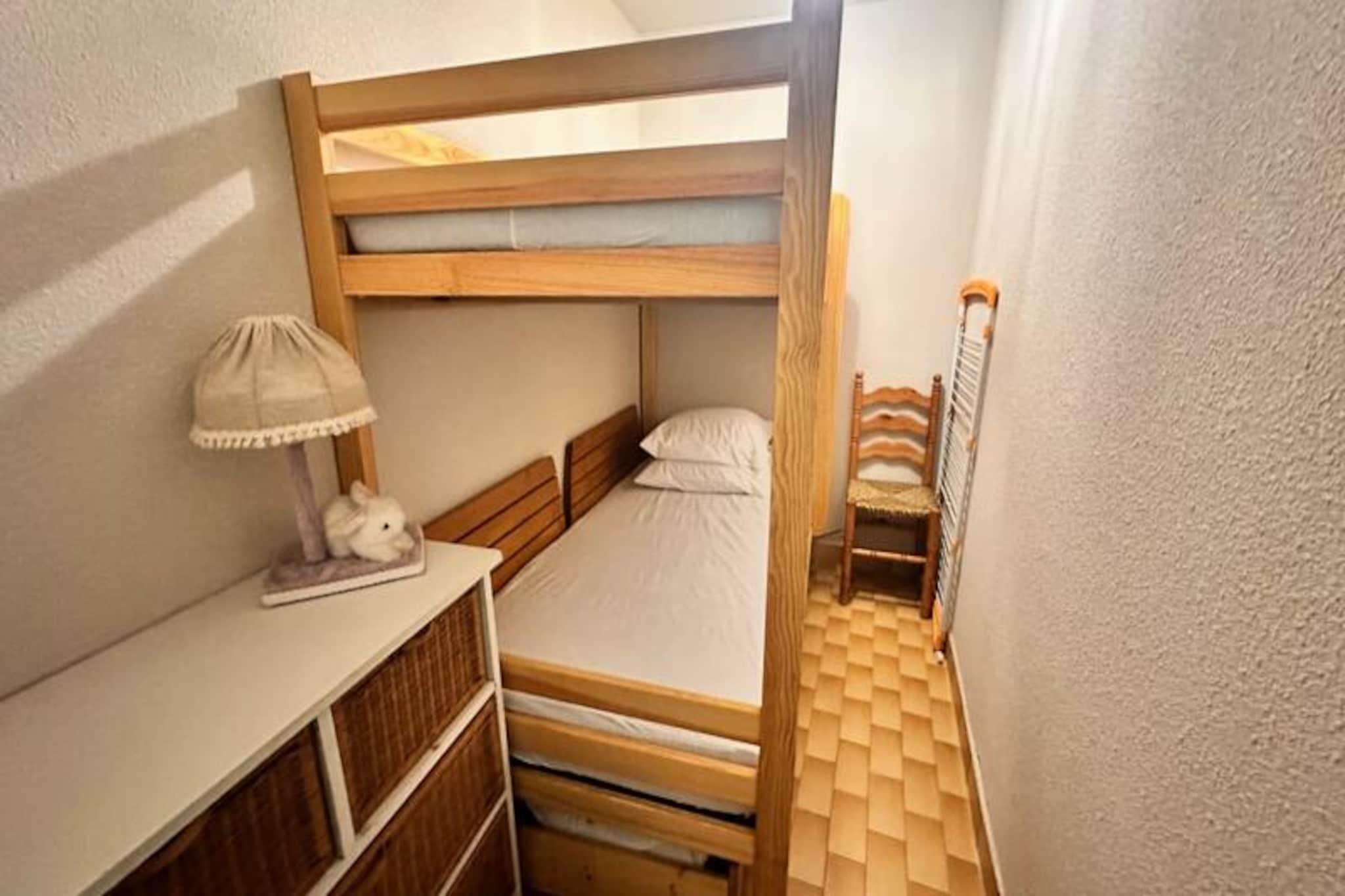 The "Les Vagues" apartment in Port Camargue offers a beautiful terrace with sea views, just steps from the beach. Ideally located, it combines modern comfort, peace and quiet, and proximity to shops and activities. The accommodation Ideally located in the Port Camargue area, this one-bedroom apartment will be a real favorite with sea lovers. Just a few steps from the beach, it will allow you to spend quality time with family or friends before exploring the wonders of the region. Enjoy beautiful walks by heading out to walking distance from the "La Lagune" residence: stroll, discover Europe's largest marina, explore the heart of the village... so many activities nearby! The "Les Vagues" apartment consists of an entrance hall with a cabin bedroom equipped with a bunk bed, a fully equipped open-plan kitchen, and a bright living room with direct access to a superb terrace with sea view. The terrace is ideal for enjoying breakfast or meals outside. A large separate bedroom with a double bed, also with access to The terrace will allow you to relax in complete tranquility. All the necessary equipment is at your disposal for a pleasant stay: coffee machine, toaster, kettle, oven, microwave, refrigerator, etc., as well as all the necessary cooking utensils. The living room also has a TV. A set of sheets for a double bed and 4 bath towels (2 large and 2 small) are included in the reservation. Any additional requests will be charged: EURO25 including tax for a double bed (2 people) EURO15 including tax for a single bed (1 person) Basic products provided, except condiments, shower gel, and shampoo. The Location La Lagune is located in the Port Camargue area, close to all amenities: shops, boutiques, restaurants, and, of course, the beach. It's an ideal location for your vacation, business trip, or short break. Ideal for nature lovers, drop off your bags and enjoy our beautiful seaside resort! Access Enjoy a personalized welcome or independent arrival and departure! You'll have the entire accommodation at your disposal to fully enjoy your stay in the Camargue. All instructions will be provided the day before your arrival. Transportation This apartment comes with a private, secure parking space within the residence. Grau du Roi train station is 5 km away, and bus services are available nearby. The nearest train station with frequent service is Montpellier Sud de France train station, and the nearest airport is Montpellier. The Grand Sud Immobilier team looks forward to welcoming you to "Les Vagues"! Deposit (in euros) - 400