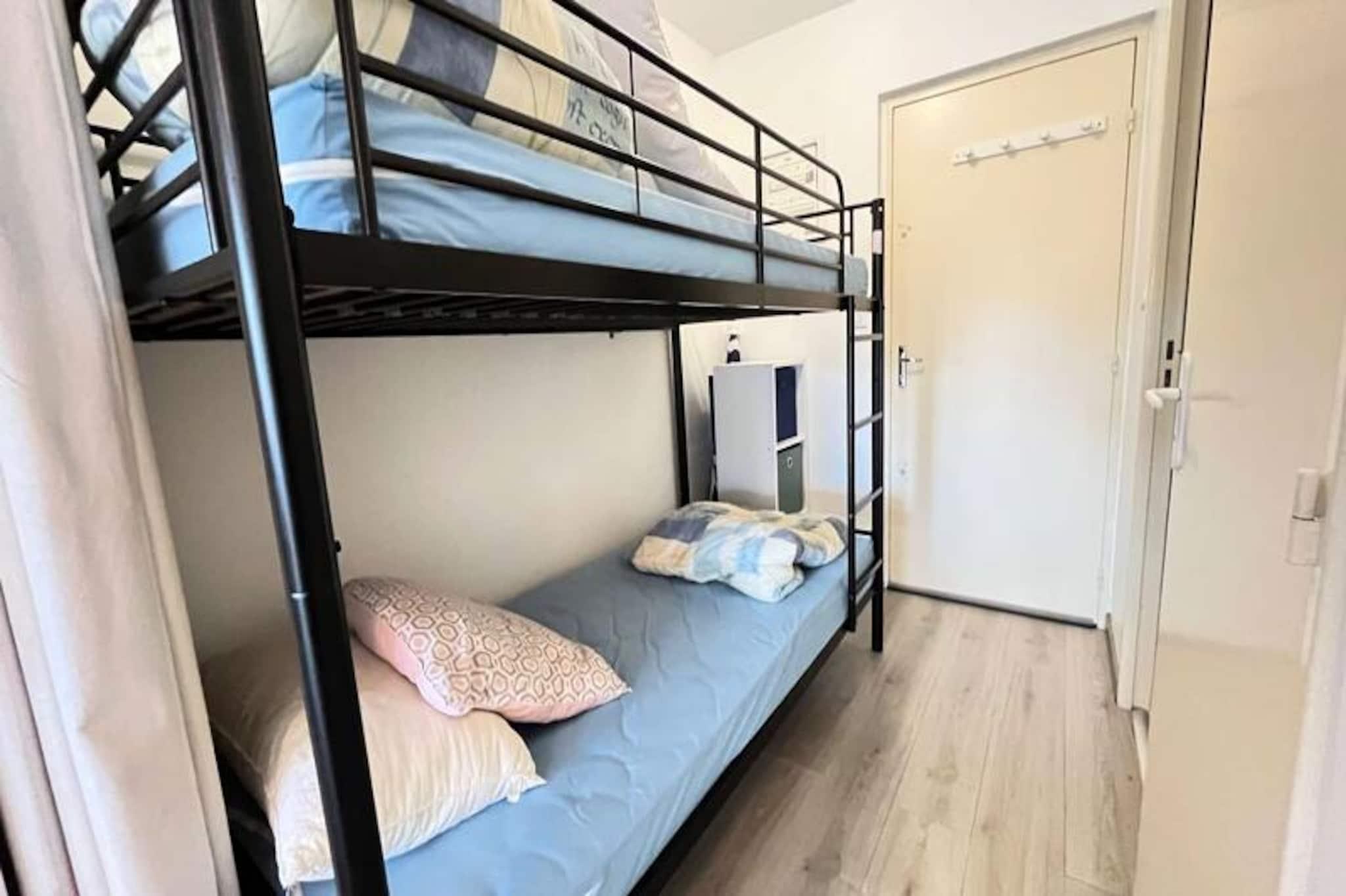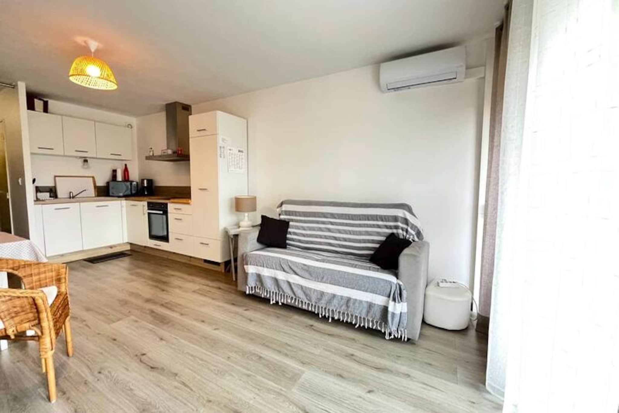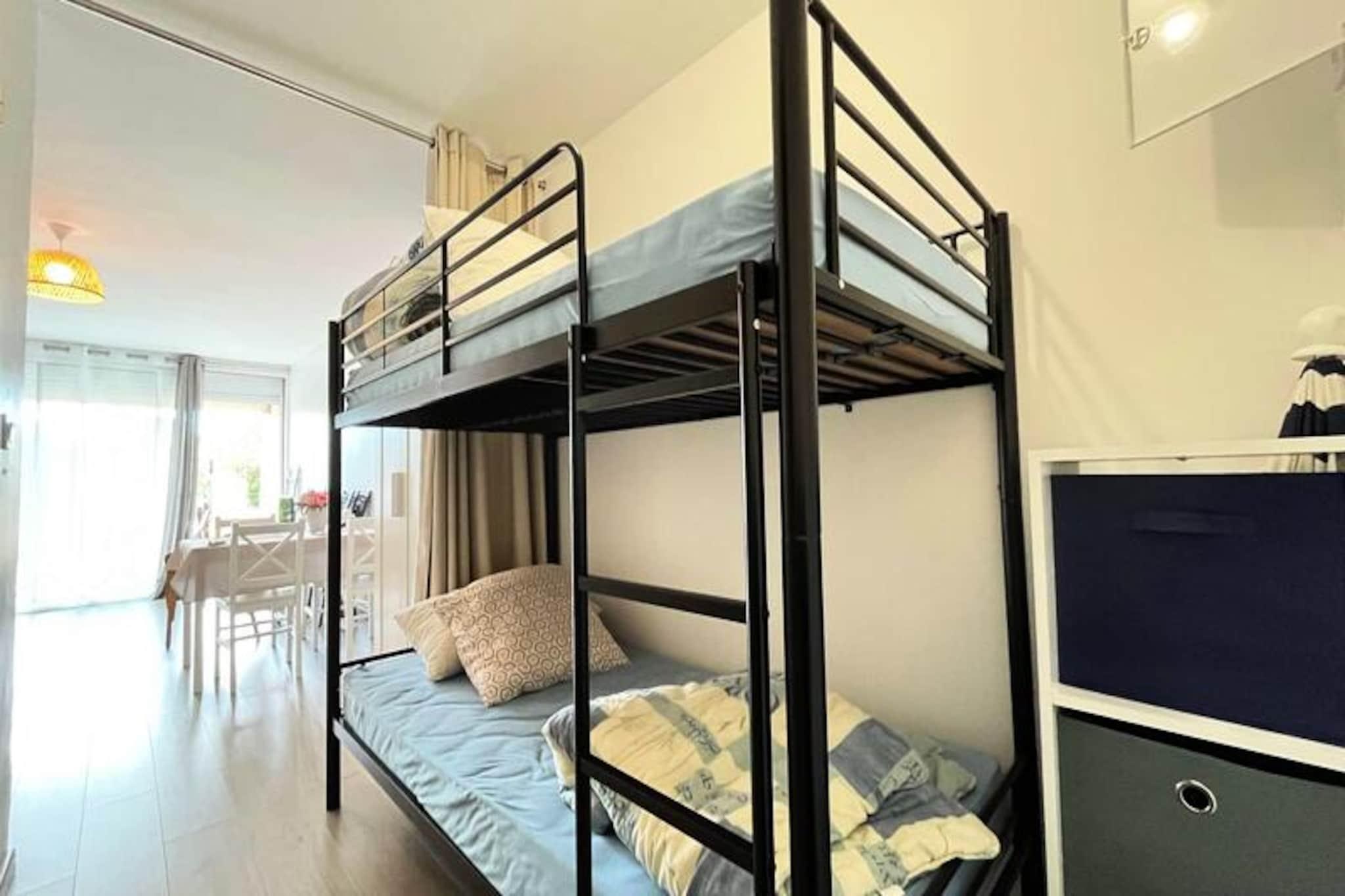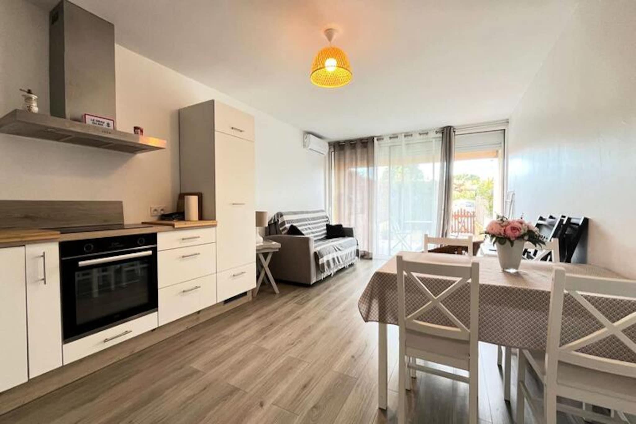 Bask in the Mediterranean charm of this delightful one-bedroom apartment, perfectly situated in the heart of the Camargue Village residence. Just 100 meters from the golden sands of the beach and a short stroll to the vibrant town center of Grau-du-Roi, this property offers the ideal blend of relaxation and convenience. Whether you're savoring the sun on the private terrace or enjoying a meal in the garden courtyard, every moment here feels like a retreat into serenity. \n\nInside, the 42m2 apartment is thoughtfully designed for comfort and functionality. The bright living room features a fully equipped American kitchen, perfect for preparing fresh local delicacies. The cozy bedroom with two single bunk beds and a convertible sofa in the living area comfortably accommodates up to four guests. A modern bathroom completes the space, ensuring a pleasant stay. Additionally, the private parking space adds to the ease of your holiday experience.\n\nBeyond the residence, the wonders of the Camargue region await. Explore the medieval charm of Aigues-Mortes, just 6 km away, with its bustling markets and historic streets. Discover the unique landscapes of the Camargue—marshes, ponds, and wetlands teeming with wildlife such as pink flamingos and white horses. For the adventurous, electric bike tours offer an eco-friendly way to immerse yourself in this unspoiled natural paradise. \n\nWhether you're seeking sun-soaked relaxation or thrilling discoveries, this apartment is your gateway to the enchanting beauty of southern France. Let the Camargue captivate your heart and create unforgettable memories.