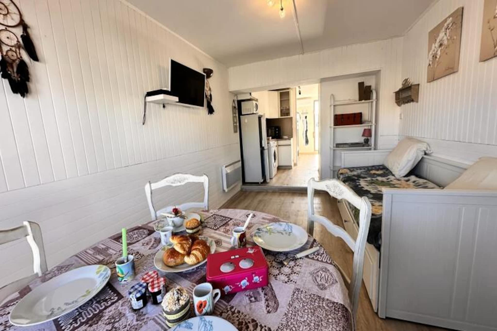 A gentle sea breeze greets you as you step into the heart of Le Grau du Roi, where L'Escapade Salée offers the perfect blend of charm and convenience. Just 100 meters from the golden sands and a short stroll from vibrant shops and restaurants, this delightful studio invites you to immerse yourself in the relaxed rhythm of this picturesque Camargue seaside village. Whether you're seeking tranquil mornings by the shore or lively evenings exploring the marina, this is the ideal retreat for your coastal getaway. Located on the first floor of a peaceful residence, the studio is thoughtfully designed to provide comfort and functionality. The entrance hall features a cozy sleeping alcove with a bunk bed for two, while the bright living and dining area includes a sofa bed to accommodate two additional guests. The semi-open kitchenette is fully equipped with essentials like a coffee machine, toaster, and refrigerator, making it easy to prepare meals after a day of adventure. A separate bathroom and toilet add to the convenience, and linens and towels are provided for your stay. Step outside and discover the charm of Le Grau du Roi at your doorstep. Stroll through the quaint streets, marvel at Europe’s largest marina, or enjoy a leisurely walk along the beach. The nearby train station and bus services make it easy to explore the wider region, including Montpellier and the stunning landscapes of the Camargue. Whether you're here for a weekend escape or a longer stay, L'Escapade Salée promises a memorable experience where the sea, the village, and the beauty of the Camargue come together to create the perfect holiday.