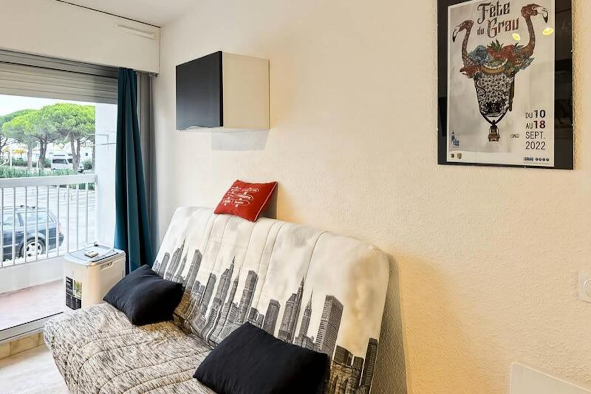 Just a short stroll from the golden sands of Grau du Roi, this charming studio offers the perfect seaside escape. Located on the ground floor, this fully renovated 25m² retreat combines modern comfort with a cozy ambiance, making it an ideal choice for couples or small families seeking a tranquil getaway by the Mediterranean. Imagine waking up to the soft sound of waves and enjoying your morning coffee on the private terrace bathed in sunlight. The vibrant seaside atmosphere and the convenience of nearby shops make this location a true gem. Inside, the studio is thoughtfully designed to maximize space and comfort. The open-plan living area features a fully equipped kitchen, perfect for preparing fresh meals with local ingredients. Two convertible sofas provide flexible sleeping arrangements for up to four guests, ensuring a restful night after a day of exploring. The modern bathroom adds a touch of luxury, while the terrace invites you to unwind and soak in the coastal breeze. Whether you're savoring a quiet evening or sharing laughter with loved ones, this space feels like home. The location is unbeatable. Just five minutes from the beach, you can easily spend your days lounging by the sea, swimming in the azure waters, or enjoying water sports. The nearby shops and restaurants offer everything you need, from fresh seafood to local delicacies. Leave your car behind and explore the charming streets of Grau du Roi on foot or by bike, immersing yourself in the relaxed Mediterranean lifestyle. Whether you're seeking a romantic escape or a family adventure, this studio is your gateway to unforgettable memories by the sea. Book your stay and experience the magic of Grau du Roi, where every moment feels like a postcard come to life.