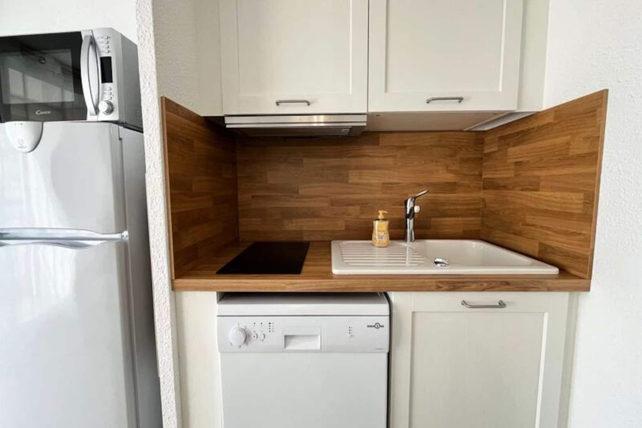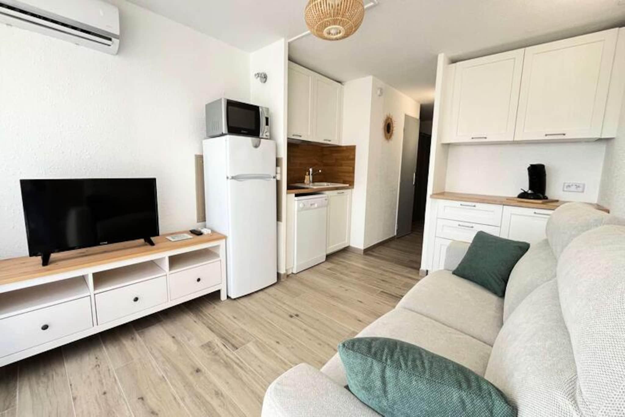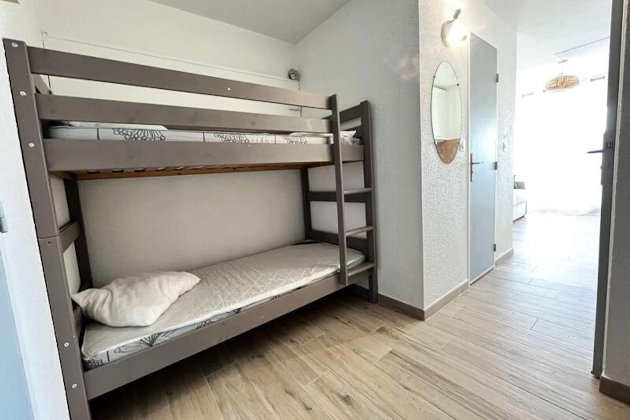 Bask in the Mediterranean charm of this cozy studio located on the first floor of the Le Lagon Bleu residence in the picturesque town of Grau du Roi. With its secure garage, shared pool, and proximity to the region's highlights, this property is perfect for a relaxing getaway. Imagine waking up to the gentle sea breeze, stepping onto your terrace with a view of the sparkling pool, and planning a day filled with coastal adventures and cultural discoveries. Whether you're here for the sun-kissed beaches or the vibrant local markets, this studio offers a delightful base for your stay. The studio is thoughtfully designed to maximize comfort and functionality. It features a living room with a kitchenette, a bathroom with a separate toilet, and sleeping arrangements for up to four guests, including two cabin-style bunk beds and a convertible sofa. The kitchenette is equipped for preparing light meals, while the terrace invites you to unwind with a glass of wine as you soak in the tranquil ambiance of the residence. The secure garage ensures peace of mind, allowing you to explore the region without worry. Grau du Roi is a treasure trove of experiences. Stroll through its charming fishing village, marvel at the impressive Port Camargue marina, or relax on the expansive Espiguette beach, known for its fine sand and breathtaking sunsets. The colorful markets are a feast for the senses, offering fresh produce, local delicacies, and handcrafted goods. For the more adventurous, bicycle rentals are available to explore the scenic surroundings. Whether you're drawn by the allure of the Mediterranean or the rich cultural tapestry of the region, this studio at Le Lagon Bleu promises an unforgettable escape. From the golden beaches to the vibrant sunsets, every moment here is a celebration of the South of France's beauty and charm.