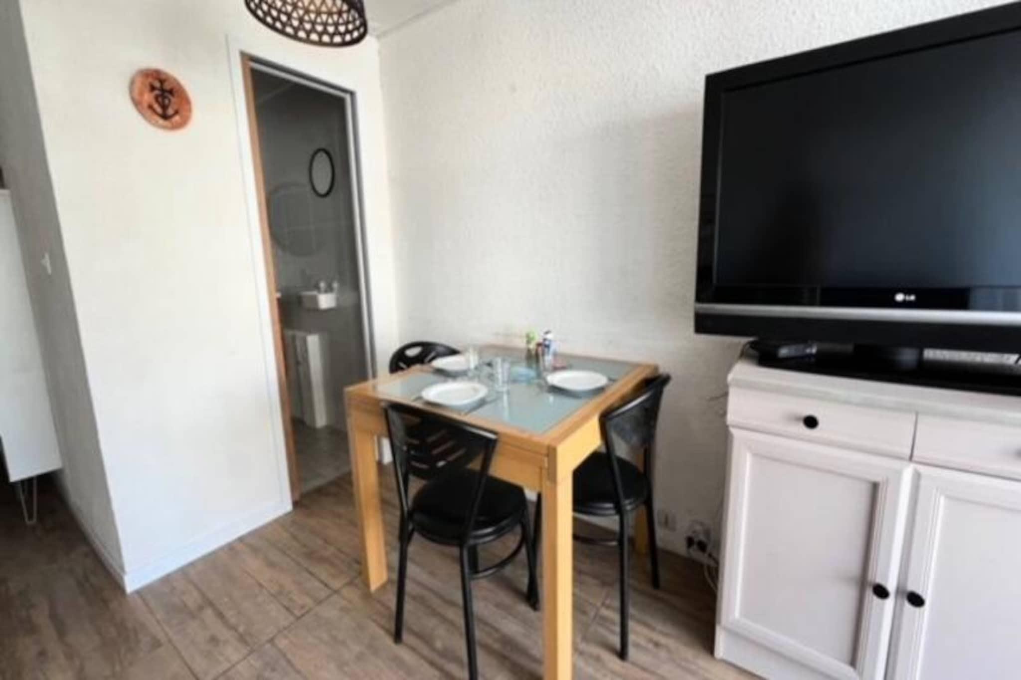 Imagine waking up to the gentle sound of waves and the warmth of the Mediterranean sun streaming through your window. This charming 5-bed studio, located in the well-maintained Le Lagon Bleu residence, offers the perfect blend of comfort and convenience for your seaside escape. Situated just minutes from the sandy beaches of Grau du Roi, this cozy retreat invites you to immerse yourself in the relaxed rhythm of coastal living. Whether you're traveling with family or friends, this studio is your gateway to unforgettable moments by the sea. Inside, the apartment is thoughtfully designed to maximize space and functionality. The living room features a well-equipped kitchenette with a refrigerator, microwave, and a 2-burner electric stovetop, making it easy to prepare meals after a day of exploration. Accommodating up to five guests, the studio includes three single bunk beds and a comfortable sofa bed. Modern amenities such as Wi-Fi and a television ensure a pleasant and connected stay. Located on the first floor with elevator access, the studio combines practicality with a welcoming atmosphere. Step outside, and you'll find yourself just a short walk from the vibrant town center of Grau du Roi, where charming shops, local markets, and delightful restaurants await. For a taste of history, venture 6 km to the medieval city of Aigues-Mortes, known for its stunning architecture and rich cultural heritage. Nature enthusiasts will be captivated by the nearby Camargue region, a haven for wildlife and breathtaking landscapes. Explore the marshes, ponds, and wetlands by electric bike or join a guided tour to witness the iconic pink flamingos, white horses, and majestic bulls in their natural habitat. Whether you're seeking relaxation on the beach, adventures in nature, or a journey through Provence's history, this studio offers the ideal base for your holiday. Create lasting memories in this picturesque corner of southern France, where every day feels like a dream.