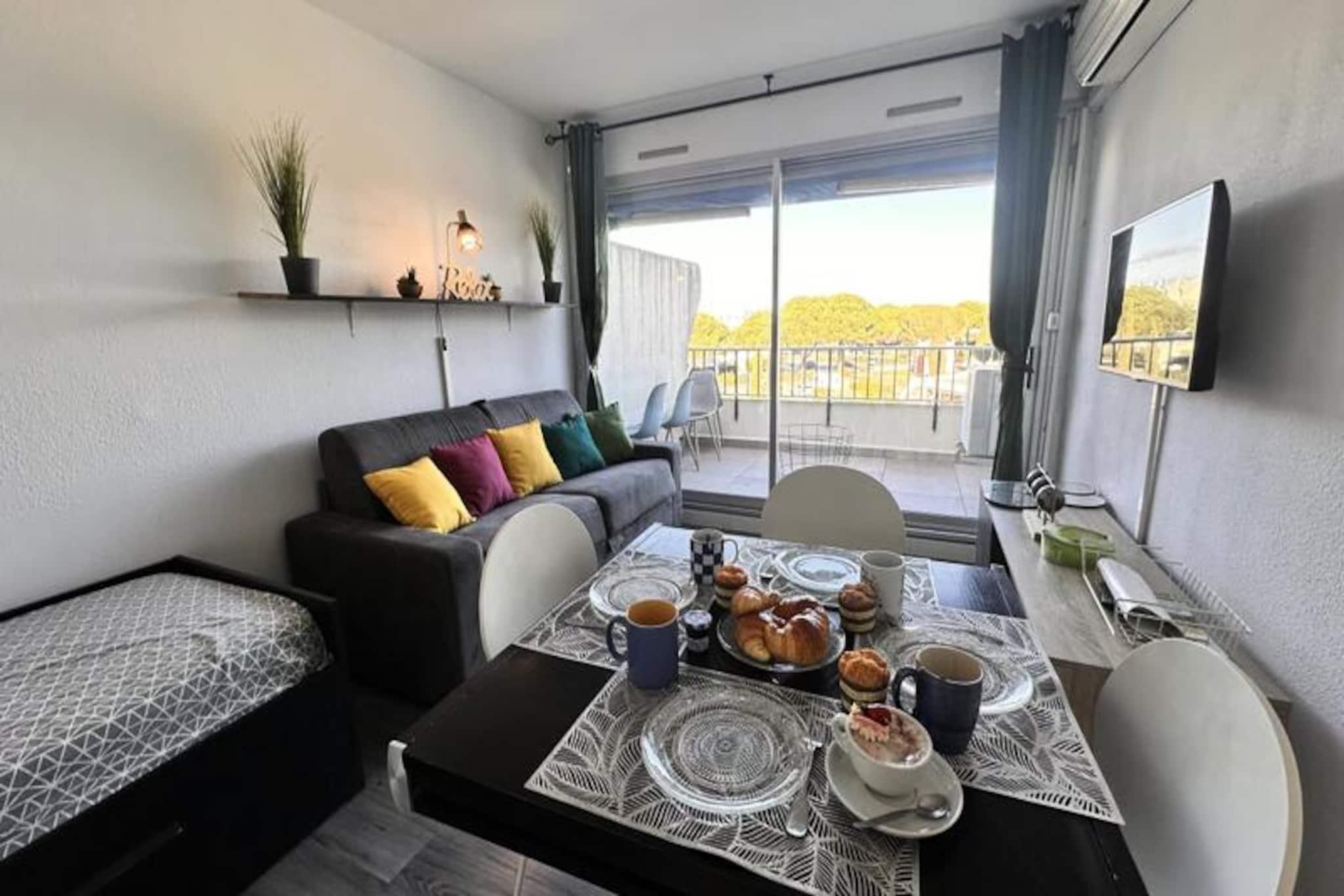 Located in Port Camargue, "Les Jardins du Port" is a studio apartment ideally situated just steps from the beach, with a swimming pool, landscaped garden, and modern amenities for a peaceful stay. Close to shops and the town center, it's the perfect place for your vacation or short break. The Accommodation Situated in a prime location in Port Camargue, this studio apartment, "Les Jardins du Port," is a true haven of peace for lovers of the sea and nature. Ideal for a peaceful vacation, it is just steps from the beach and close to Europe's largest marina. The residence offers numerous amenities, including a swimming pool, a wooded garden, a barbecue, and a ping-pong table, perfect for spending time with family or friends. An on-site concierge service ensures optimal comfort. The apartment features an entrance hall with a kitchenette, a bright living room with access to a terrace, and a bathroom with a toilet. Enjoy all the amenities you need for your comfort: coffee machine, toaster, kettle, microwave, refrigerator, and much more. A set of sheets for a double bed and four bath towels (two large and two small) are included in the reservation. Any additional requests will be charged at EURO25. VAT included for a double bed (2 people) or EURO15 VAT included for a single bed (1 person). Basic products provided except condiments, shower gel, and shampoo. Location "Les Jardins du Port" is located in Port Camargue, close to shops, boutiques, restaurants, and the beach. Just a few minutes' walk from the town center and the port, this location is ideal for exploring the region and enjoying all the local activities. Ideal for lovers of nature and coastal scenery, come and enjoy this popular seaside resort for your vacation or short stay. Access Enjoy a personalized welcome at your arrival and departure. or independently. You will have the entire accommodation to enjoy your stay in the Camargue. All information will be provided to you before your arrival. Transportation Free parking is available in front of the residence. Grau du Roi train station is 3.5 km away, and bus services are nearby. Montpellier Sud de France train station and Montpellier airport are easily accessible. The Grand Sud Immobilier team looks forward to welcoming you to "Les Jardins du Port"! Deposit (in euros) - 400
