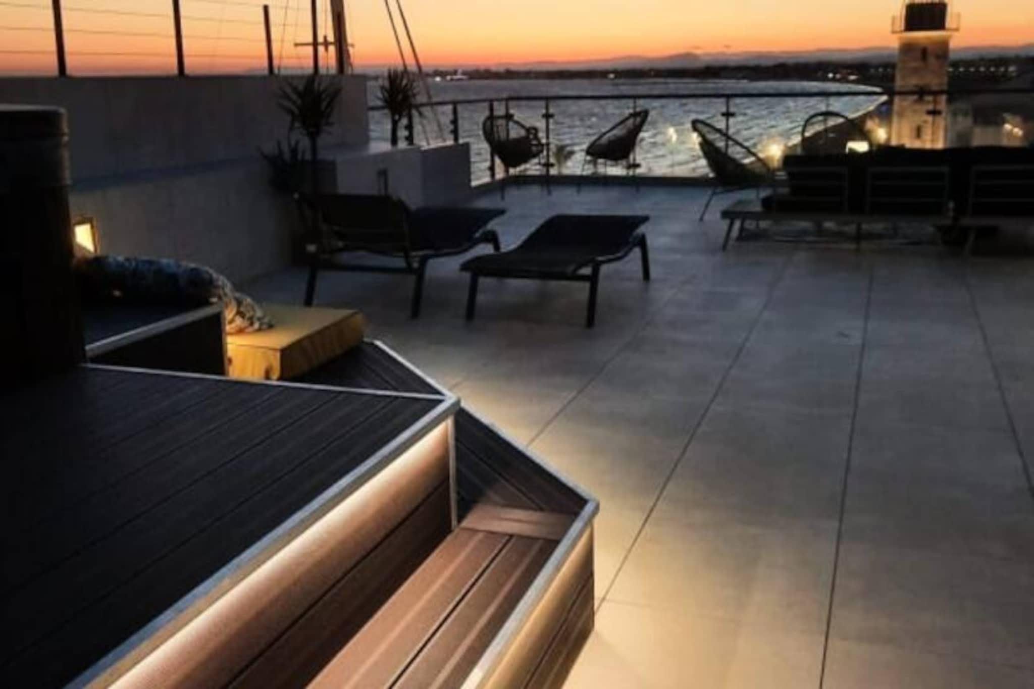 The "Le Phare" apartment is located in the heart of the seaside resort, close to all shops, restaurants, and beaches, right at the foot of the residence overlooking the Quai Colbert in Grau du Roi, an emblematic place marking the entrance to the fishing port. Facing the old lighthouse, facing the sea, it benefits from high-end standards with an elevator, reversible air conditioning, and Wi-Fi. The accommodation The "Le Phare" apartment is located on the Quai Colbert in Grau du Roi, an emblematic place marking the entrance to the fishing port. Facing the old lighthouse, facing the By the sea, there's no better location to experience local life, watch the trawlers go out to sea and return from fishing, watch the small businesses sort the fish and set up their stalls. A wonderful place to live just a two-minute walk from all amenities and the beach. This is a luxury apartment, the only one in Grau du Roi. Elevator, reversible air conditioning, parking, garage, Wi-Fi, terraces with sea views... make it a truly exceptional place, on the 3rd and top floor of the residence. This apartment is a duplex. Le Phare is very comfortable and has three bedrooms: one bedroom with a 160 cm bed, one bedroom with a 140 cm bed, and one bedroom with two 80 cm single beds. It also offers a living room with breathtaking views of the Old Lighthouse, the Canal, and the sea, accompanied by a fully equipped kitchenette. Everything is very spacious, modern, airy, and contemporary. Each bedroom has its own bathroom area, with either a shower or a bathtub. The apartment is equipped with a TV, dishwasher, washing machine, and dryer, providing all the necessary comfort. And above all, a rooftop terrace of over 100 m² with breathtaking views of the bay, most pleasant. All without vis-à-vis, sheltered from view, and close to from all shops and the beach. At your disposal: coffee machine, toaster, kettle, oven, microwave, refrigerator, as well as all the necessary utensils to prepare delicious meals. The living area is pleasant, bathed in light, with a sofa and several armchairs, a TV, and air conditioning. Enjoy the peace and quiet and relax in one of the three cozy bedrooms with their refined decor. Sheets and towels are included. Basic products are provided, except for condiments, shower gel, and shampoo. The Location This apartment is located on the left bank of Grau du Roi, an emblematic spot marking the entrance to the fishing port. A wonderful place to live, close to all amenities and the beach. The beach is immediately at the foot of the residence, making it an ideal location for your vacations, business trips, or short breaks. Ideal for lovers of beautiful landscapes, drop off your bags and enjoy our lovely seaside resort! Access Enjoy a personalized welcome on arrival and departure! You will have the entire apartment at your disposal to fully enjoy your stay in the Camargue. Transportation You have a private parking space on site and you can also park a city car in the garage. For electric cars, you can plug your vehicle into a standard outlet in the garage. Grau du Roi train station is 1 km away. Bus services are available nearby. The Montpellier Sud de France TGV train station is the closest, and Montpellier Airport is also accessible. The Grand Sud Immobilier team looks forward to welcoming you to "La Résidence Le Phare"! Deposit (in euros) - 800