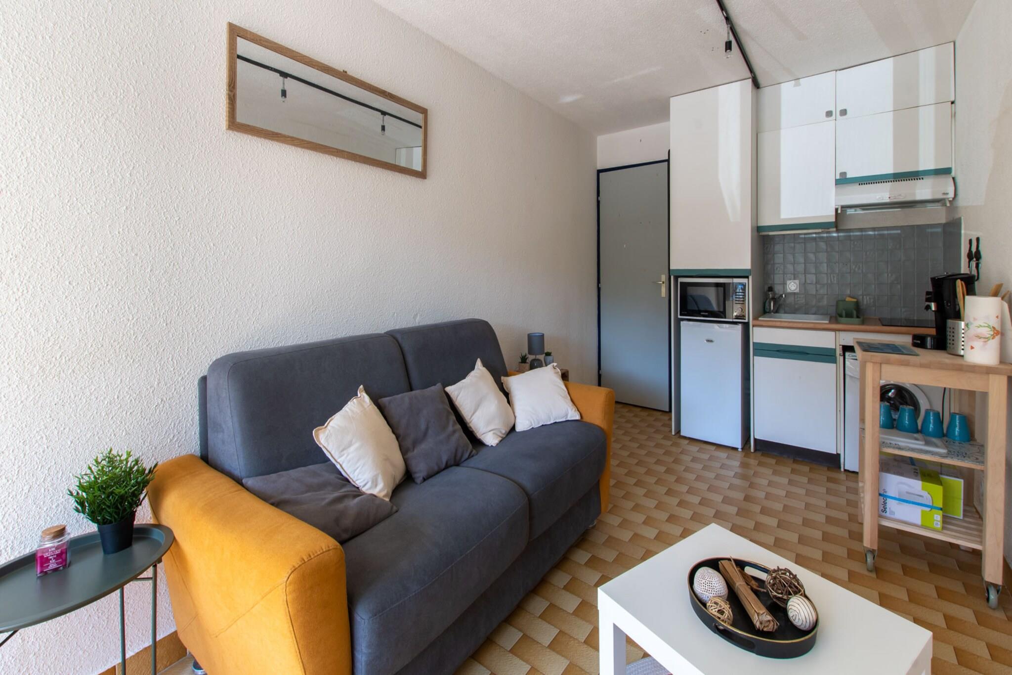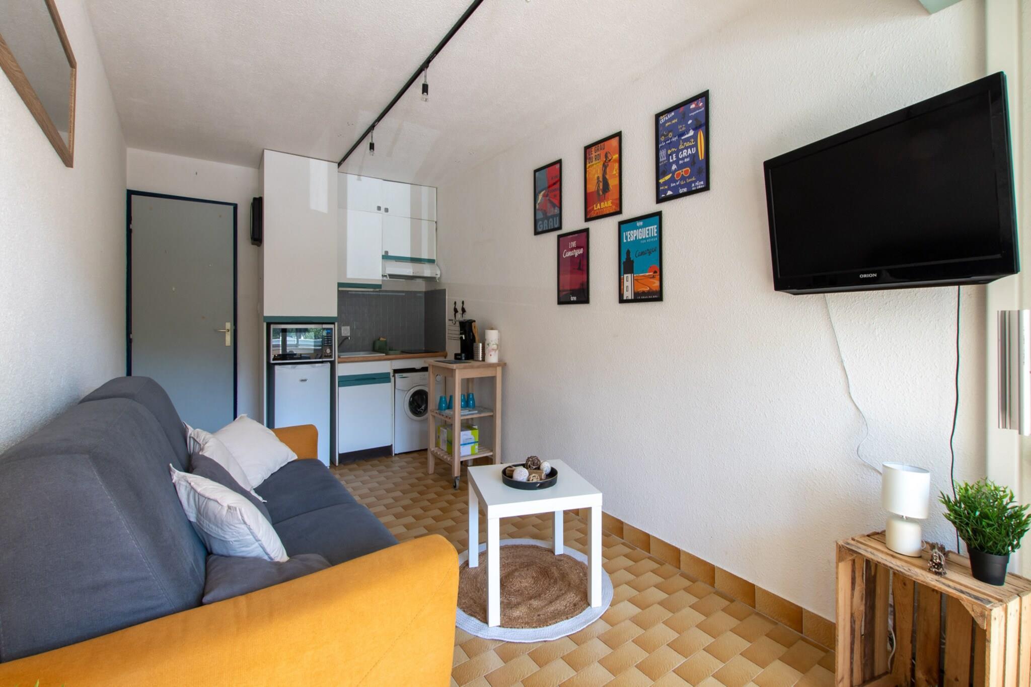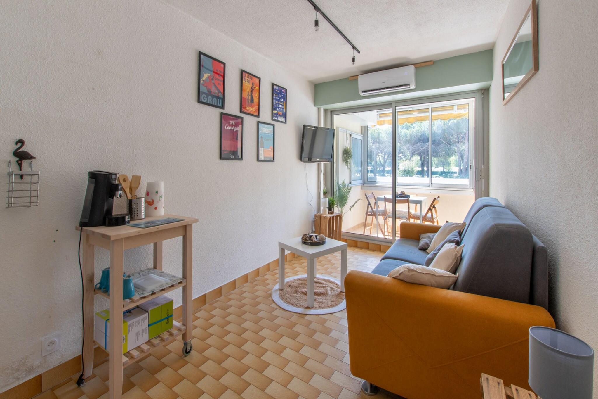 Just steps from the golden sands of Le Grau-du-Roi, this cozy 27m² studio offers a bright and welcoming retreat for up to 4 guests. Located in a family-friendly area, it’s perfectly positioned with a supermarket and restaurant only 20 meters away, and the beach just 100 meters from your door. The open-plan layout includes a comfortable living space with two double sofa beds and a TV, ideal for relaxing after a day in the sun. The well-equipped kitchen features an electric cooktop, refrigerator, microwave, coffee machine, toaster, and kettle, everything you need for easy meals at home. A modern bathroom with a shower and a washing machine adds convenience, while electric heating and air conditioning ensure year-round comfort. Outdoor furniture on the private terrace invites you to enjoy morning coffee or evening drinks in the garden. With open-air parking in the same building and all essentials within walking distance, this studio is a perfect base for beach lovers and casual explorers. Whether you're here for a weekend getaway or a longer seaside stay, it offers simplicity, charm, and unbeatable location.