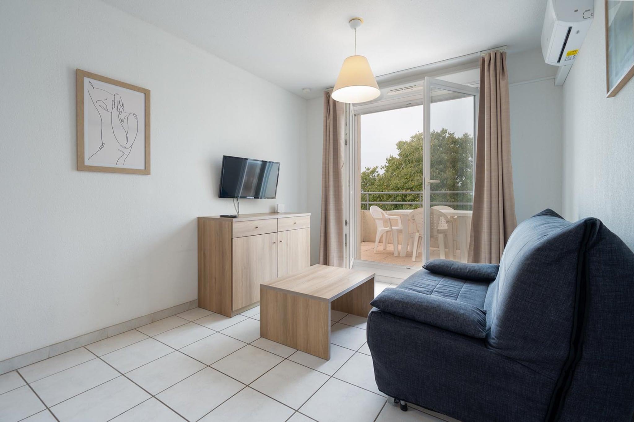 Enjoy a relaxing stay in this cozy 1-bedroom apartment in Le Grau-du-Roi, thoughtfully designed for up to 4 guests. The 45 m² space features a comfortable bed, air conditioning, high-speed Wi-Fi, and a TV for entertainment. A private balcony with outdoor furniture invites you to unwind in the fresh sea breeze, while the indoor hot tub offers a soothing retreat. Pets are welcome, making it ideal for travelers with furry companions. Located just 800 meters from the city center and 1 km from the sandy beach, the apartment offers easy access to charming cafés, bustling markets, and scenic coastal walks. Nestled in a quiet zone, it provides a peaceful escape while keeping you close to the vibrant local scene. Whether you're exploring the town or soaking up the sun, everything is within reach. The open-plan kitchen is fully equipped with an electric stove, refrigerator, microwave, freezer, coffee machine, toaster, and kettle, perfect for self-catering. A clean, modern washroom ensures comfort, and guests can enjoy the communal swimming pool and open-air parking on-site for added convenience.
