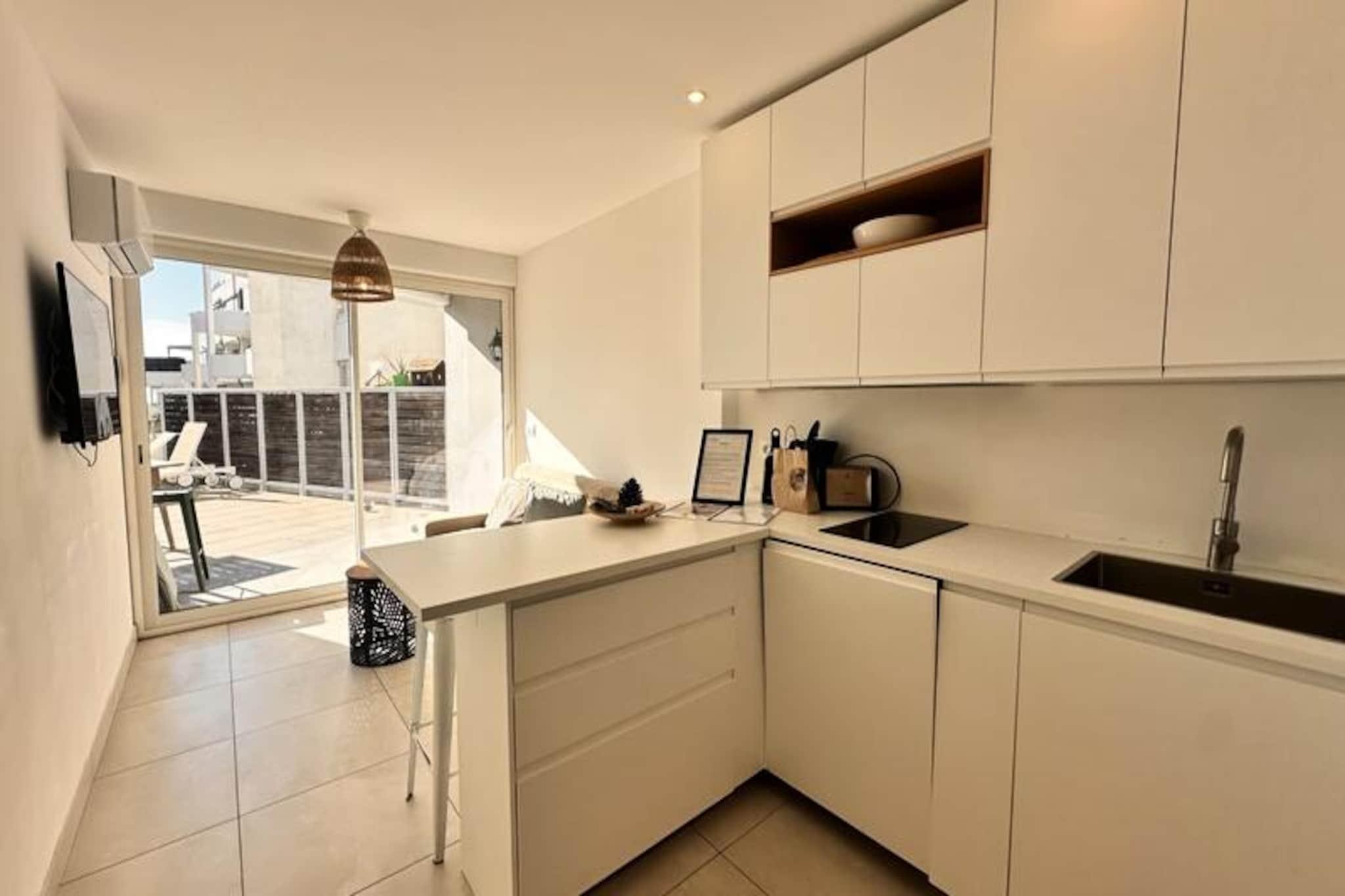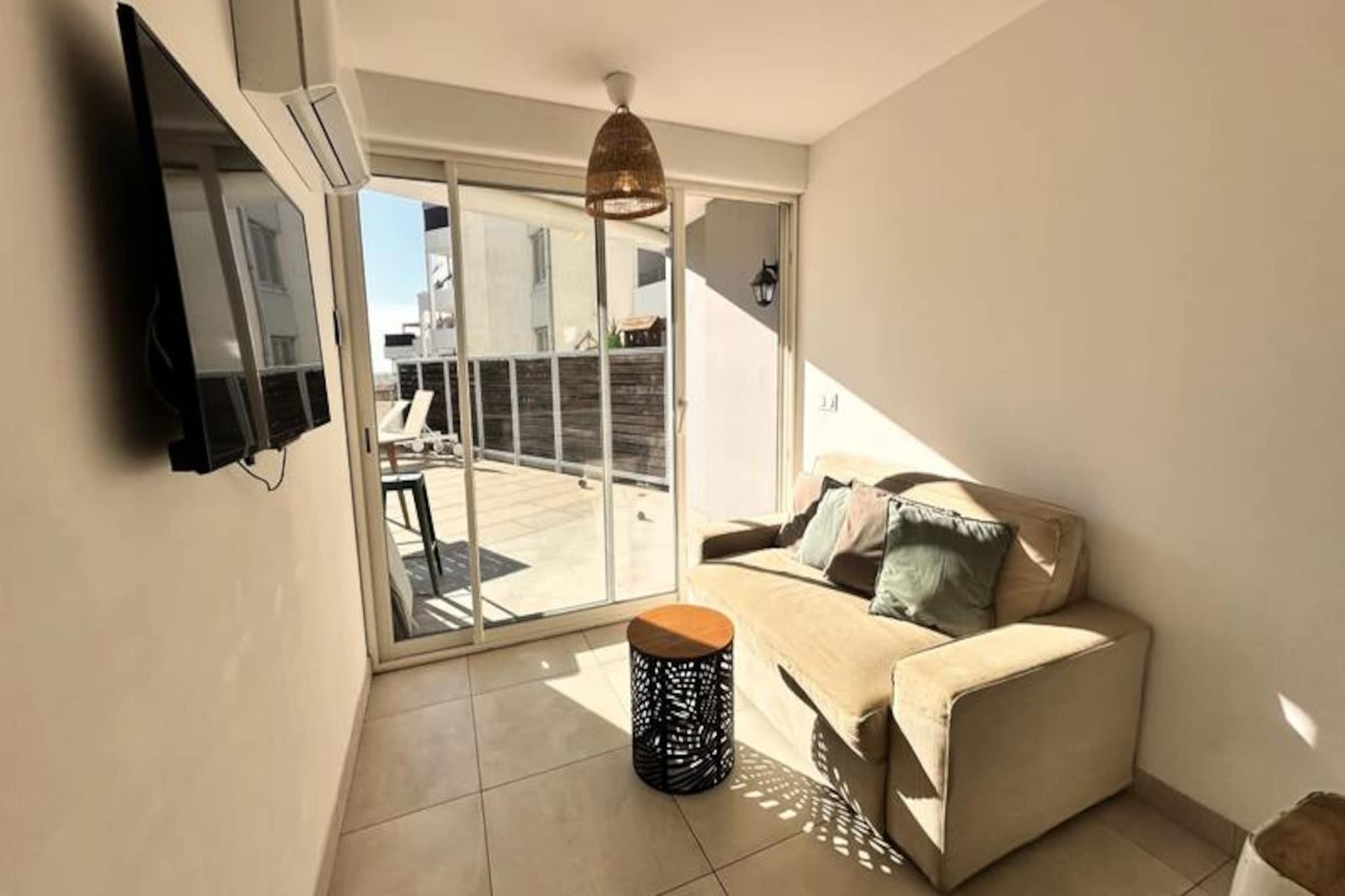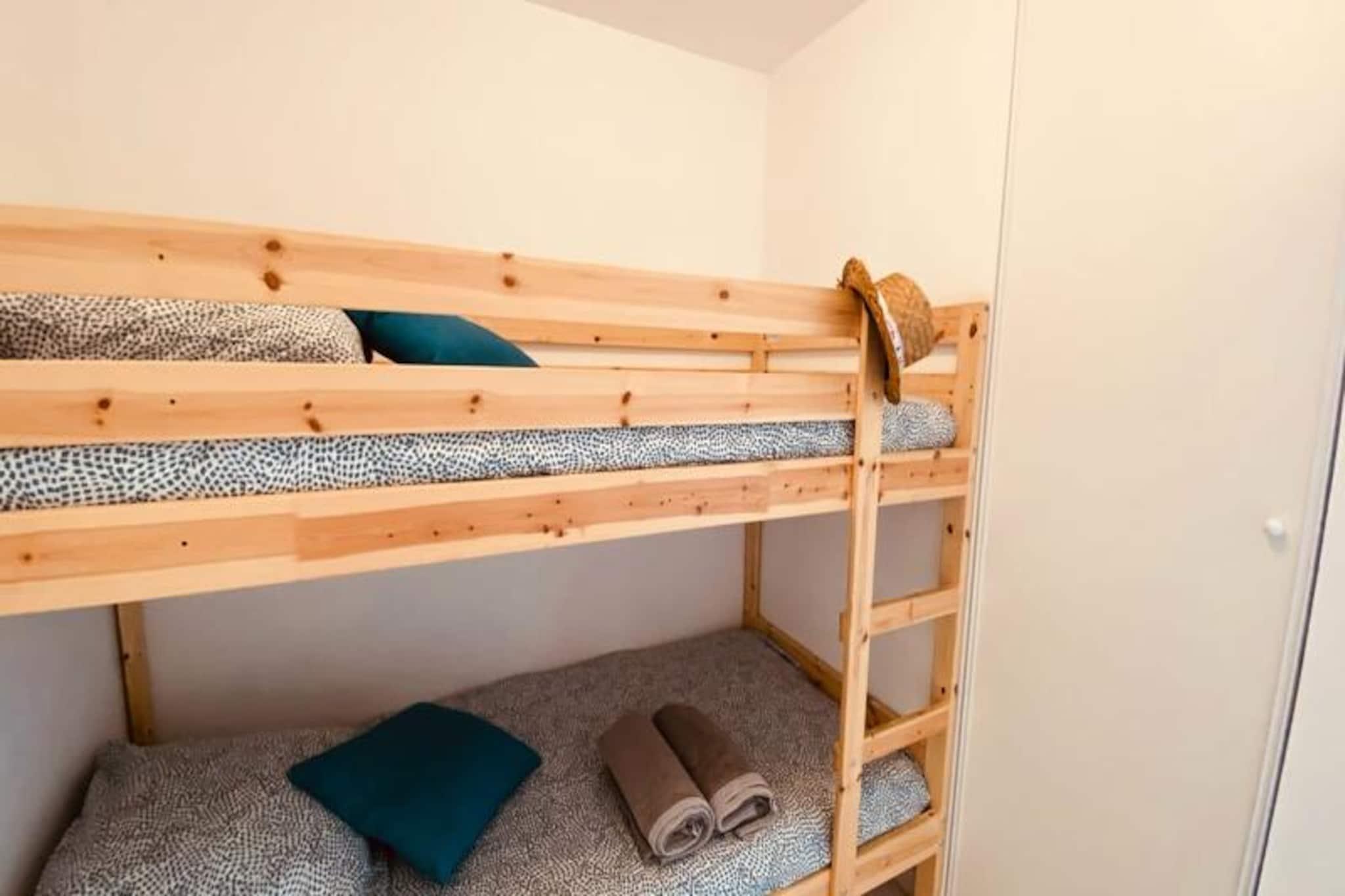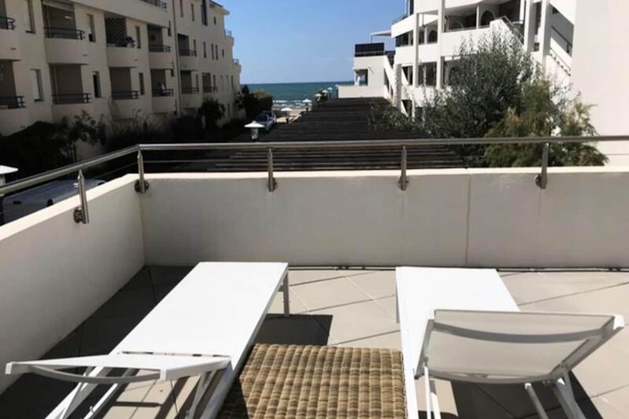 Where the sparkling Mediterranean meets the charm of Grau-du-Roi, this delightful 1-bedroom apartment offers a serene escape with breathtaking sea views. Perched on the first floor of the Château Leenhardt residence, this coastal gem invites you to unwind on its expansive 70 m² terrace, perfectly positioned to capture the vibrant hues of the setting sun over the bay of Aigues-Mortes and La Grande-Motte. With private beach access and a tranquil yet central location, this is the ideal retreat for couples or small families seeking a blend of relaxation and adventure. Inside, the apartment is thoughtfully designed for comfort and convenience. The bright and modern living room opens to the terrace, creating a seamless indoor-outdoor flow. A cozy bedroom with a double bed ensures restful nights, while a charming cabin with bunk beds adds a playful touch for children. The open-plan kitchen is fully equipped with everything you need, from a coffee maker to a microwave, making it easy to prepare meals after a day at the beach. Reversible air conditioning ensures a comfortable stay year-round, and the inclusion of linens and towels adds to the ease of your holiday. Step outside, and you’ll find yourself in the heart of Grau-du-Roi, with shops, markets, and restaurants all within walking distance. Explore the nearby cycle paths leading to the picturesque Salins d'Aigues-Mortes or indulge in water sports, cruises, and 4x4 excursions through the stunning Camargue landscape. For family fun, Luna Park and Amigoland are just a short drive away, while the Espiguette and Port-Camargue beaches offer pristine sands and crystal-clear waters. Whether you’re here to soak up the Mediterranean sun, savor local delicacies, or explore the natural beauty of the region, this apartment provides the perfect base for an unforgettable coastal getaway. Let the gentle sea breeze and the charm of Grau-du-Roi welcome you to a truly memorable holiday.