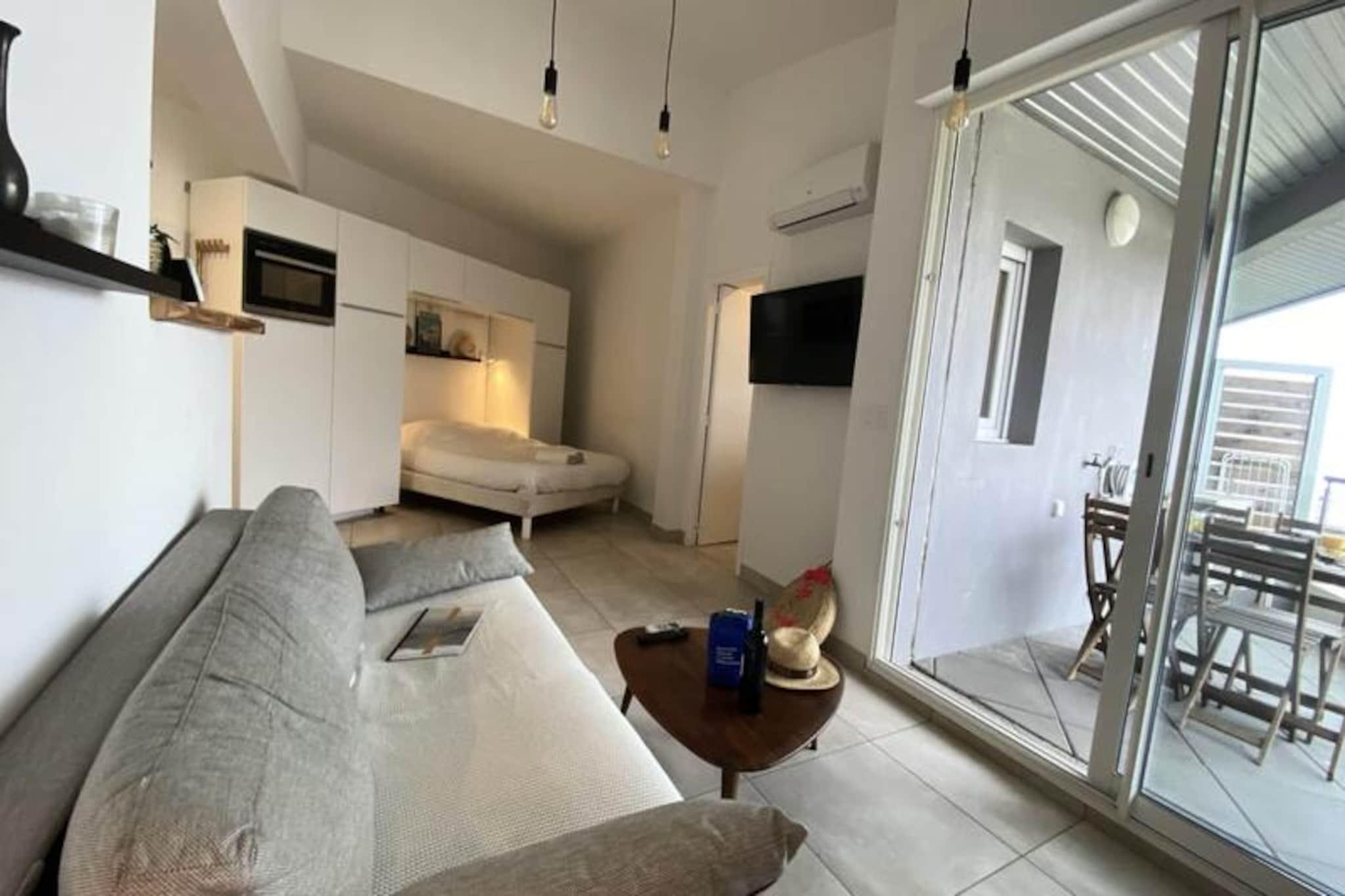 Where the shimmering Mediterranean meets the golden sands of Grau-du-Roi, Château Leenhardt offers a luxurious seaside retreat that promises both tranquility and convenience. Perched on the top floor of a modern residence, this studio invites you to wake up to breathtaking views of the sea, the bay of Aigues-Mortes, and La Grande-Motte. As the sun dips below the horizon, your northwest-facing terrace becomes the perfect vantage point for unforgettable sunsets, painting the sky in hues of orange and pink. With private beach access through the lush garden, you’re just steps away from one of the finest sandy beaches on the coast. \n\nInside, the studio is thoughtfully designed to combine modern comfort with coastal charm. The bright living area features fixed 140 cm bedding, a cozy sofa, and a TV corner, creating a welcoming space to relax after a day of exploring. The open kitchen is fully equipped with high-end appliances, including a Nespresso machine, oven, and microwave, ensuring you have everything needed for a home-cooked meal. The bathroom, complete with a shower and toilet, adds to the convenience, while reversible air conditioning ensures comfort year-round. \n\nBeyond the residence, Grau-du-Roi offers a vibrant mix of attractions within walking distance. Stroll to local shops, bustling markets, tapas bars, and even a cinema. For adventure seekers, cycle paths lead to the Salins d'Aigues-Mortes, while water sports, 4x4 excursions in the Camargue, and nearby beaches like Espiguette promise endless excitement. With easy access to Montpellier, Nîmes, and Arles, this property is perfectly situated for exploring the beauty of southern France. Whether you’re seeking relaxation or adventure, Château Leenhardt is your gateway to an unforgettable Mediterranean escape.