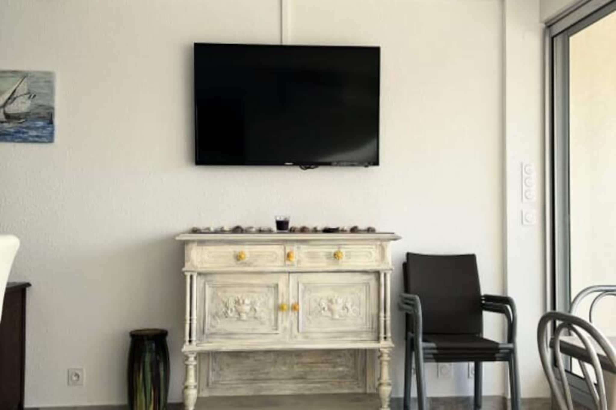 Wake up to the serene beauty of the Camargue at this charming marina in Grau du Roi, where the tranquil waters meet the vibrant Mediterranean lifestyle. This idyllic retreat offers a perfect blend of relaxation and adventure, with pristine beaches, picturesque canals, and the unique natural wonders of the Camargue right at your doorstep. Whether you're a sea lover or a nature enthusiast, this destination promises an unforgettable escape. Located in a secure residence, this 60 m² marina apartment is thoughtfully designed for a comfortable seaside getaway. Situated on the first floor of a small condominium, it accommodates up to four guests, making it ideal for families or couples. The bright, air-conditioned living room opens onto a stunning terrace with breathtaking views of the Marina, Europe’s largest marina. The fully equipped kitchen, complete with a hob, microwave, refrigerator, dishwasher, and coffee maker, ensures you can prepare meals with ease while enjoying the view. The sleeping arrangements include a spacious bedroom with a 160 cm double bed and a second room with two 90 cm bunk beds, perfect for children or teenagers. Additional amenities include a flat-screen TV, private parking, and even a dock for your boat, catering to sea lovers. Nestled near the beaches, shops, and restaurants of the lively Plage Sud district, this marina offers the perfect balance of peace and convenience. Explore the charming streets of Grau du Roi, indulge in fresh seafood at local eateries, or venture into the wild beauty of the Camargue, known for its flamingos, wild horses, and salt flats. For those seeking adventure, the nearby beaches and waterways provide endless opportunities for water sports and exploration. With easy access to Grau du Roi train station just 5 km away and Montpellier airport within reach, this marina is perfectly positioned for a seamless holiday experience. Whether you’re here to unwind by the water or explore the rich culture and nature of the region, this marina apartment is your gateway to a memorable Camargue escape.