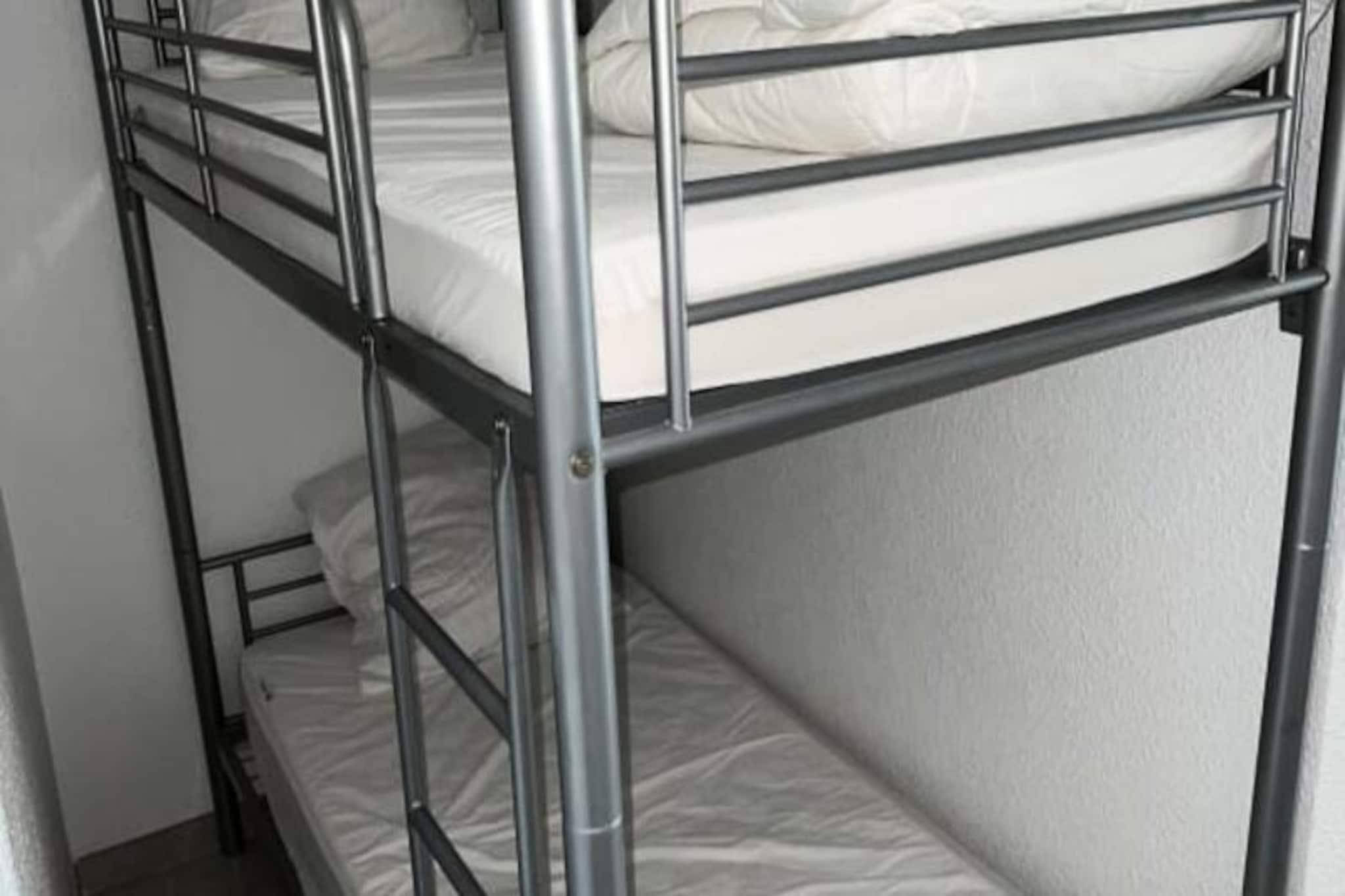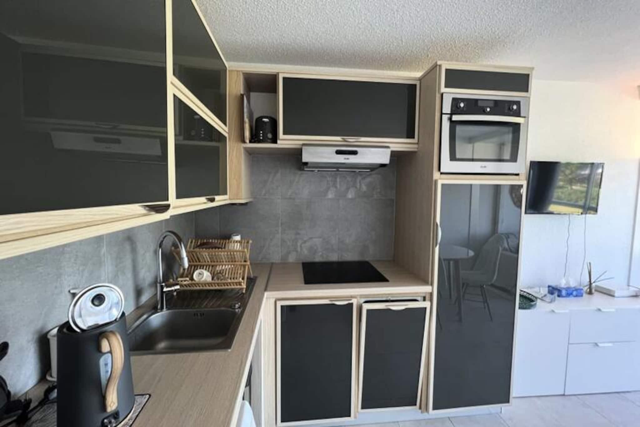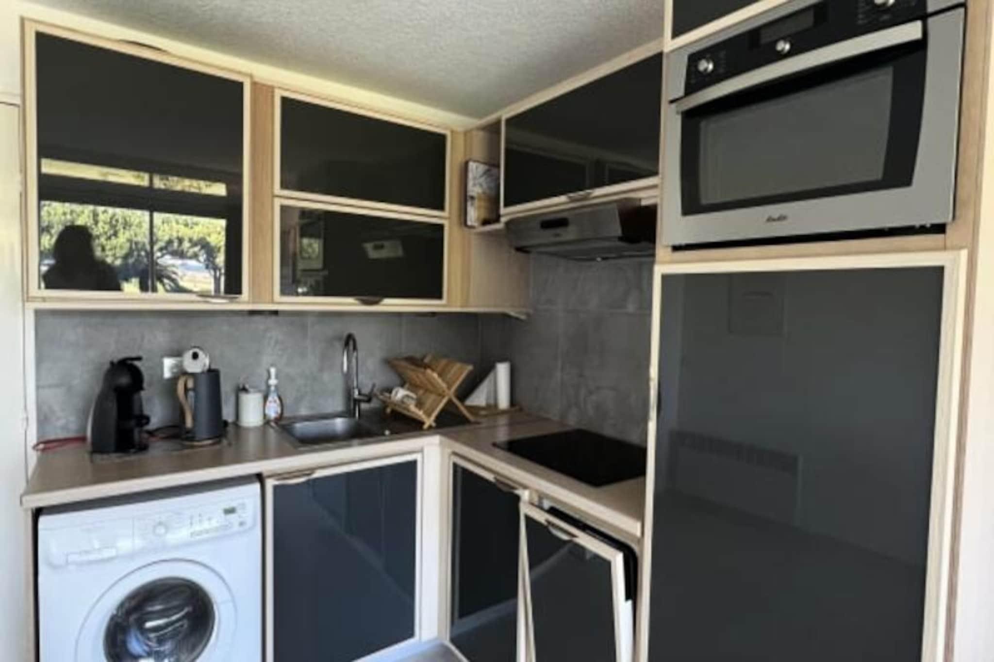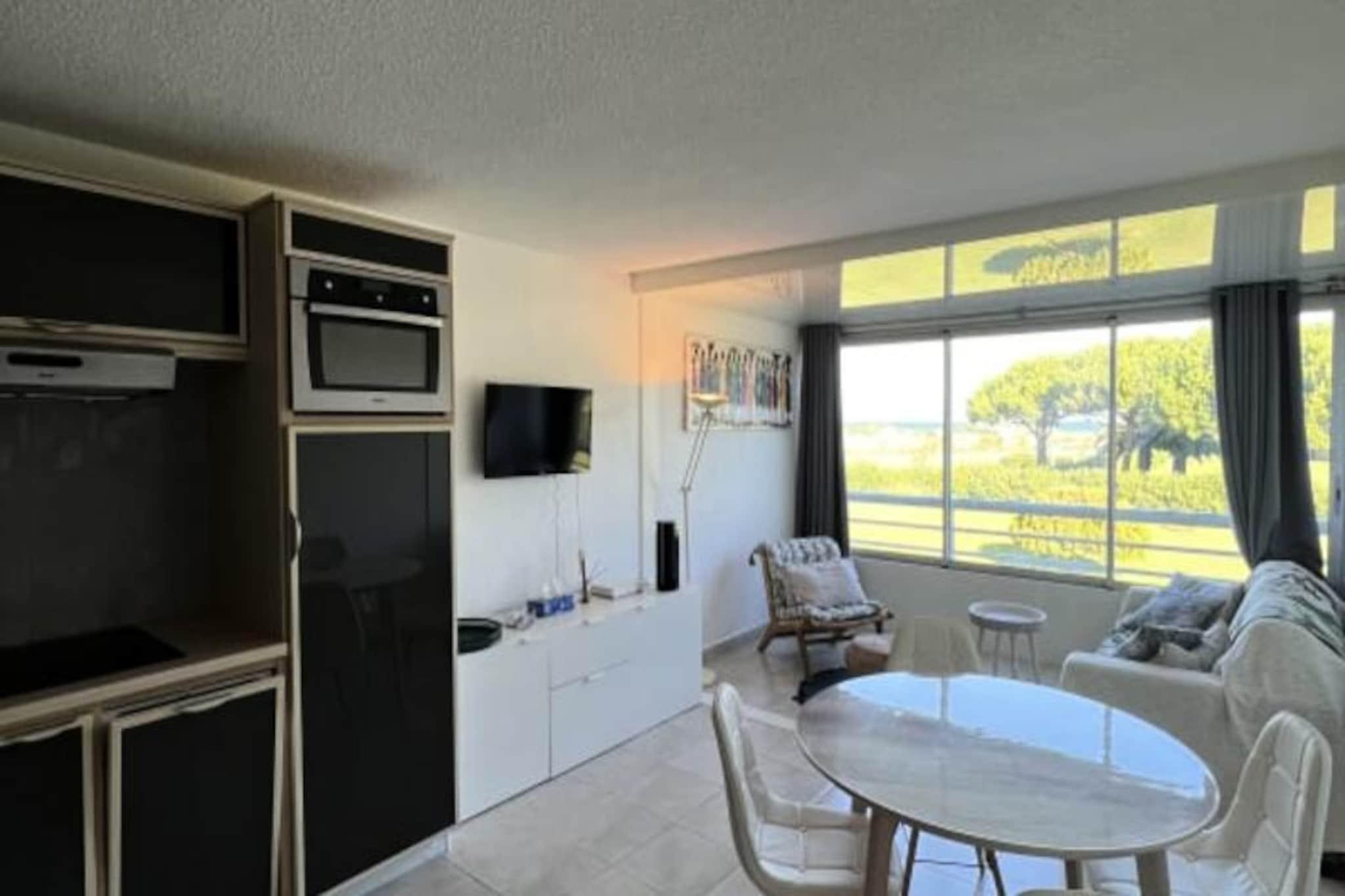 Breathe in the salty sea air and let the charm of Port Camargue whisk you away to a world of relaxation and coastal beauty. Nestled in the serene setting of Europe's first marina, 'Le Studio de La Lagune' offers an idyllic retreat for couples or small families seeking a seaside escape. With the beach just a short stroll away and the vibrant village life at your doorstep, every moment here is infused with the essence of the Mediterranean. \n\nThis thoughtfully designed studio apartment features a cozy cabin area with a bunk bed, a bright and airy living space with a comfortable sofa bed, and a fully equipped kitchen where you can prepare delicious meals. The renovated bathroom ensures modern comfort, while amenities like Wi-Fi, a TV, and a washing machine add to the convenience of your stay. Step out onto the terrace to enjoy your morning coffee or unwind after a day of exploring. Private parking is included, making your arrival and departure seamless.\n\nBeyond the apartment, Port Camargue beckons with its picturesque marina, bustling shops, and delightful restaurants. Nature enthusiasts will love the tranquil surroundings, perfect for leisurely walks along the beach or discovering the unique landscapes of the Camargue region. For those seeking adventure, nearby activities include water sports, cycling, and exploring the historic charm of Grau du Roi.\n\nWhether you're here for a romantic getaway, a family holiday, or a peaceful retreat, 'Le Studio de La Lagune' promises an unforgettable stay where the rhythm of the sea sets the tone for your perfect escape.