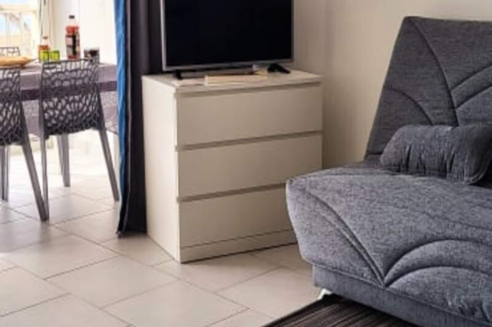 Imagine waking up to the soothing sound of waves and the shimmering Mediterranean Sea stretching out before you. This charming studio apartment, located in the Mairie district of Grau-du-Roi, offers an idyllic seaside escape for couples or small families. Recently renovated, it combines modern comfort with a warm, inviting atmosphere. From its private balcony, you can enjoy breathtaking 180-degree sea views, perfect for savoring meals or simply relaxing in the sun. The secure residence features elevator access and private gated parking, ensuring a stress-free stay. Inside, the apartment is thoughtfully designed to maximize space and convenience. The open-plan living area includes a fully equipped kitchen with induction hobs, microwave, refrigerator, and dishwasher, making it easy to prepare delicious meals. Two comfortable sofa beds provide sleeping arrangements for up to four guests, while amenities like a flat-screen TV, ceiling fan, and column heaters ensure year-round comfort. The modern bathroom features a large sink, drawer units, and a walk-in shower, adding a touch of luxury to your stay. Step outside and immerse yourself in the vibrant local culture. The apartment is ideally situated facing the beach, with shops, restaurants, and attractions just steps away. Explore the nearby fishing port to witness trawlers returning with their catch or stroll to Port-Camargue, Europe’s largest marina, where yachts and sailboats create a picturesque scene. For nature lovers, the Camargue region offers stunning sunsets, flamingos soaring above the waters, and endless opportunities for outdoor activities like horseback riding, kayaking, and windsurfing. Whether you’re seeking relaxation or adventure, this coastal retreat promises unforgettable memories by the Mediterranean Sea.
