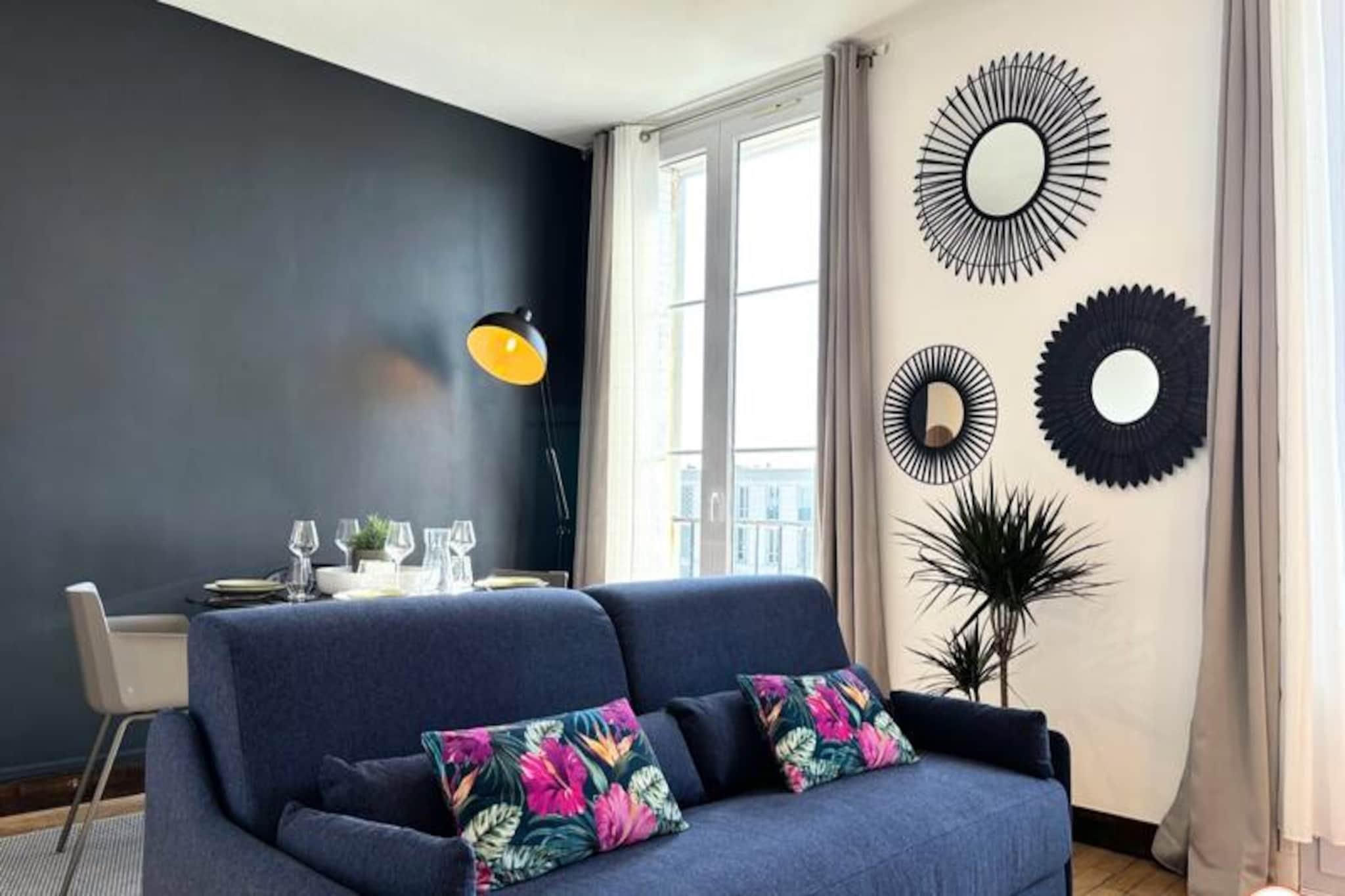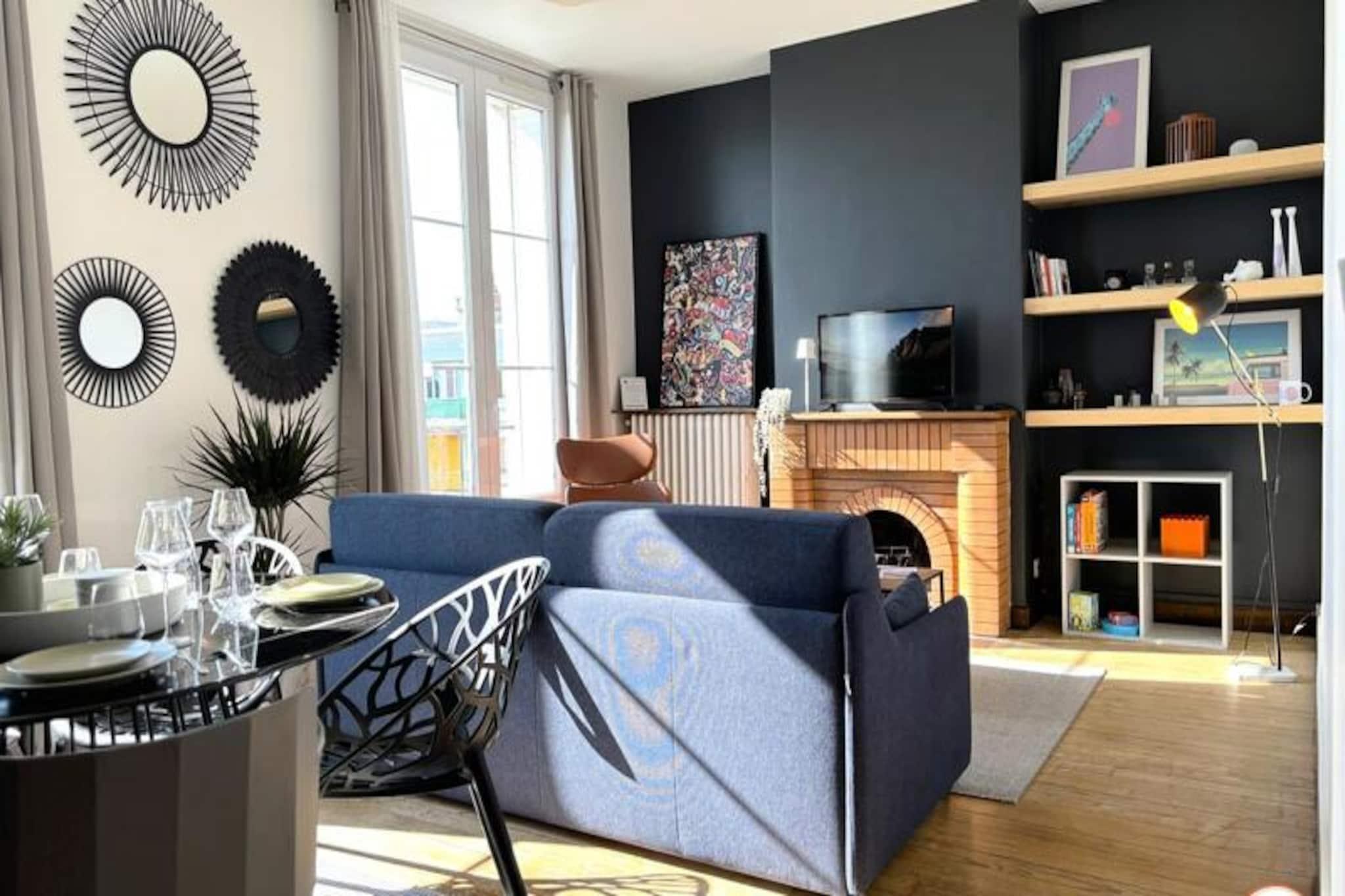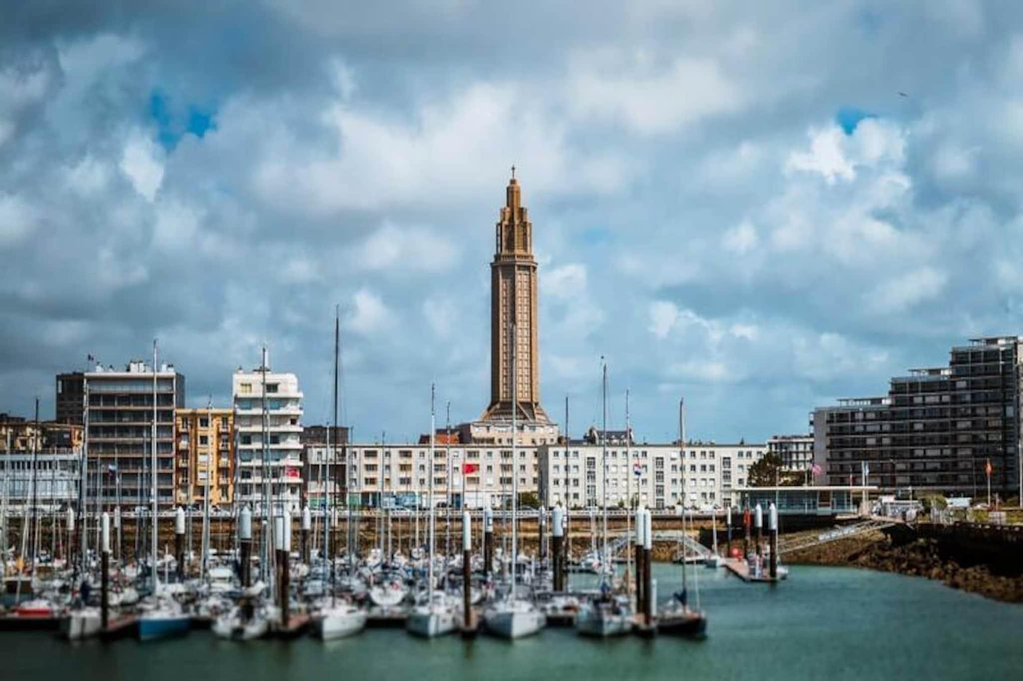 This charming apartment, located on the 4th floor of a quiet residence in Le Havre, can comfortably accommodate up to 4 guests. It offers a bedroom with a Queen-size bed (160x200 cm) and a living area with a sofa bed (140x200 cm) that transforms into a sleeping space for additional guests. The apartment is not pet-friendly. It is equipped with a Smart TV, providing entertainment, and features a bathroom with a bathtub. The apartment’s central location places you just 200 meters from the beach and town hall. The UNESCO World Heritage-listed architecture of Le Havre surrounds you, and the famous natural history museum is only a short walk away. Guests can explore nearby food shops, cafes, and the vibrant Les Halles market, perfect for a leisurely day out. The property is well-equipped with a fully furnished kitchen, including a fridge, oven/microwave, Nespresso coffee machine, and washing machine. The living room and dining area are perfect for unwinding after a day of exploring. Free parking is available for electric vehicles, and public transport options like trams and buses are within easy reach.