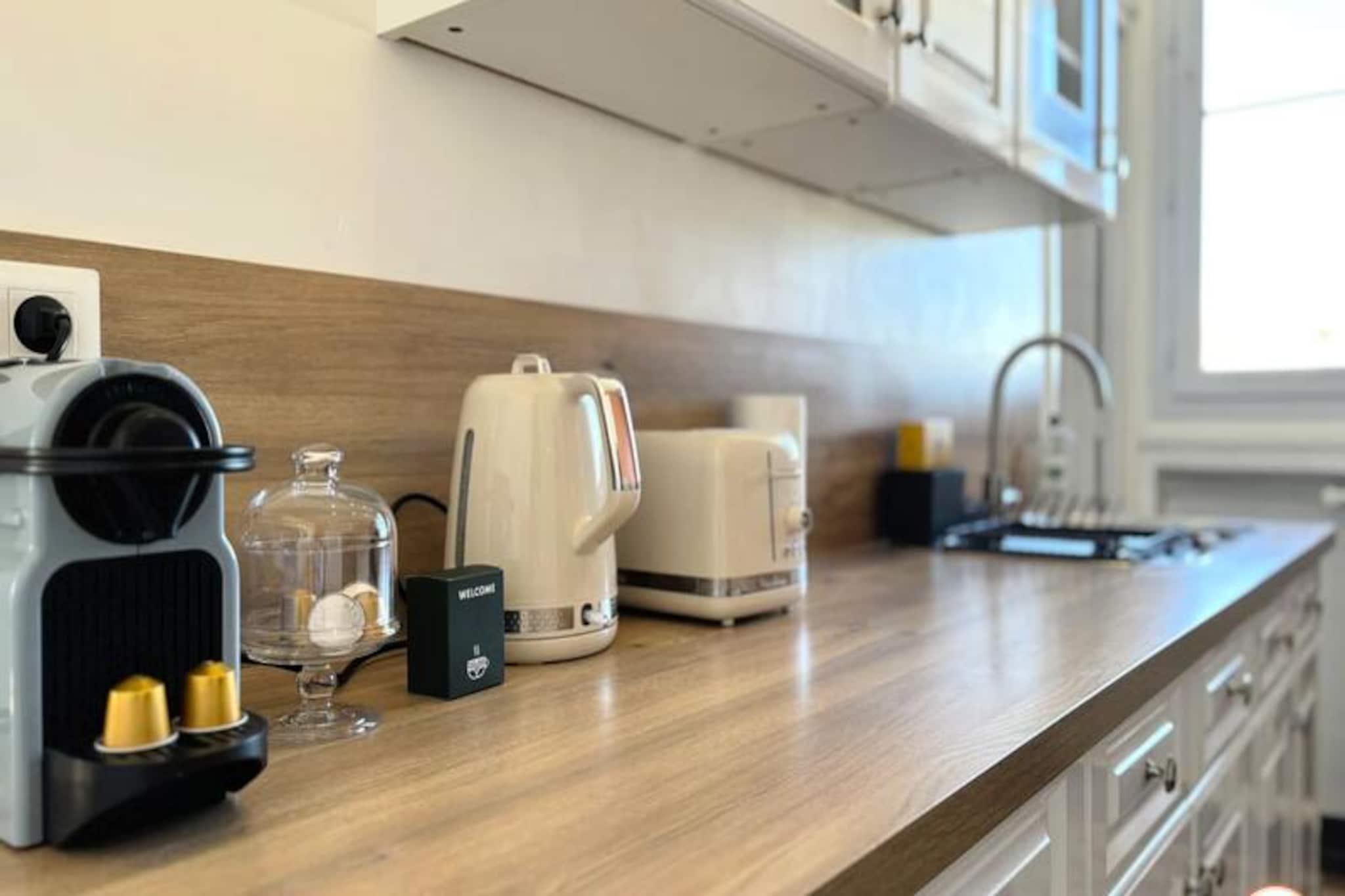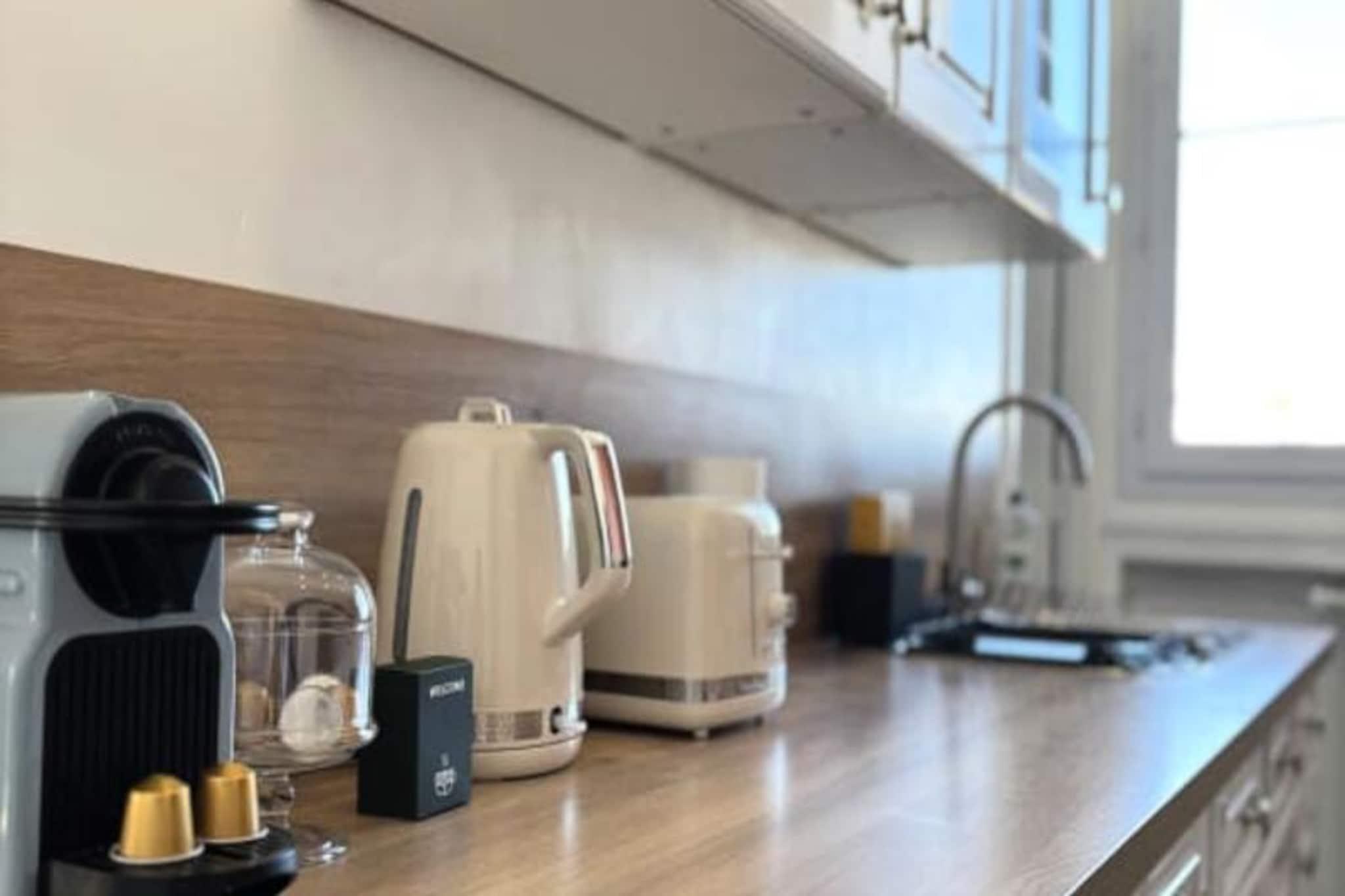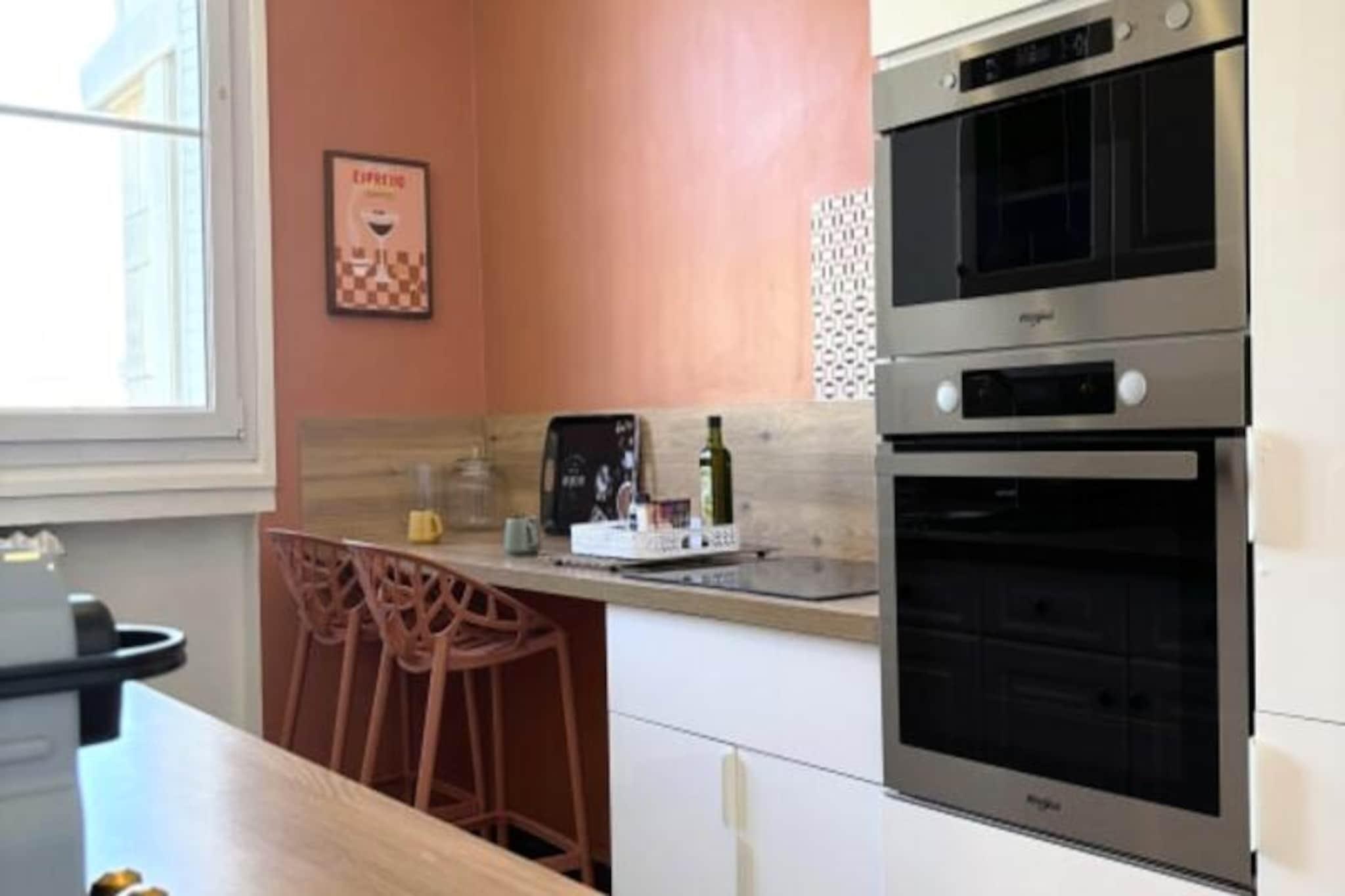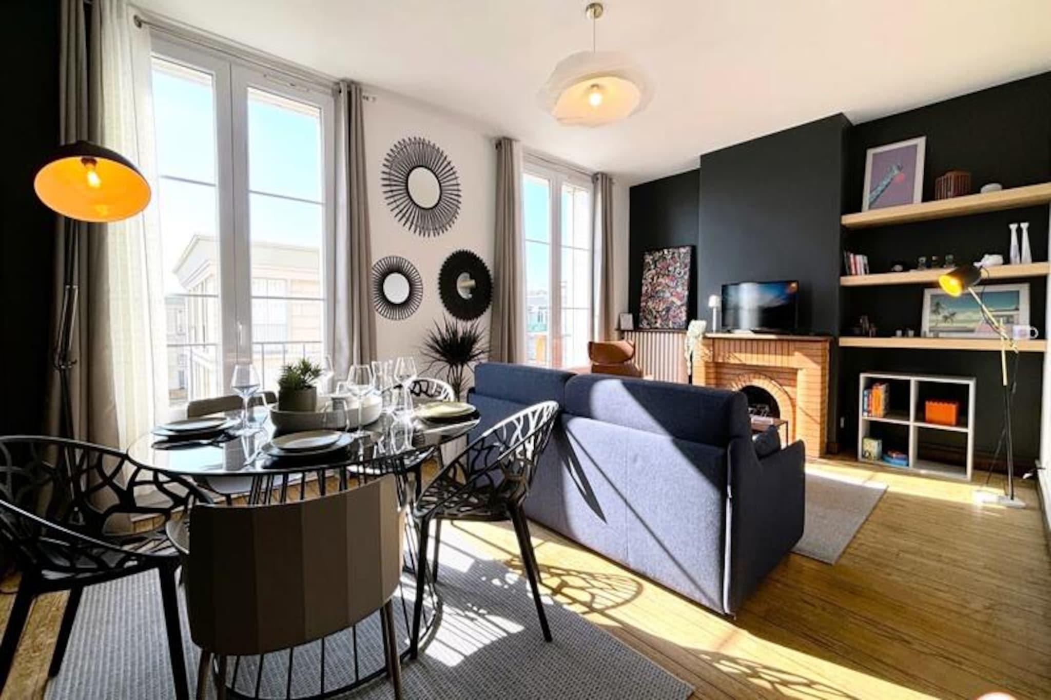This charming apartment, located on the 4th floor of a quiet residence in Le Havre, can comfortably accommodate up to 4 guests. It offers a bedroom with a Queen-size bed (160x200 cm) and a living area with a sofa bed (140x200 cm) that transforms into a sleeping space for additional guests. The apartment is not pet-friendly. It is equipped with a Smart TV, providing entertainment, and features a bathroom with a bathtub. The apartment’s central location places you just 200 meters from the beach and town hall. The UNESCO World Heritage-listed architecture of Le Havre surrounds you, and the famous natural history museum is only a short walk away. Guests can explore nearby food shops, cafes, and the vibrant Les Halles market, perfect for a leisurely day out. The property is well-equipped with a fully furnished kitchen, including a fridge, oven/microwave, Nespresso coffee machine, and washing machine. The living room and dining area are perfect for unwinding after a day of exploring. Free parking is available for electric vehicles, and public transport options like trams and buses are within easy reach.