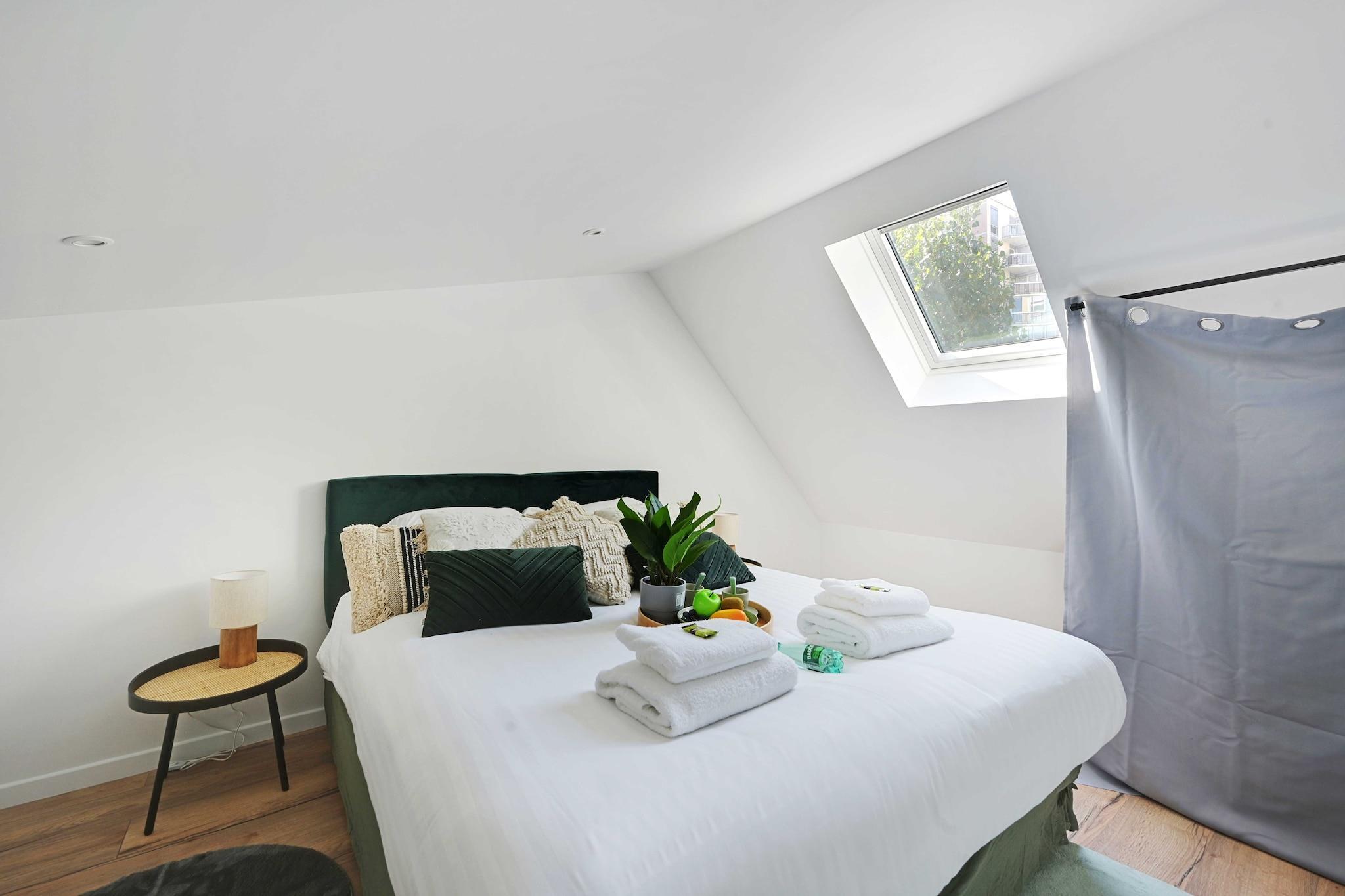 Ground floor: (bedroom(double bed), bathroom) Bed Linen, Desk, Hot Water, Internet Access DSL, Wardrobe, Kitchen, First Aid, Play area, TV, stove, electric kettle, toaster, coffee machine, microwave, fridge, washing machine, heating, iron, hairdryer, Towels/Sheets (Incl.), shampoo, Essentials, dishes and cutlery, Dedicated workspace, Cooking basics, Cleaning Disinfection, Enhanced cleaning practices, Long term stays allowed, Room-darkening shades, Town