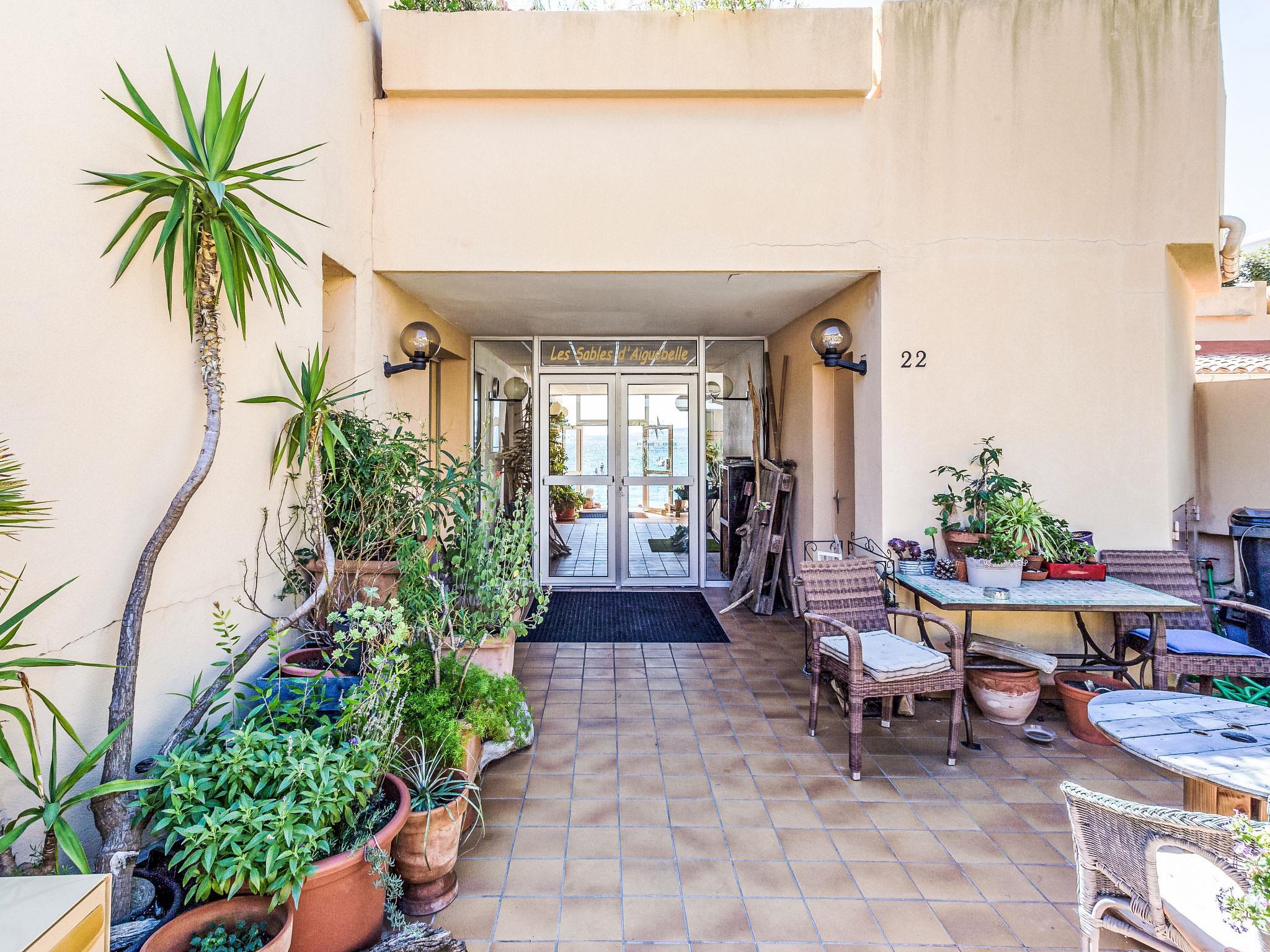 Small residence "Les Sables d'Aiguebelle", 2 storeys. In the district of d'Aiguebelle, outside the resort, 5 km from the centre of Lavandou, in a sunny position, 10 m from the sea, direct access to the beach. For shared use: outdoor shower. (8 steps). Public parking 150 m. Supermarket 6 km, restaurant, bar, café 250 m, bus stop "Lavandou Gare routière" 3.4 km, sandy beach "Aiguebelle" 10 m. Sports harbour 4 km, golf course (18 hole) 20 km, tennis 5 km, minigolf 5 km. Please note: no lift. The keys‘ handover takes place by the agency Interhome in Le Lavandou.
