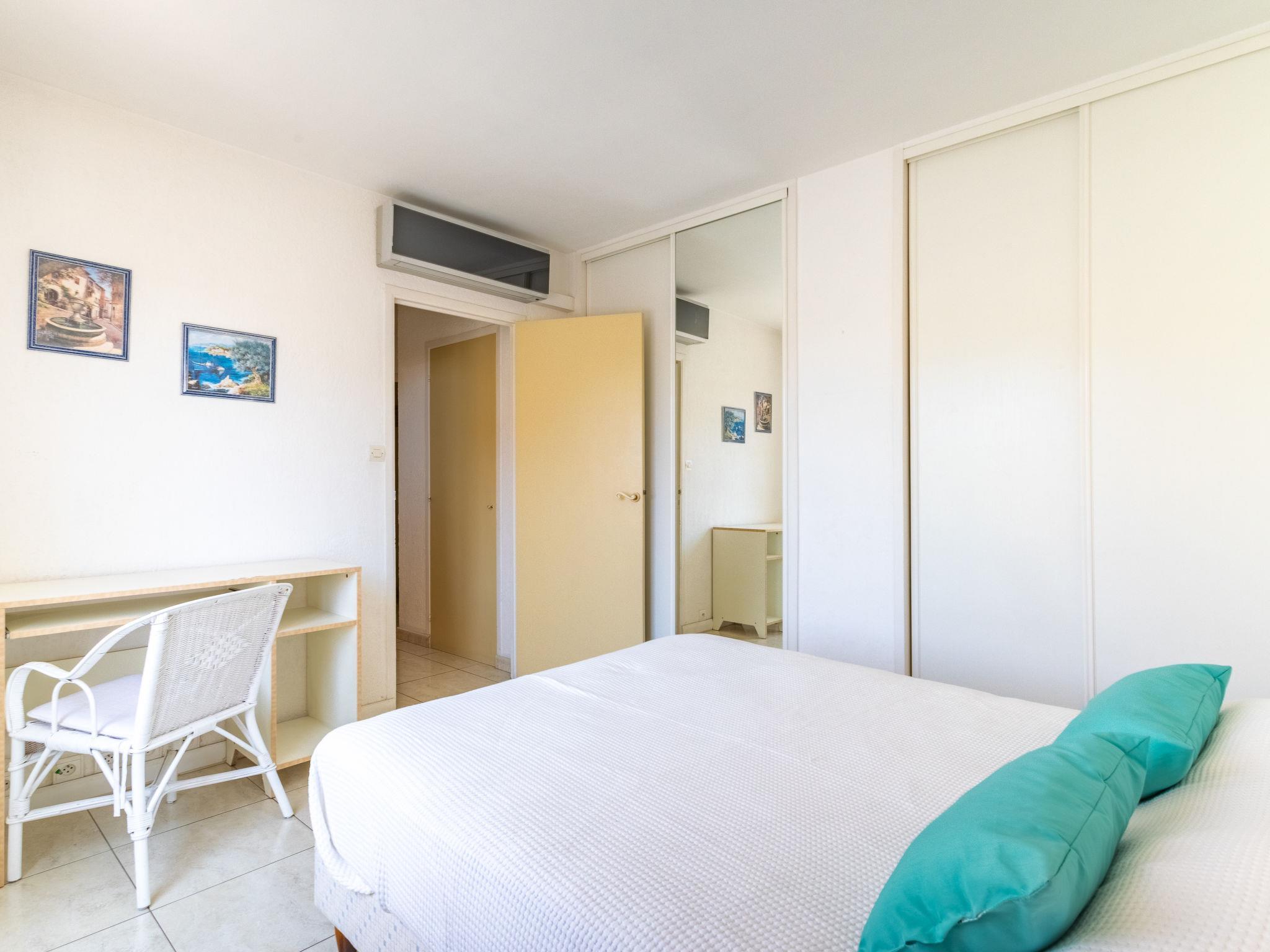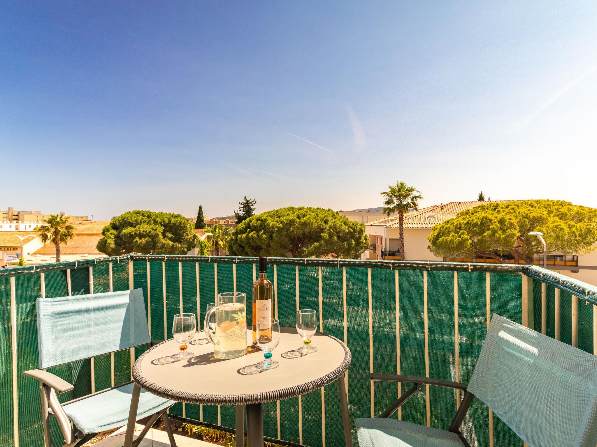 3-room apartment 59 m2 on 1st floor. Comfortable and beautiful furnishings: living/dining room with TV (flat screen). 2 rooms, each room with 1 french bed (140 cm, length 190 cm). Kitchen (dishwasher, 2 induction hot plates, toaster, kettle, microwave, freezer, electric coffee machine). Shower, sep. WC. Electric heating, air-conditioning. Small balcony 3 m2. Balcony furniture. View of the resort. Facilities: washing machine, iron, hair dryer. Internet (WiFi, free). Parking (fenced). Please note: apartment street side. Non-smokers only. TV only FR. Smoke alarm. Air conditioning is at least 20°. 83070 000060QH