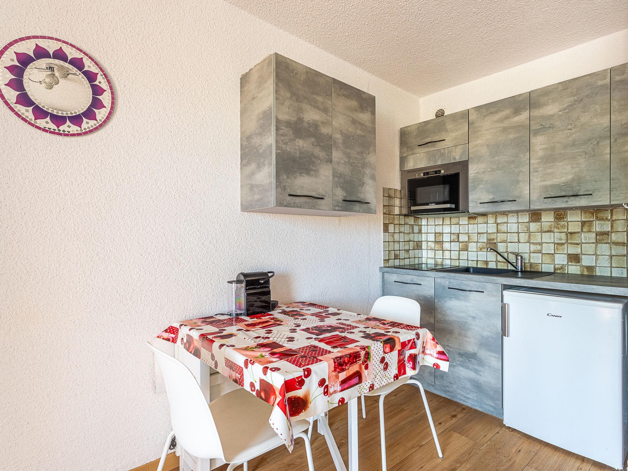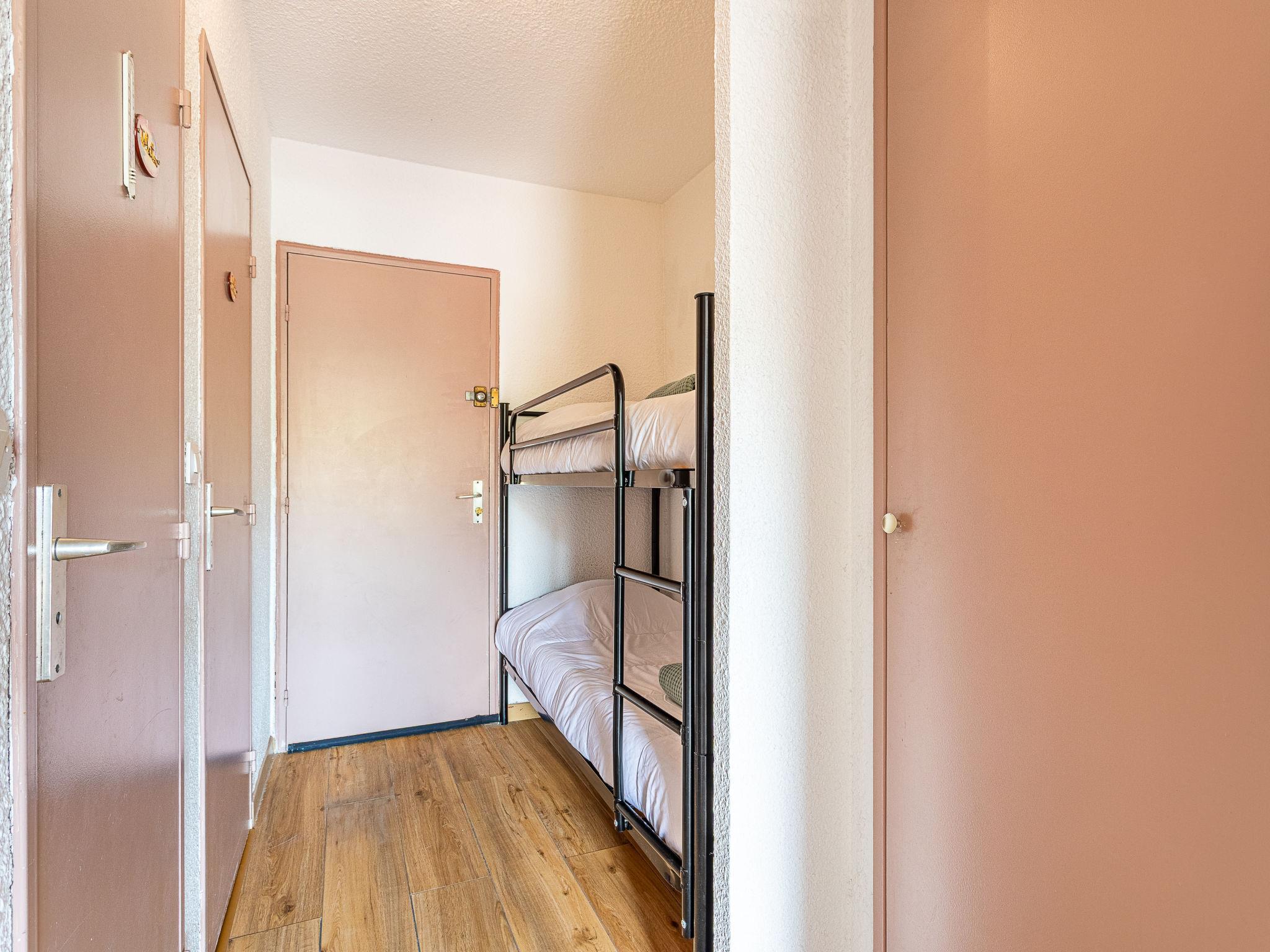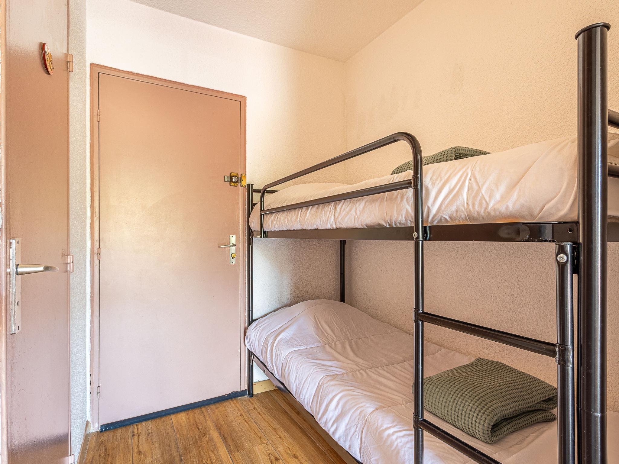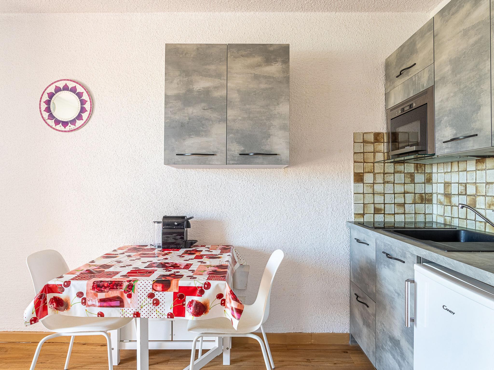 1-room studio 21 m2, on the ground floor, south facing position. Comfortable furnishings: living/dining room with 1 double fold-away bed (140 cm, length 190 cm), TV (flat screen). Exit to the terrace. Sleeping alcove with 1 x 2 bunk beds (80 cm, length 190 cm). Kitchenette (2 ceramic glass hob hotplates, toaster, kettle, electric coffee machine, Capsules for coffee machine (Nespresso) extra, combination microwave). Shower, sep. WC. Electric heating, air-conditioning. Small terrace 6 m2, south facing position. Terrace furniture. View of the countryside. Facilities: washing machine, iron, hair dryer. Internet (WiFi, extra). Please note: non-smokers only. Maximum 1 pet/ dog allowed. TV only FR. Smoke alarm. Offer by a private individual according to Art. 155, IV of CGI. 83070003116MA