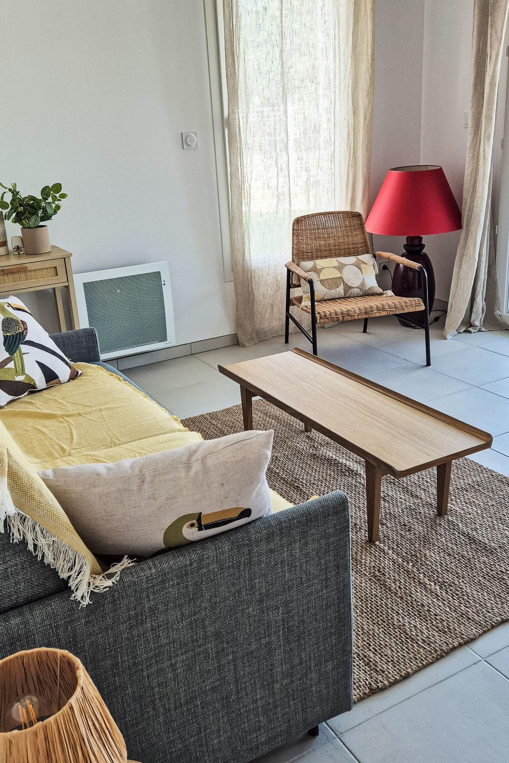 2-room apartment 41 m2 on 1st floor. Comfortable and tasteful furnishings: living/dining room with 1 sofabed (140 cm, length 190 cm), air conditioning. 1 room with 1 french bed (160 cm, length 200 cm), TV (flat screen). Kitchenette (dishwasher, 2 induction hot plates, toaster, kettle, electric coffee machine, Capsules for coffee machine (Nespresso) extra, combination microwave). Shower/WC. Electric heating. Terrace 12 m2, south-west facing position, garden 75 m2, south-west facing position. Terrace furniture. View of the resort. Facilities: washing machine, iron, hair dryer. Internet (WiFi, free). Parking space n 34 et 35 (2 cars). Please note: non-smokers only. TV only FR. Smoke alarm. Offer by a private individual according to Art. 155, IV of CGI. 83070003162HO