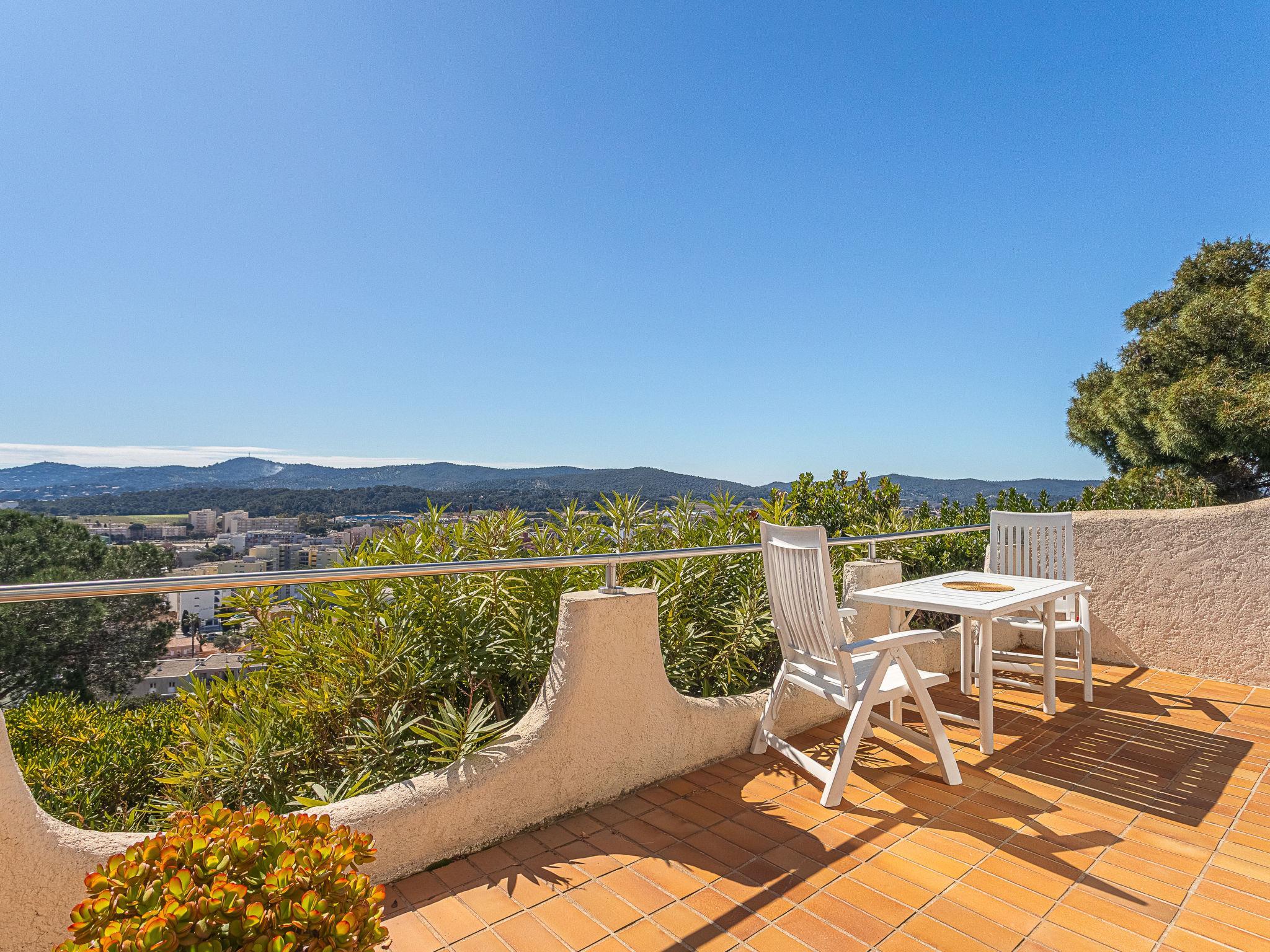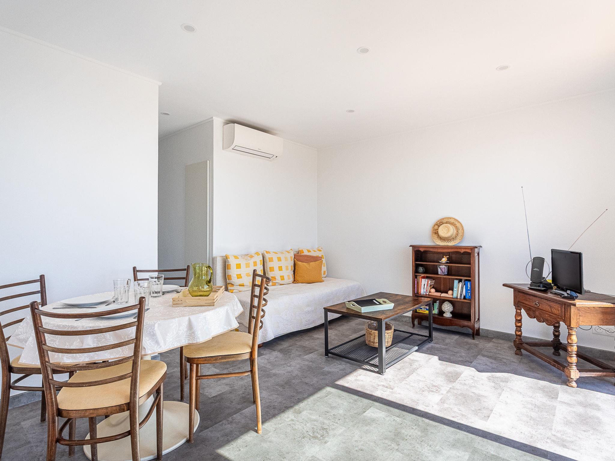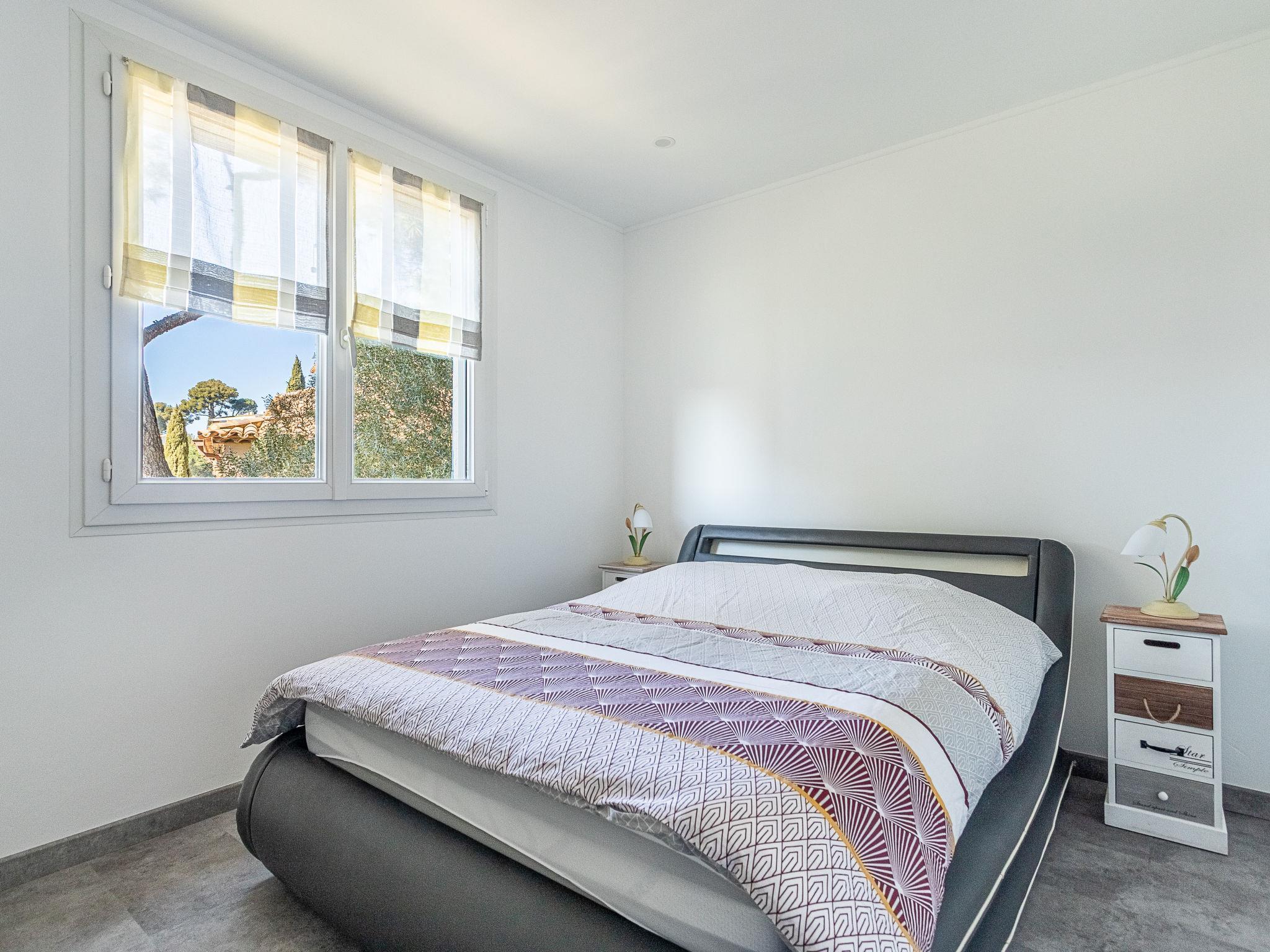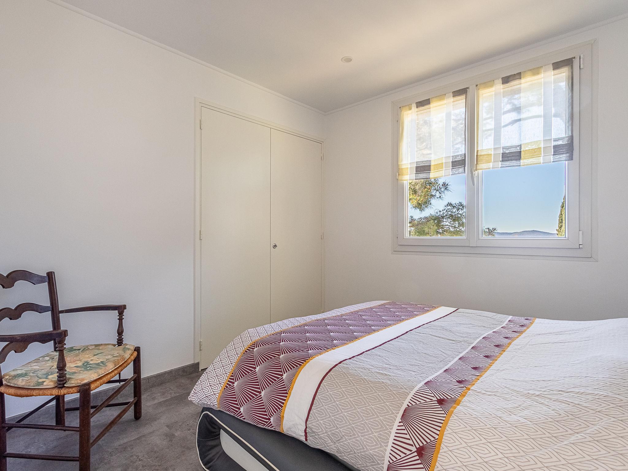 2-room apartment 37 m2, on the upper ground floor. Beautiful furnishings: living/dining room with dining table and TV (flat screen), air conditioning. 1 room with 1 french bed (140 cm, length 190 cm). Open kitchen (oven, 4 ceramic glass hob hotplates, toaster, kettle, microwave, electric coffee machine). Shower/WC. Electric heating. Terrace 15 m2. Terrace furniture. Beautiful view of the sea. Facilities: washing machine, iron. Internet (WiFi, extra). Parking space n 3. Please note: non-smokers only. TV only FR. Smoke alarm, no lift. 83070000225 UK