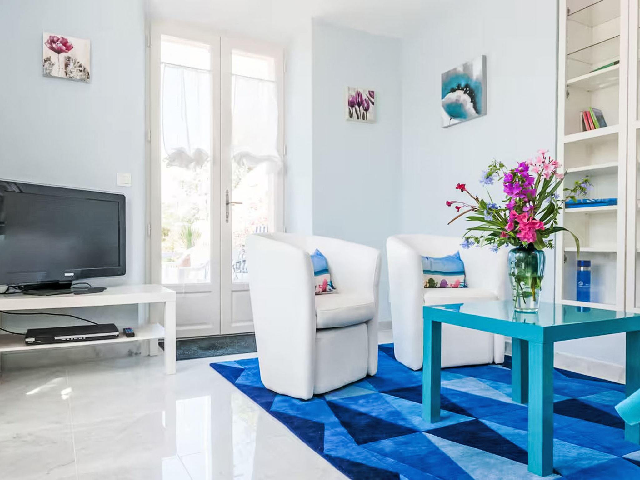 2-room apartment 45 m2, on the ground floor. Bright, beautiful furnishings: living room with 1 sofabed (120 cm, length 200 cm), TV (flat screen). Exit to the terrace, west facing position. 1 room with 1 french bed (140 cm, length 200 cm). Exit to the terrace, west facing position. Kitchen (oven, 3 ceramic glass hob hotplates, toaster, kettle, microwave, freezer, electric coffee machine) with dining table, air conditioning. Exit to the terrace, south facing position. Shower, sep. WC. Terrace, south facing position and west facing position. Very beautiful view of the sea and the port. Facilities: washing machine, iron, baby cot for up to 2 year olds, hair dryer. Internet (WiFi, free). Please note: apartment street side. Non-smokers only, no parking. Maximum 1 pet/ dog allowed. TV only FR. Smoke alarm. There is a right of way in the courtyard to allow tenants of other apartments to access their front door. Offer by a private individual according to Art. 155, IV of CGI. 83070001986Q0