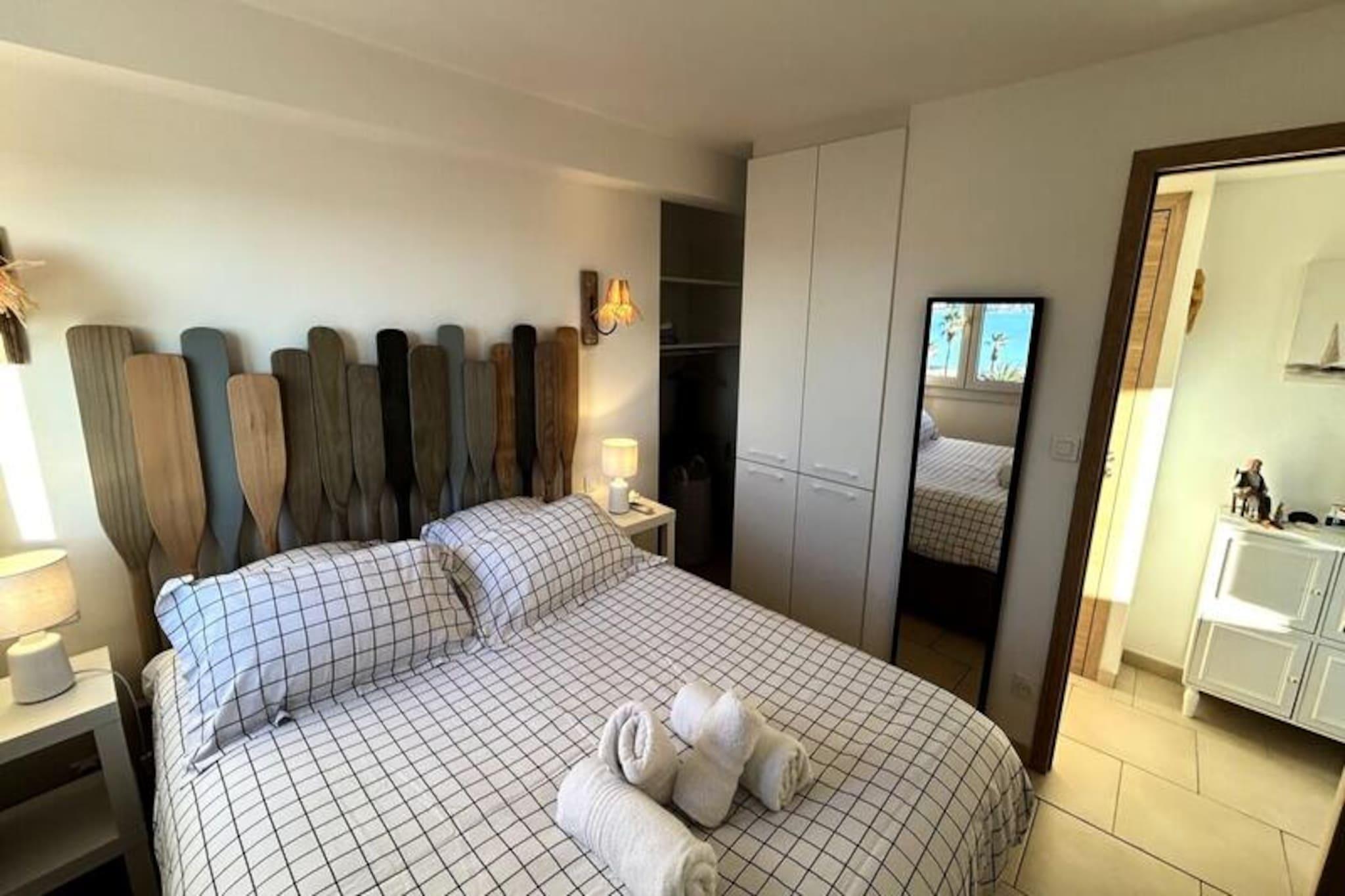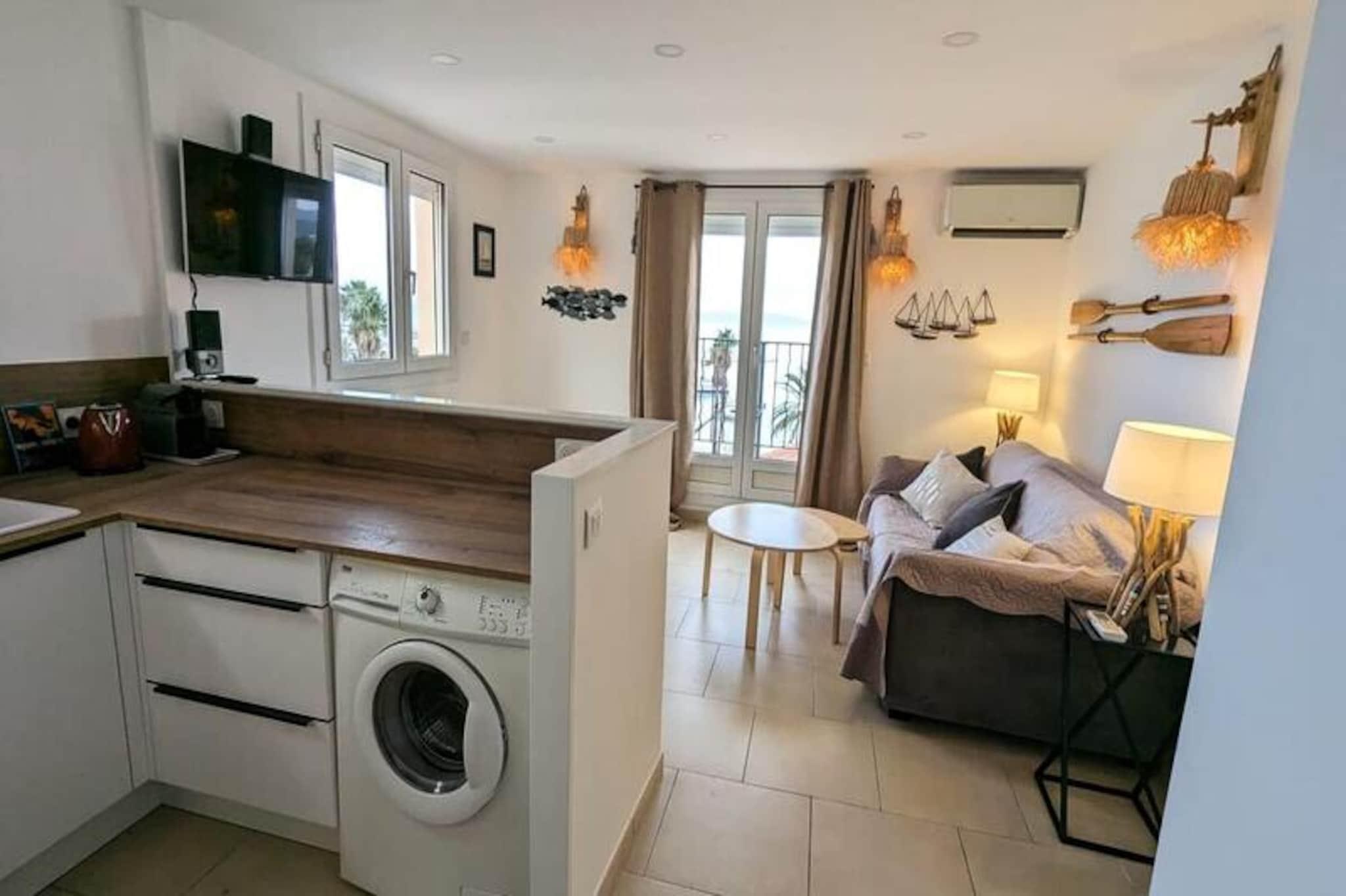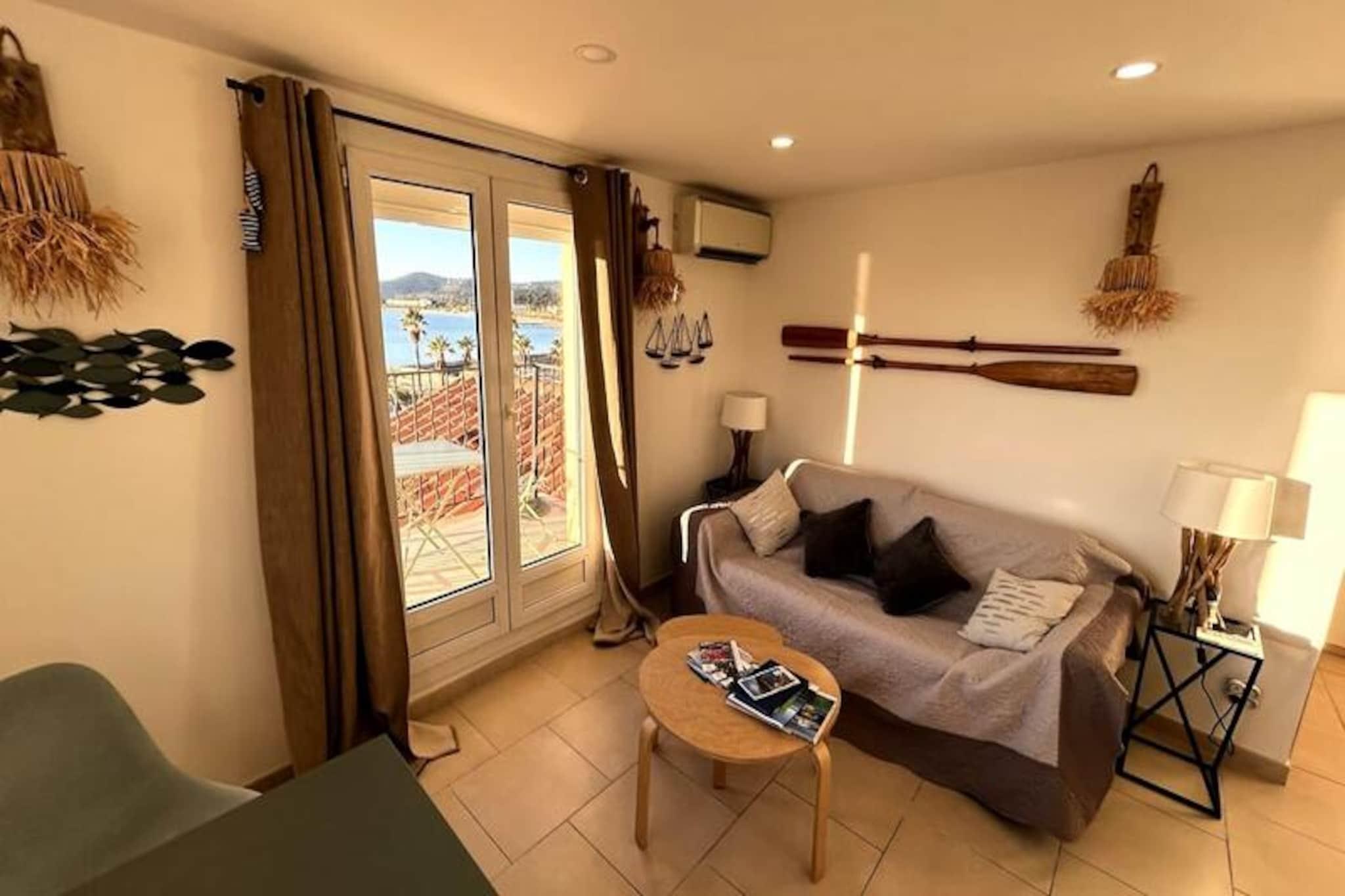 Awaken your senses to the charm of the French Riviera in this stunning one-bedroom apartment, perched in the heart of Le Lavandou. Just 100 meters from the bustling port and a mere 200 meters from the golden sands of the main beach, this south-facing retreat offers a panoramic 180° view of the azure Mediterranean and the enchanting Golden Islands. Whether you're sipping coffee on the terrace or soaking in the sea breeze, every moment here feels like a postcard come to life. Step inside to discover a space that blends elegance with comfort. Rated 4**** for its exceptional amenities, the apartment features a bright living room and a cozy bedroom, both with mesmerizing sea views. The open-plan kitchen is fully equipped with modern appliances, including a 3-burner induction hob, capsule coffee maker, and blender, making it perfect for preparing fresh local delicacies. The bathroom boasts a sleek walk-in shower, while reversible air conditioning ensures year-round comfort. The 4.50m² terrace, complete with garden furniture and electric shutters, invites you to unwind in style. Additional touches like Wi-Fi, a flat-screen TV, a smart speaker, and a concierge service elevate your stay to pure luxury. Outside your door, the vibrant pedestrian streets of Le Lavandou await, lined with bakeries, supermarkets, and charming restaurants. The nearby family-friendly beach, shaded by palm trees and overlooking the Levant and Port-Cros islands, offers activities for all ages, from paddleboarding to sailing. For those seeking adventure, diving clubs and water sports rentals are just steps away. Whether you're here for the sun-soaked beaches, the lively port, or the serene island views, this apartment is your perfect gateway to the magic of the Côte d'Azur. With every detail thoughtfully curated, it promises an unforgettable escape by the sea.