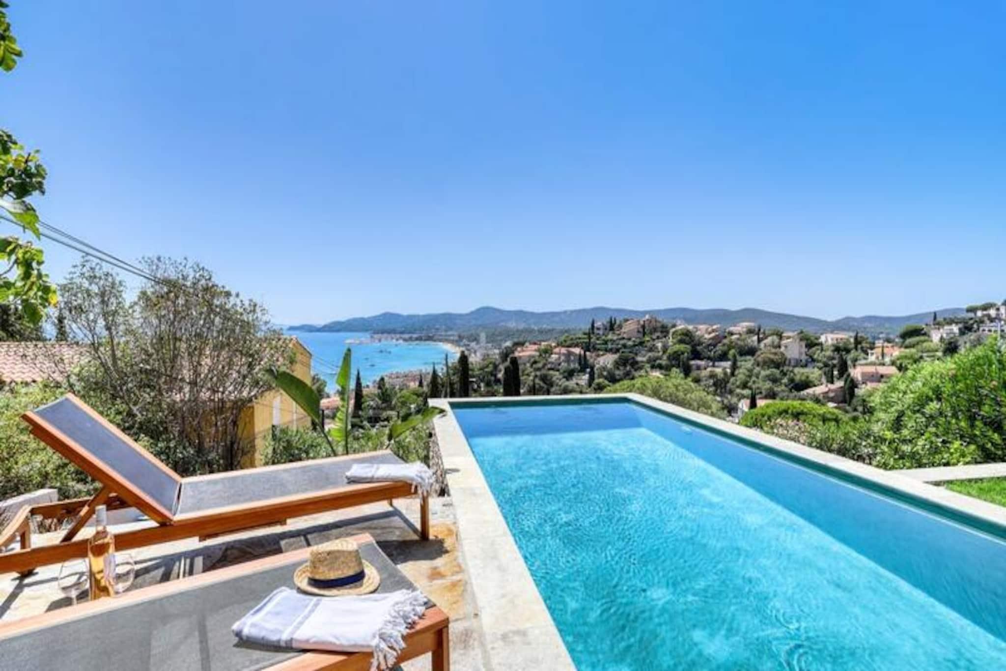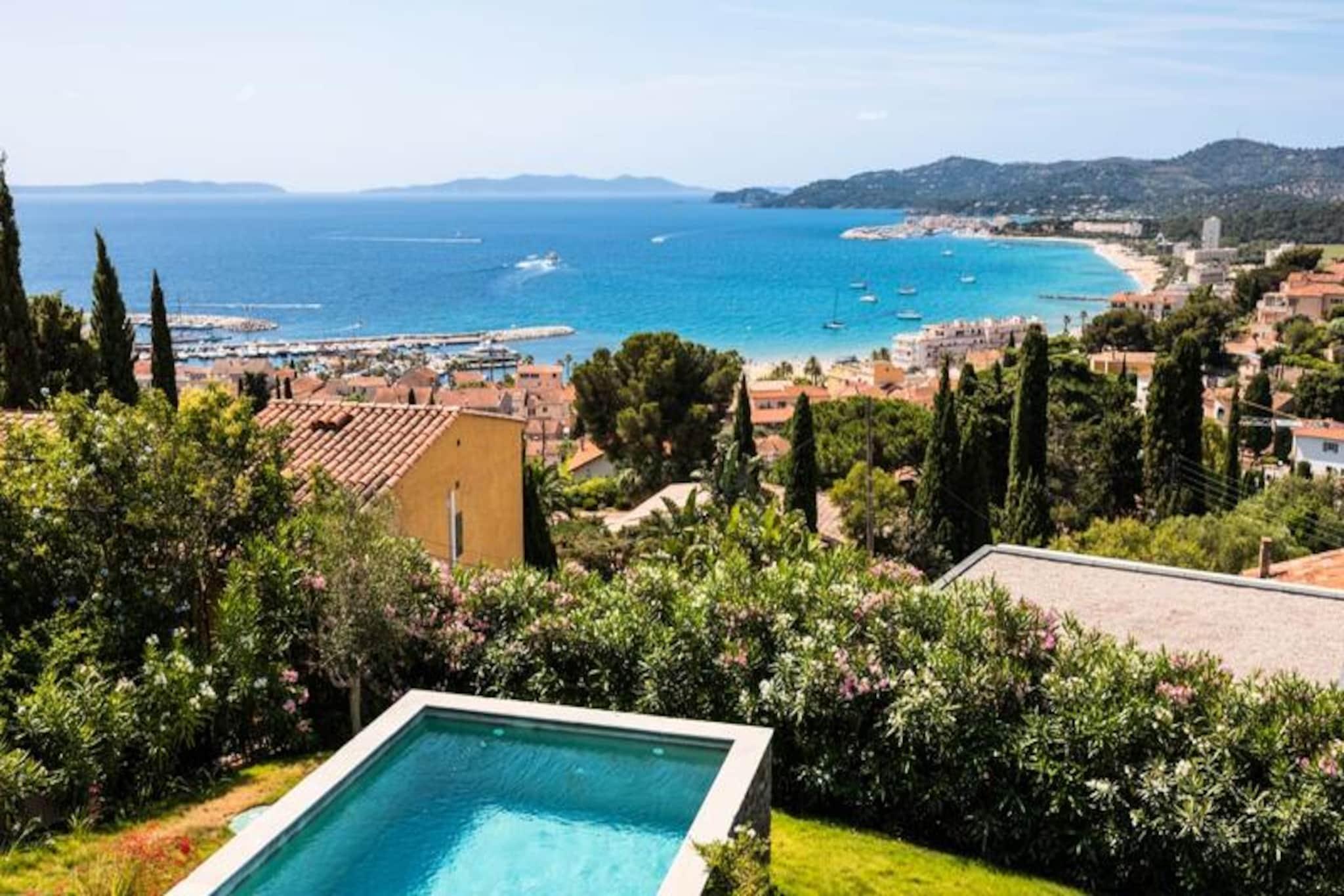 Perched on a gentle hillside in the sought-after Super Lavandou neighborhood, this elegant villa offers a serene escape with breathtaking sea views and the vibrant charm of Le Lavandou just a 10-minute stroll away. Surrounded by lush greenery and the azure Mediterranean horizon, this property invites you to experience the perfect blend of tranquility and convenience. Whether you’re lounging by the pool or enjoying the fresh coastal breeze from the garden, every moment here feels like a retreat into paradise. The villa comfortably accommodates up to six guests across three beautifully appointed bedrooms, making it ideal for families or small groups. The living spaces are bathed in natural light and equipped with high-end amenities, including air conditioning throughout, ensuring your comfort in every season. The fully equipped kitchen and inviting dining areas, both indoors and outdoors, make it easy to savor meals together. The private swimming pool, which can be heated upon request, is the centerpiece of the outdoor space, complemented by a well-maintained garden where you can unwind or enjoy a leisurely afternoon. Located just a short walk from downtown Le Lavandou, you’ll have easy access to its charming streets, local markets, and a variety of restaurants and shops. The villa’s prime location also offers proximity to the region’s stunning beaches, coastal trails, and vibrant marina, making it a perfect base for exploring the French Riviera. Whether you’re seeking a peaceful getaway or an adventure-filled holiday, this villa provides the ideal setting for unforgettable memories. With its combination of luxury, comfort, and unbeatable location, it’s a place where you can truly relax and embrace the beauty of the Côte d’Azur.