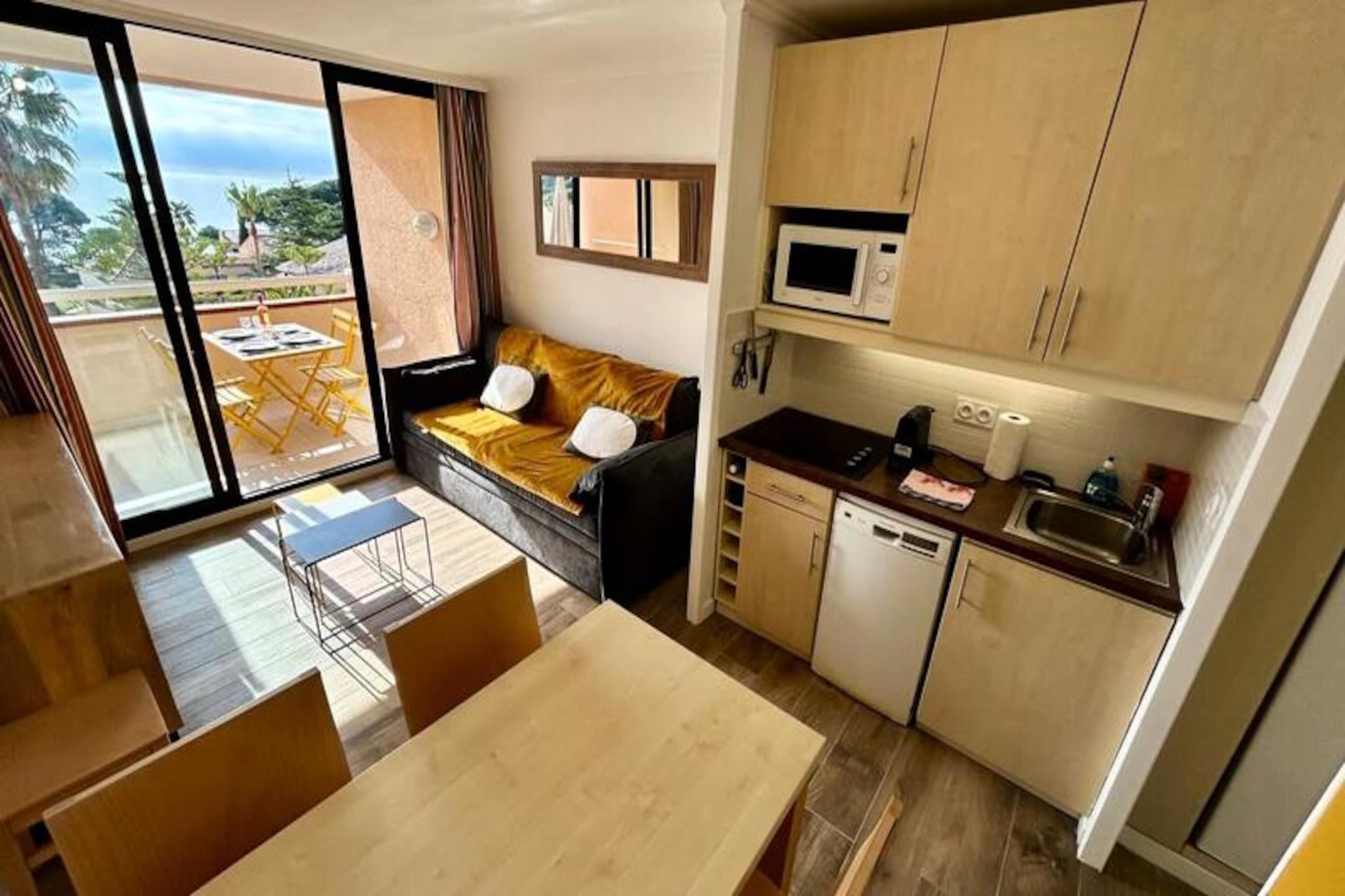 Overlooking the azure waters of the Mediterranean, this charming one-bedroom apartment in the 'L'Anse de Pramousquier' residence offers a tranquil retreat for your beachside getaway. Nestled in a lush, green setting, this property provides a serene escape from the bustling crowds, with the pristine Pramousquier Beach just a short walk away via quaint pedestrian paths. Known as 'The Mysterious Beach,' this hidden gem is sheltered by Cap Nègre, offering a peaceful haven for relaxation and exploration. The apartment is thoughtfully designed for comfort and convenience, featuring air conditioning in both the living room and bedroom to keep you cool during warm summer days. The sea-view terrace invites you to unwind with a morning coffee or an evening glass of wine while soaking in the breathtaking coastal scenery. Inside, the living room boasts a comfortable sofa that converts into two single beds, making it ideal for families or small groups. Additional amenities include a private parking space and access to the residence's recreational facilities, such as beach volleyball courts, ping-pong tables, and a playpen for younger guests. Pramousquier Beach offers a selection of delightful beachside restaurants and the option to rent sun loungers or pedal boats for a day of fun on the water. Beyond the beach, the surrounding area is perfect for nature lovers, with opportunities for scenic walks and exploration. Whether you're traveling with family, friends, or a special someone, this apartment provides the perfect base for an unforgettable holiday on the French Riviera. Book your stay and immerse yourself in the beauty and tranquility of this hidden coastal paradise.
