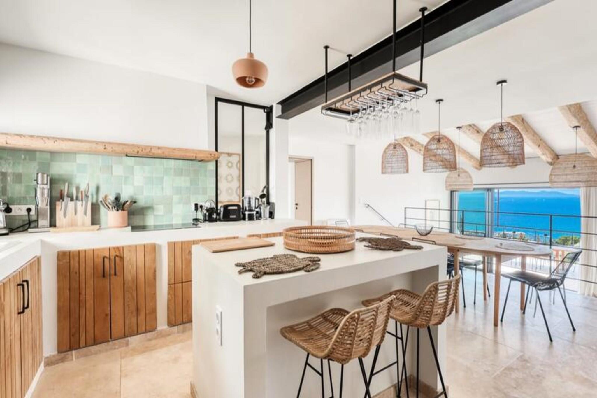 Perched on a tranquil hillside with breathtaking views of the Mediterranean, Villa Figuiere in Le Lavandou is a haven of luxury and relaxation. This exquisite property offers a perfect blend of comfort and elegance, making it an ideal retreat for families or groups seeking an unforgettable escape on the French Riviera. Imagine waking up to the gentle sea breeze, enjoying your morning coffee on the terrace, and spending your days lounging by the private swimming pool that can be heated upon request for added comfort. Whether you're here to unwind or explore, this villa promises a stay like no other. The villa comfortably accommodates up to 14 guests with its thoughtfully designed layout. The main level features a spacious living room, a fully equipped kitchen, and three beautifully appointed bedrooms, including a master suite with its own bathroom. On the lower level, you'll find two independent studios, each offering private sleeping arrangements for parents and children, complete with modern amenities like Wi-Fi relays on all floors for seamless connectivity. The outdoor spaces are equally impressive, with a lush garden and a pool area perfect for soaking up the sun or enjoying a refreshing swim. Air conditioning throughout ensures a pleasant stay, even during the warm summer months. Located just a 15-20 minute walk from the vibrant town center of Le Lavandou, Villa Figuiere provides easy access to charming shops, restaurants, and the stunning beaches of the Côte d'Azur. The Super Lavandou neighborhood is highly sought after for its serene atmosphere and panoramic sea views, offering a perfect balance of tranquility and convenience. Whether you're exploring the local markets, indulging in Provençal cuisine, or simply relaxing by the pool, this villa is your gateway to the ultimate Mediterranean experience. Choose Villa Figuiere for your next holiday and create memories that will last a lifetime. From its luxurious amenities to its unbeatable location, this property is the perfect setting for a dream vacation on the French Riviera.