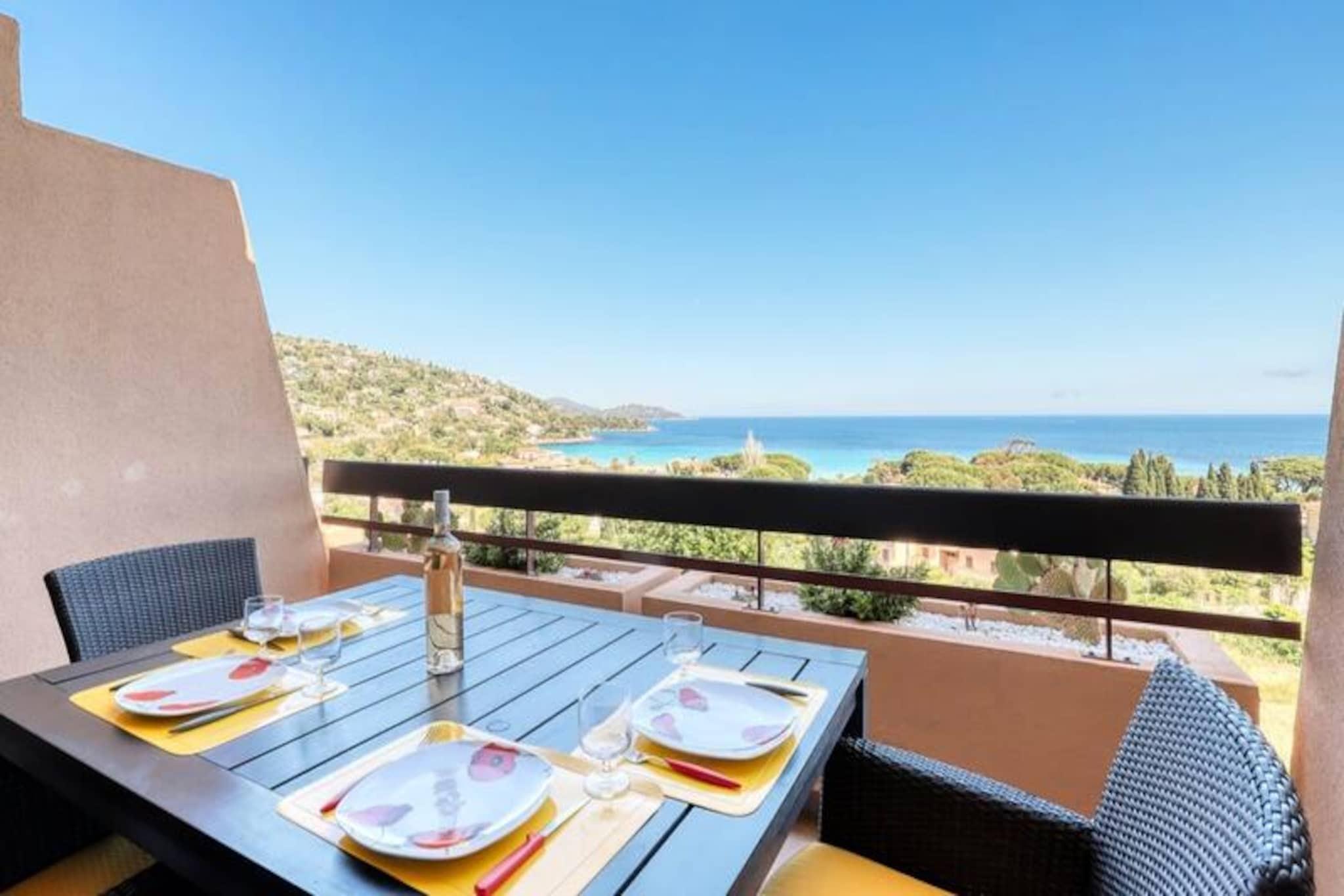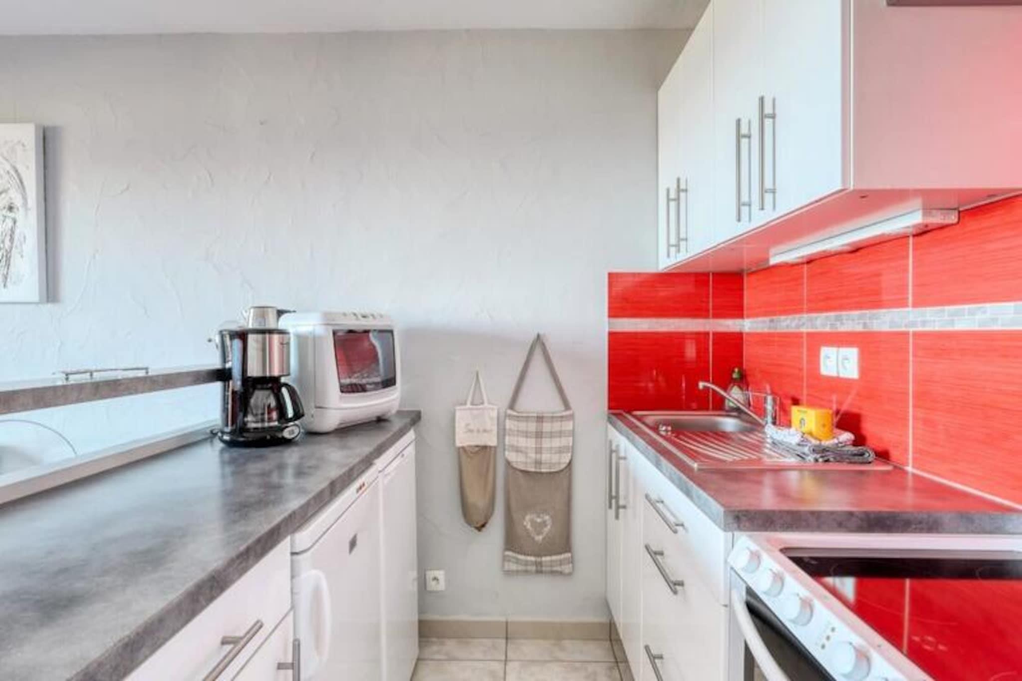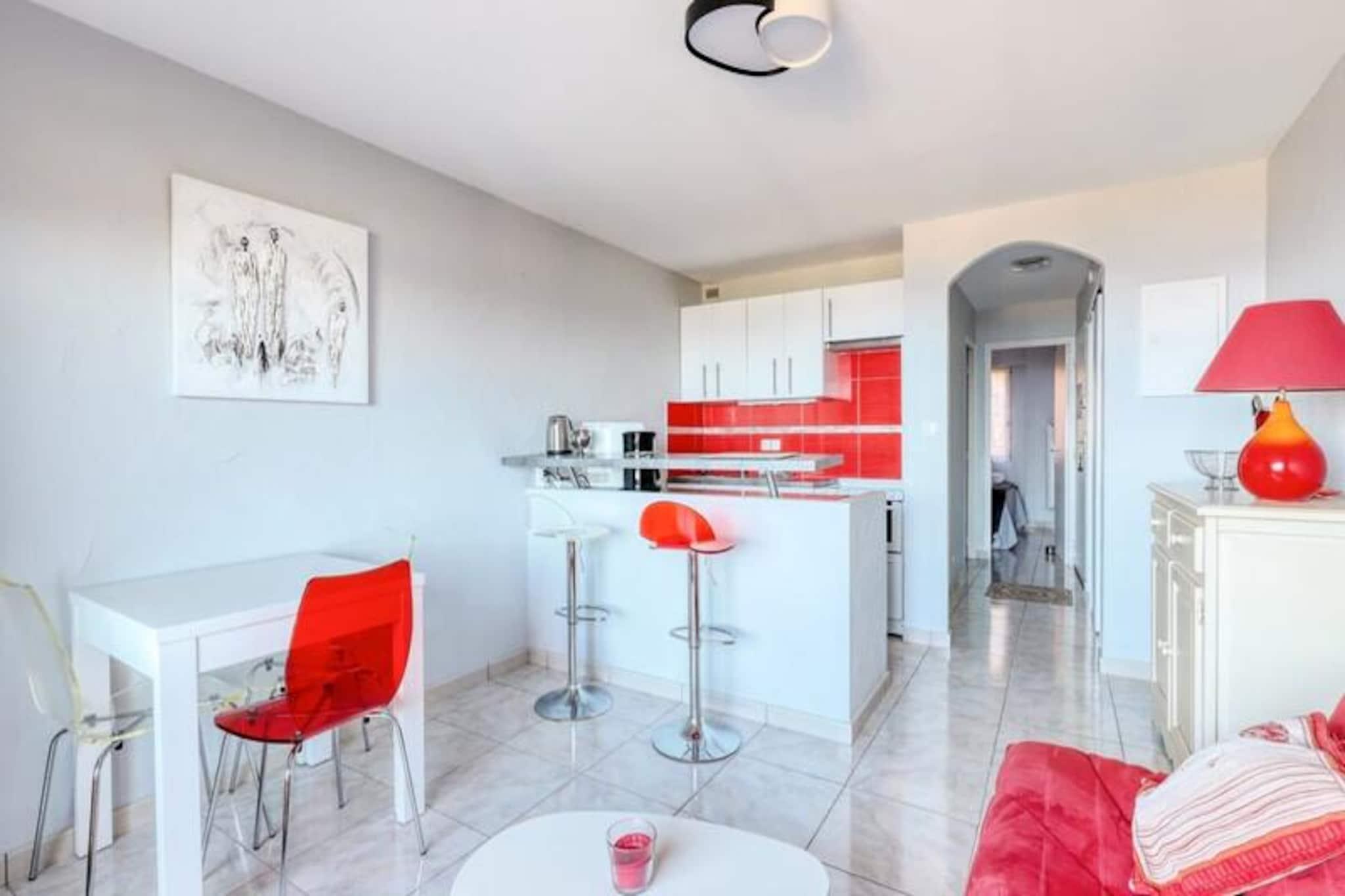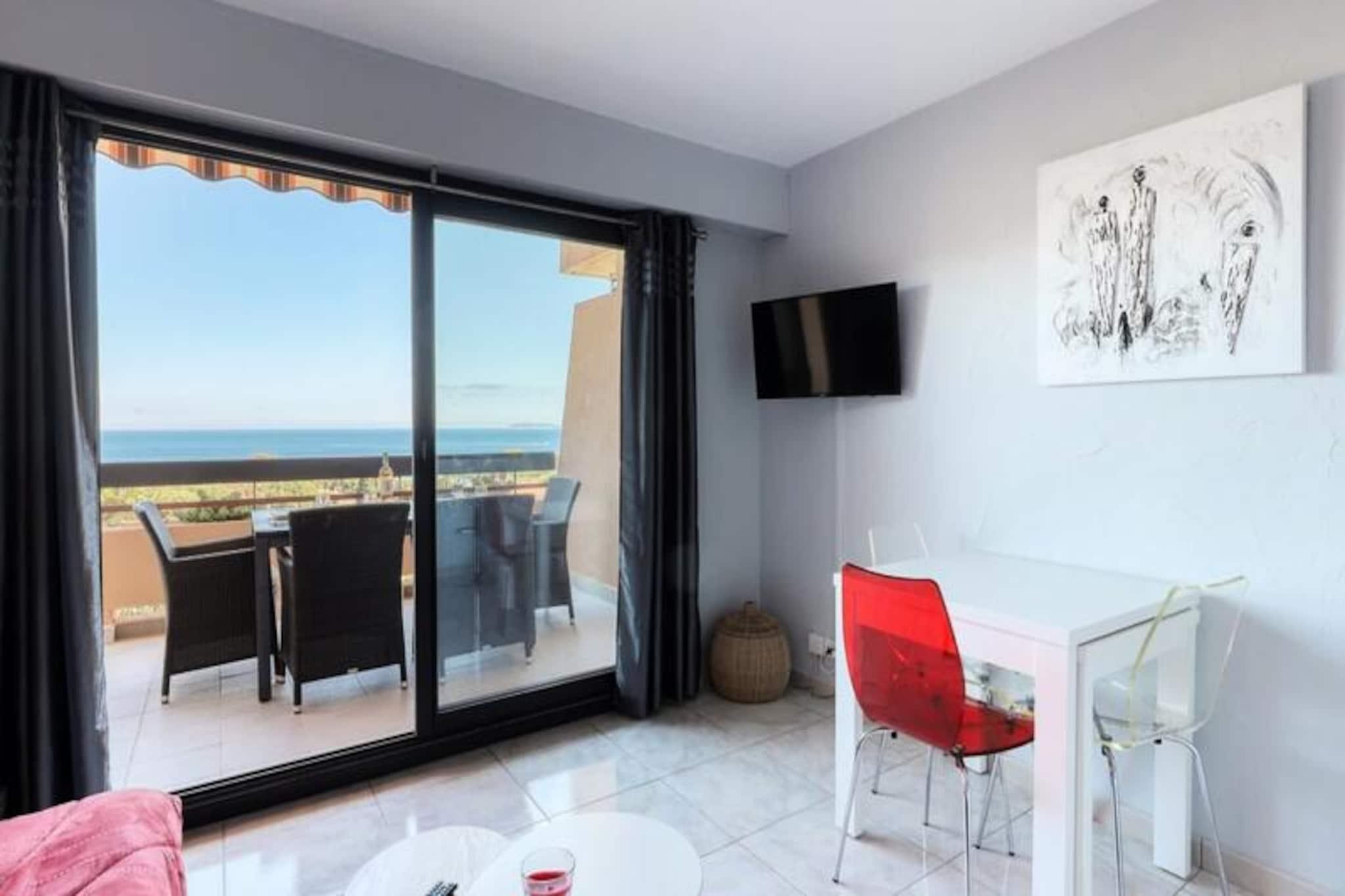 Imagine waking up to the gentle sound of waves and the shimmering expanse of the Mediterranean stretching before you. This charming one-bedroom apartment offers a serene escape with an exceptional sea view that will leave you breathless. Located near the idyllic Saint-Clair beach, it combines modern comfort with the natural beauty of the Côte d'Azur, creating the perfect setting for a memorable vacation. Whether you’re sipping coffee on the terrace or enjoying the cool breeze from the air conditioning, every moment here feels like a retreat into paradise. Inside, the apartment is thoughtfully designed for relaxation and convenience. The fully equipped kitchen invites you to prepare delightful meals, while the washing machine and dishwasher make daily tasks effortless. Towels and linens are provided, with beds made upon arrival for your comfort. The terrace, complete with an awning, is the ideal spot to unwind after a day of exploring, offering panoramic views that capture the essence of coastal living. Private parking ensures ease of access, making your stay as stress-free as possible. Just steps away, Saint-Clair beach awaits with its fine white sand and crystal-clear waters. Known as \