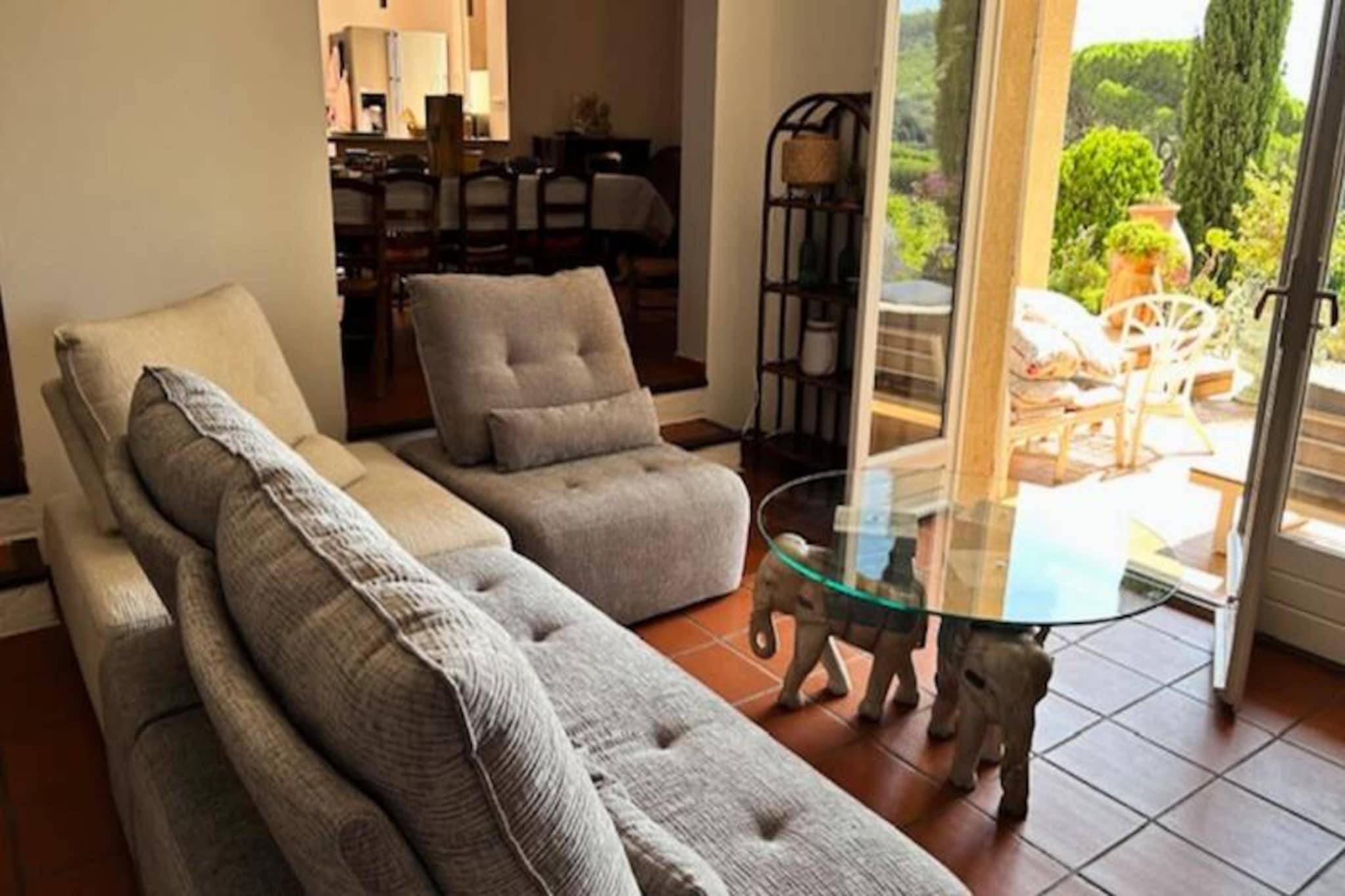 Imagine waking up to the shimmering blue of the Mediterranean stretching out before you, with the Golden Islands glistening on the horizon. This stunning 3-star villa in Cavalière offers an idyllic retreat where comfort meets breathtaking natural beauty. Perfect for families or groups of friends, the villa accommodates up to nine guests in a modern and spacious setting designed for relaxation and unforgettable memories. Step inside to discover a thoughtfully designed interior. The ground floor boasts a fully equipped, recently renovated kitchen, ideal for preparing delicious meals to enjoy on the sunny terrace. The living room, with its cozy sofa and TV, invites you to unwind after a day of adventure. The master bedroom, complete with an en-suite bathroom and sea views, provides a serene escape. Upstairs, three additional bedrooms offer flexible sleeping arrangements, including a queen-size bed with a private bathroom, another queen-size bed with sea views, and a room with a double bed and a single bunk bed. Air conditioning in every room ensures your comfort, while high-speed Wi-Fi keeps you connected. Outside, the villa truly shines. The private pool, surrounded by sun loungers and garden furniture, is perfect for soaking up the sun. Enjoy al fresco dining under the awnings, with an electric griddle at your disposal for delightful outdoor meals. The villa’s elevated position provides panoramic sea views from nearly every corner, creating a magical backdrop for your stay. Located just 1 km from the golden sands of Cavalière Beach, you’re perfectly positioned to enjoy both tranquility and accessibility. Whether you’re lounging by the pool, exploring the nearby beaches, or savoring the local cuisine, this villa offers everything you need for an unforgettable Mediterranean getaway.