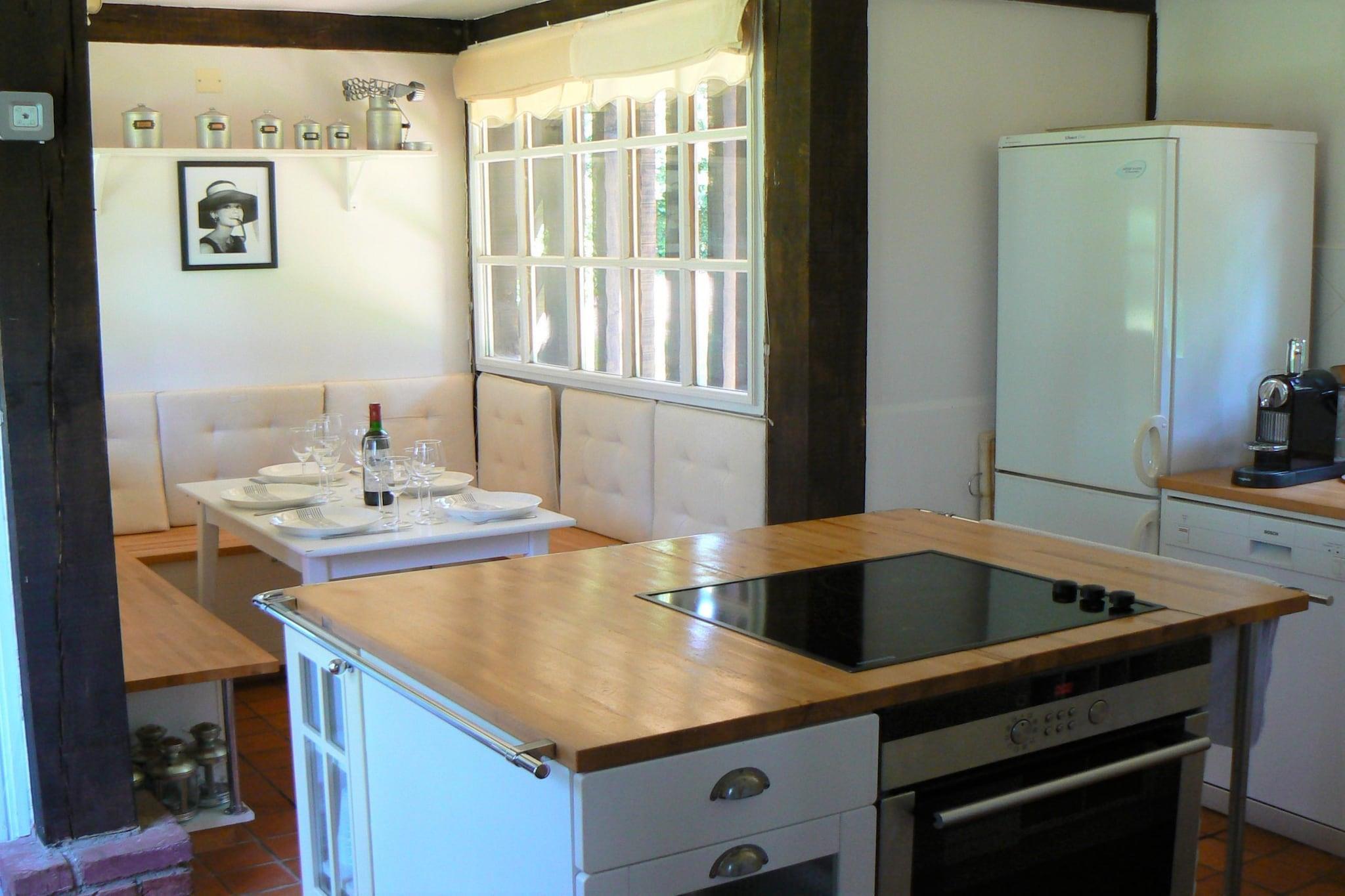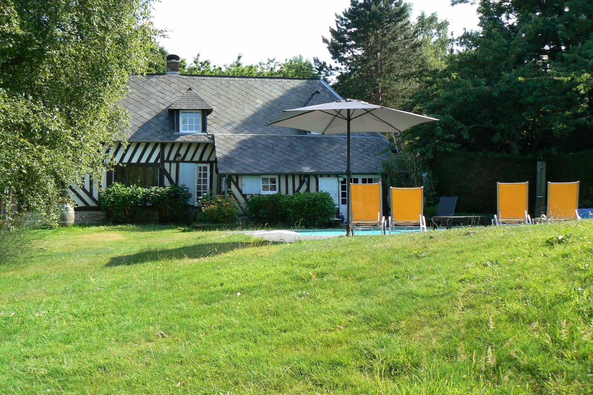 Idyllic Norman property in the hinterland of the popular Flower Coast, only 20 km from the renowned seaside resort of Deauville. Active holiday or chilling out - whichever you prefer! Swimming pool, tennis court, boules court, home cinema, table football etc. are at your exclusive disposal on the beautiful 20 ha estate! Holidaying here is a unique experience for a large family or a small group of friends. The country estate consists of three typical Norman half-timbered houses, a main house, suitable for 4 adults and 4 children with a cosy living area, a well-equipped kitchen, 4 bedrooms, 1 bathroom and 2 showers (shower baths?), a "guest house", for 4 people, with living area, fireplace corner, 2 bedrooms + 2 bathrooms and a third, small cottage, with an authentic home cinema with over 2 000 DVDs and a wide range of different games. The 3 houses have reversible air conditioning.