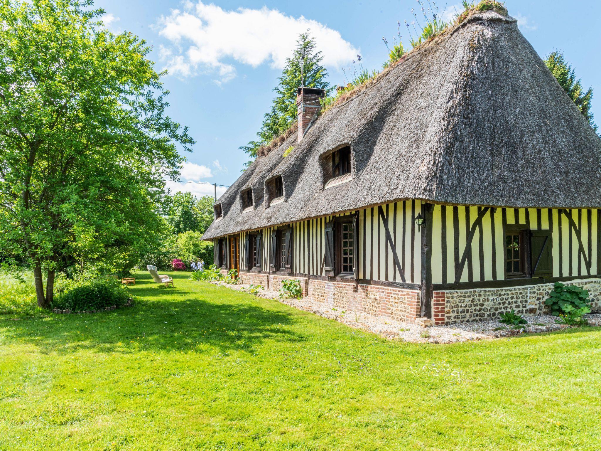 Beautiful country house "La Chaumière", surrounded by trees. In the hamlet Dubus, on the outskirts, 5 km from the centre of Saint Georges de vievre, 20 km from the edge of the forest, 50 km from the sea. For shared use: property 5'000 m2 (fenced), parking (for 4 cars). Bus stop "LIEUREY - Poste" 5.5 km. Nearby attractions: Cormeilles 15 km, Deauville 50 km, Honfleur 40 km, Le Bec hellouin 16 km. Hiking paths: Foret de Brotonne, Le Marais Vernier 35 km. Please note: car recommended.