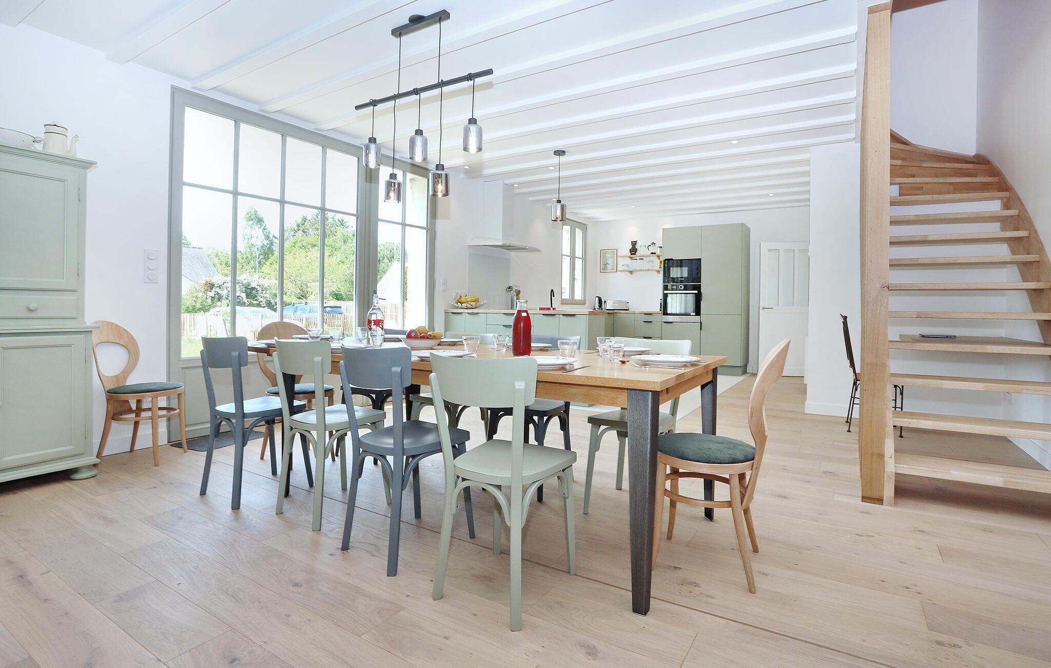 Reisen Sie mit Ihrer Großfamilie oder befreundeten Familien nach Le Minihic-sur-Rance und erleben in dieser geräumigen Unterkunft den perfekten Rahmen für entspannende und erholsame Momente. Genießen Sie die liebevoll eingerichteten und stilvollen Zimmer und garantiert erholsame Nächte für alle. Die kinder- und familienfreundliche Ausstattung lädt zu einem entspannen Ferienalltag und zum Spielen ein. Der große, helle Wohnraum ist das Herzstück des Hauses und vereint Wohnzimmer, Küche und Esszimmer mit direktem Blick auf den Garten.