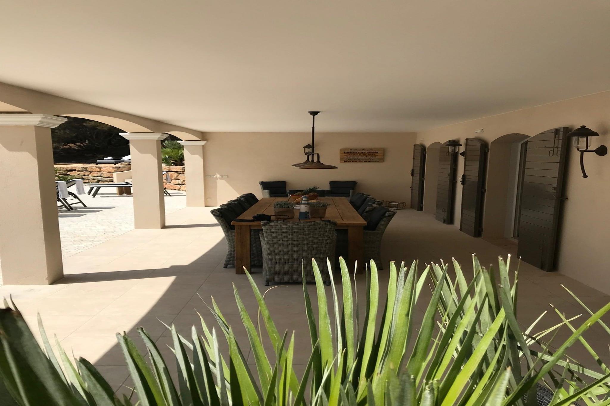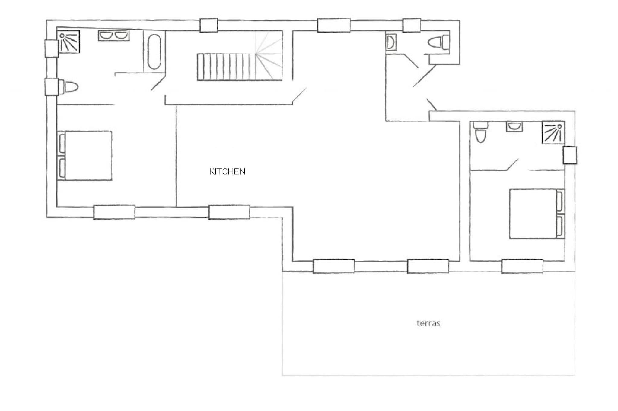 Ground floor: (Kitchen(electric kettle, toaster, cooker(5 ring stoves, ceramic), coffee machine(cups), oven, microwave, dishwasher, fridge-freezer, heating(floor heating), Juicer, Blender), Living/diningroom(TV(satellite), dining table, seating area, DVD player, heating(floor heating)), Bedroom with bathroom(double bed(180 x 200 cm), bath tub, shower, washbasin, washbasin, toilet, heating(through air conditioning), heating(electric), air conditioning), Bedroom with bathroom(double bed(180 x 200 cm), shower, washbasin, toilet, heating(through air conditioning), heating(electric), air conditioning), toilet, storage(tumble dryer, washing machine), terrace, garden furniture, parasol, high chair, high chair) On the 1st floor: (Bedroom with bathroom(single bed(80 x 200 cm), single bed(80 x 200 cm), shower, washbasin, toilet, heating(through air conditioning), heating(electric), air conditioning), Bedroom with bathroom(single bed(90 x 200 cm), single bed(90 x 200 cm), TV(satellite), bath tub, washbasin, toilet, heating(through air conditioning), heating(electric), air conditioning), cot, cot) air conditioning, terrace(private), garden(private, fenced, 10000 m2), garden furniture, BBQ(charcoal), parking, deckchairs, parasol, swimming pool(private, heatable, 10 x 5 m.)