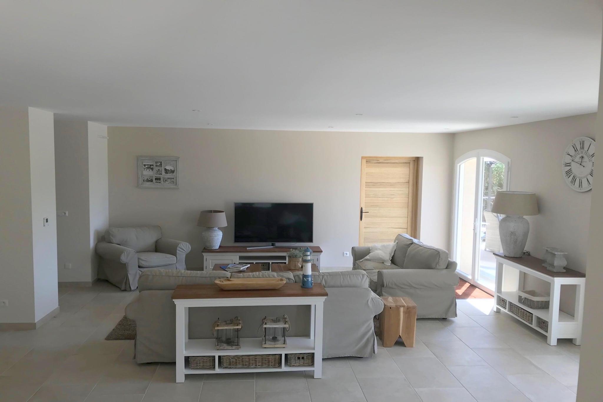 Modern holiday home in Le Plan-de-la-Tour, France with 3 bedrooms which can accommodate up to 6 people. The cosy property near the sea is ideal for a family and friends. It has a swimming pool as well. With a convenient location, general supplies, bakery and restaurants are available in 600 m. The public pool can be enjoyed in just 5 km and sea is just 10 km away. Given the fun surroundings, the property can be great for a fun stay with friends or family. The child-friendly property comes with amenities like; T.V, garden, Boules court, swimming pool, terrace with barbecue facility and much more. It is an ideal spot for a holiday with a cosy vacation vibe. The Toulon Hyères airport is just about 57 km away. Motorway in 15 km.