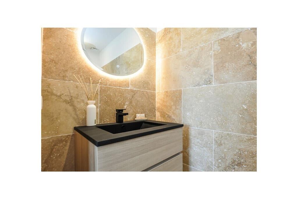 This recently built, cozy holiday home offers a relaxed living environment for up to 6 people. The ground floor comprises a living/dining room with a TV and sliding doors leading to the terrace overlooking the pool, an open-plan and modern, fully equipped kitchen, a guest toilet, and a separate utility room for a washing machine and dryer. The upper floor features three beautifully furnished bedrooms, two bathrooms, and a separate toilet. The living room opens onto a covered terrace with a dining area. The heated swimming pool is shared with the neighboring house. Enjoy the pool from one of the sun loungers on the pool terrace. The garden is beautifully landscaped with oleander, bamboo, lavender, palm trees, and olive trees.