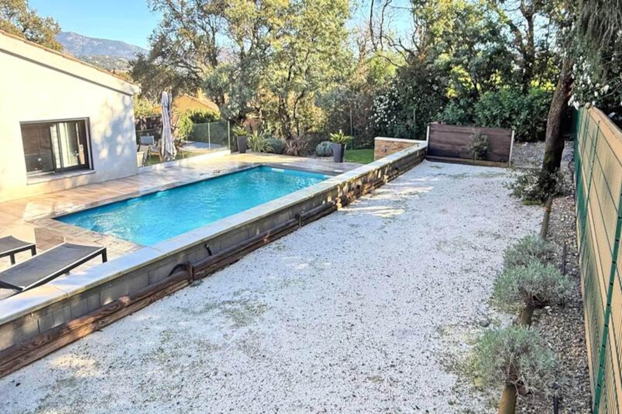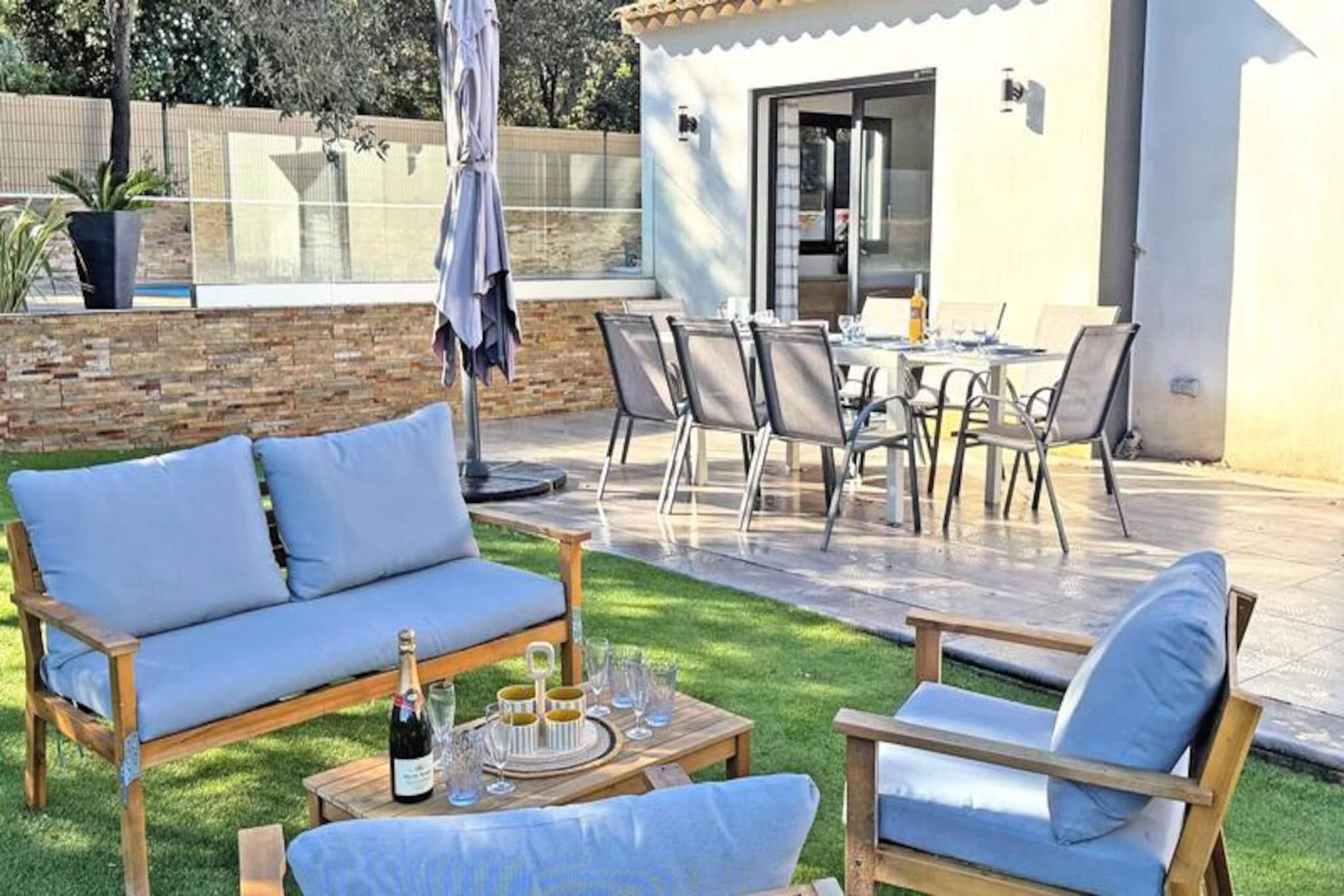 In the heart of the French Riviera, this charming 5-room villa offers a serene escape surrounded by the beauty of Provence. Set on a spacious 750 m² enclosed plot, this property is perfect for families or groups of friends seeking a peaceful retreat with modern comforts. The villa is nestled in a quiet residential area, just a short distance from the picturesque village of Plan de la Tour and the vibrant coastal town of Sainte-Maxime, offering the best of both worlds: tranquility and accessibility to the region's highlights. Inside, the villa's air-conditioned interiors provide a cool and inviting atmosphere. The main house features two comfortable bedrooms, each with its own en-suite bathroom, and a mezzanine for additional sleeping space. The open-plan kitchen is fully equipped with modern appliances, making it easy to prepare delicious meals to enjoy in the dining area or on the terrace. The separate apartment adds extra privacy with its own kitchen, living area, bedroom, and mezzanine, accommodating up to eight guests in total. WiFi and fiber internet ensure you stay connected, while the cozy living spaces invite relaxation after a day of exploring. Step outside to discover your private oasis. The 6.5x3m swimming pool, surrounded by sun loungers, is the perfect spot to soak up the Mediterranean sun. A boules pitch and a gas barbecue add to the outdoor entertainment options, while the shaded terrace offers a delightful space for al fresco dining. The secure driveway provides parking for up to five vehicles, ensuring convenience for all guests. With the charming village of Plan de la Tour just 1,100 meters away, you can easily explore local shops, markets, and restaurants. The sandy beaches of Sainte-Maxime are only a 15-minute drive, offering endless opportunities for seaside relaxation and water activities. Whether you're savoring Provençal cuisine, strolling through vineyards, or enjoying the vibrant coastal life, this villa is your gateway to an unforgettable holiday in the South of France.