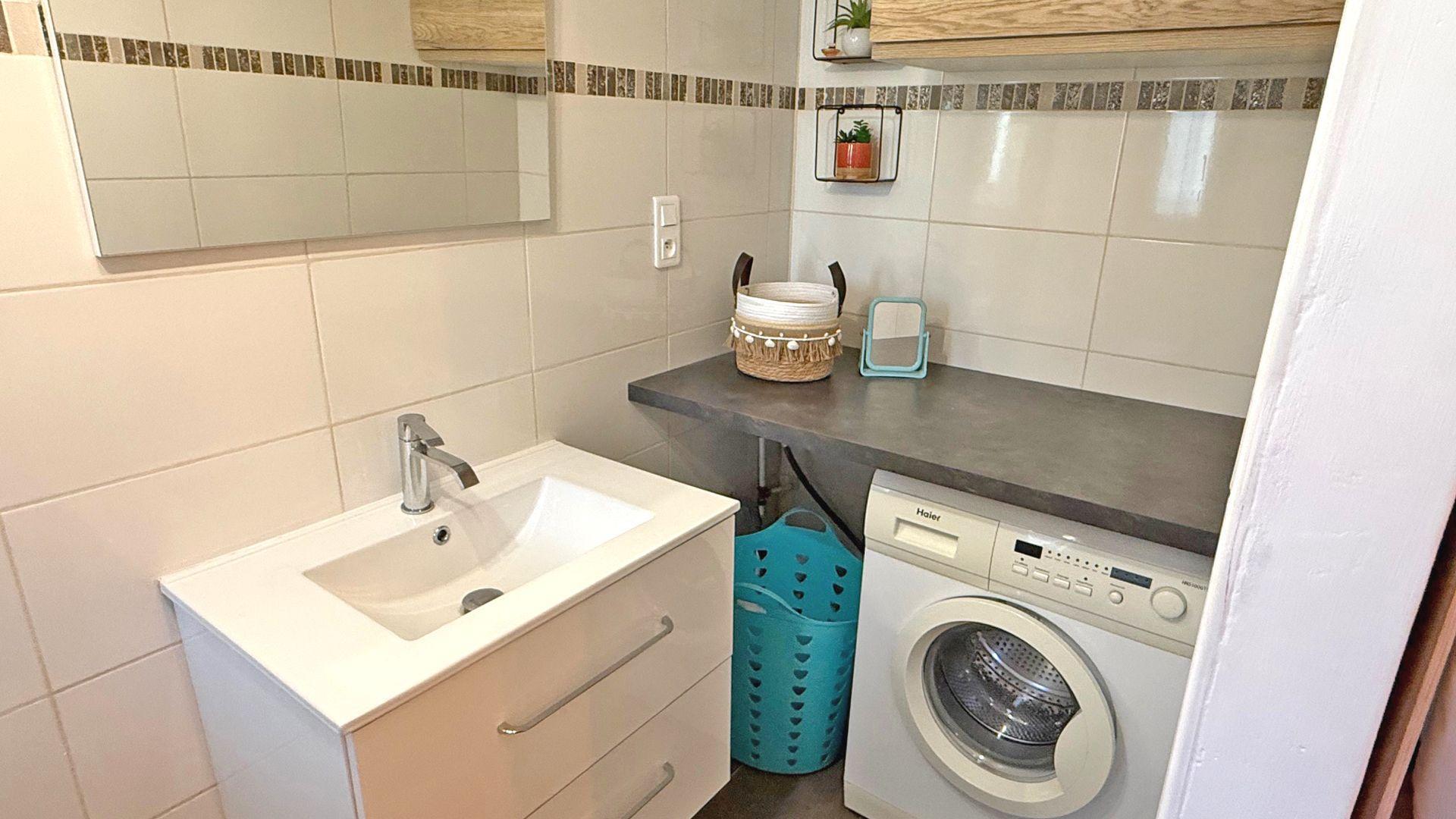 - Air-conditioned bedroom 1: 140cm double bed, wardrobe and bathroom with shower, vanity unit and washing machine