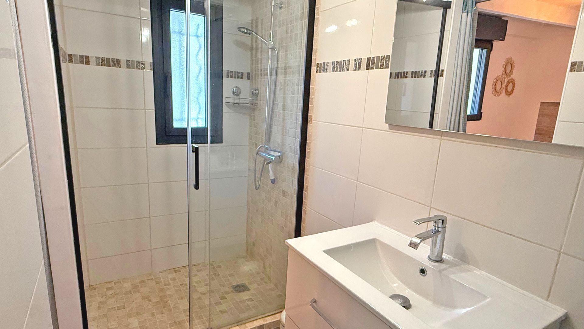 - Bedroom 2 air-conditioned (+ mezzanine storage area): 140cm double bed, wardrobe and shower room with shower and vanity unit
