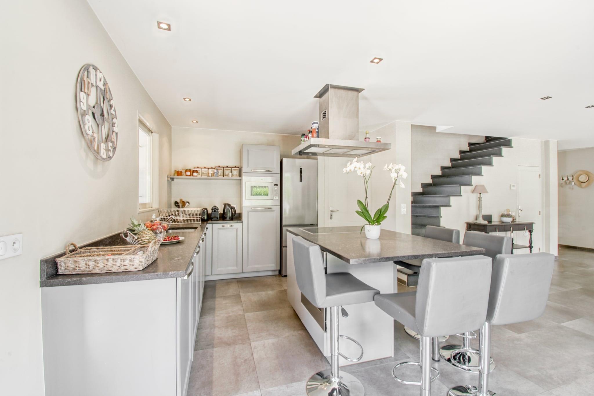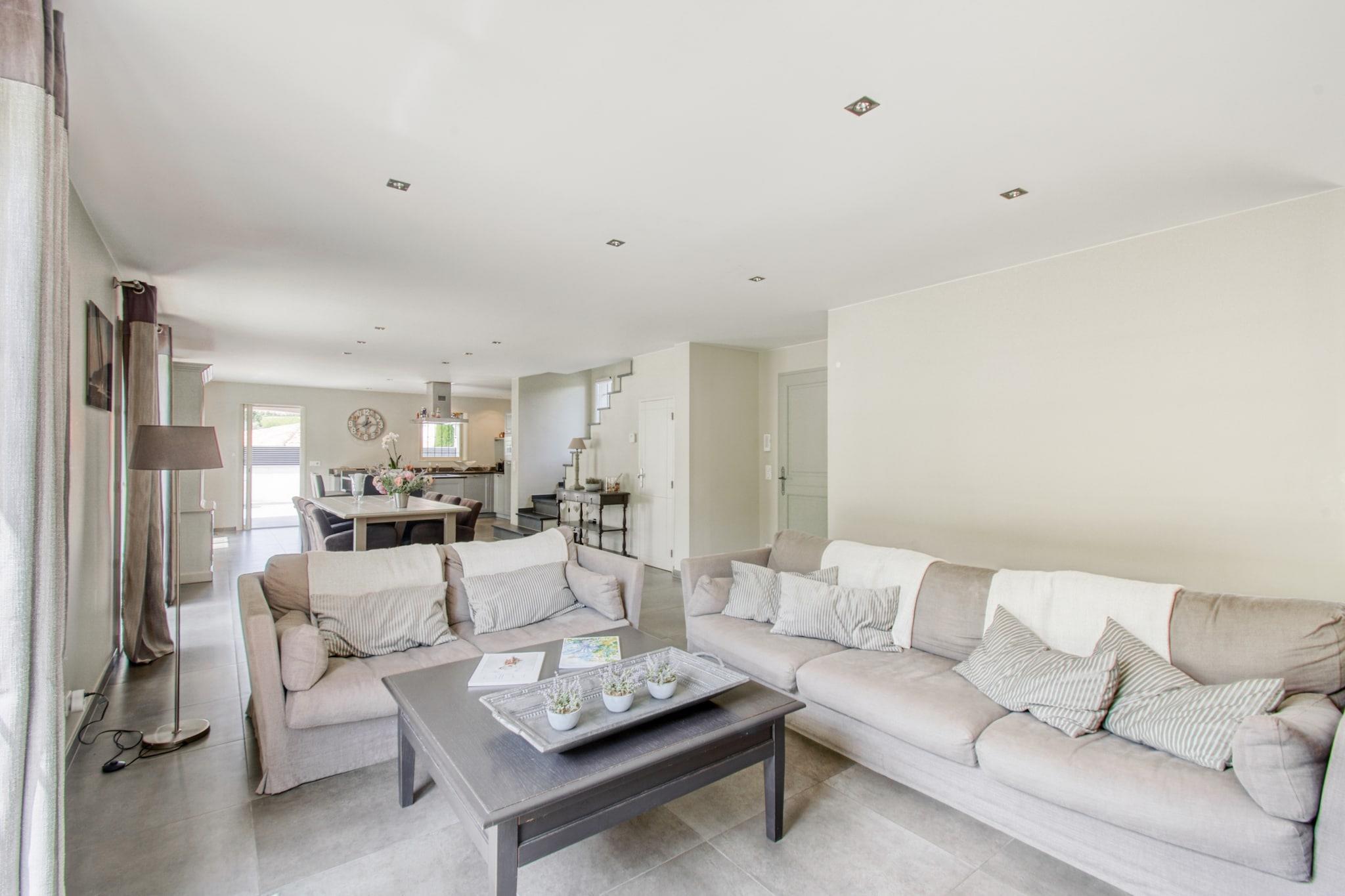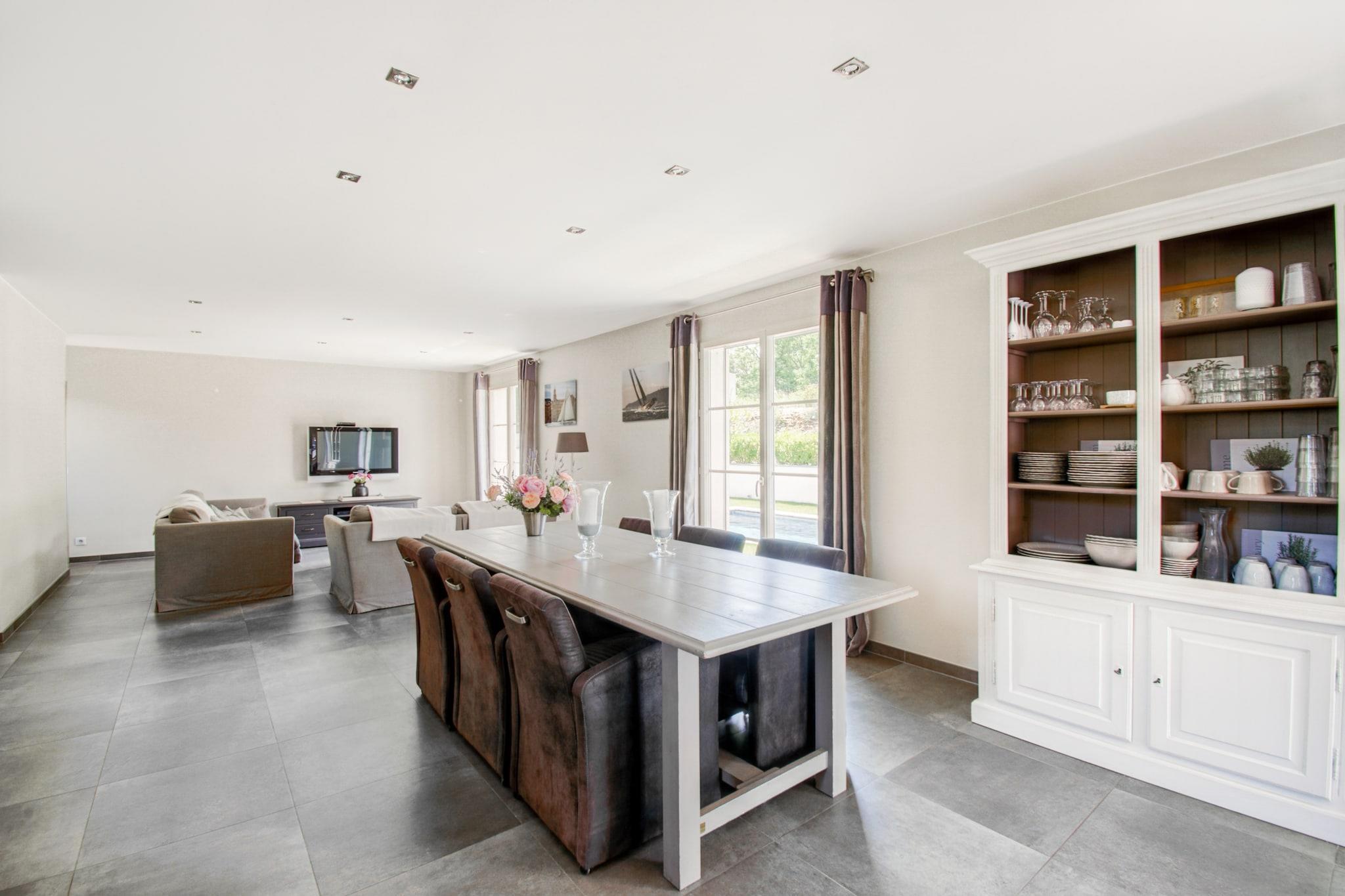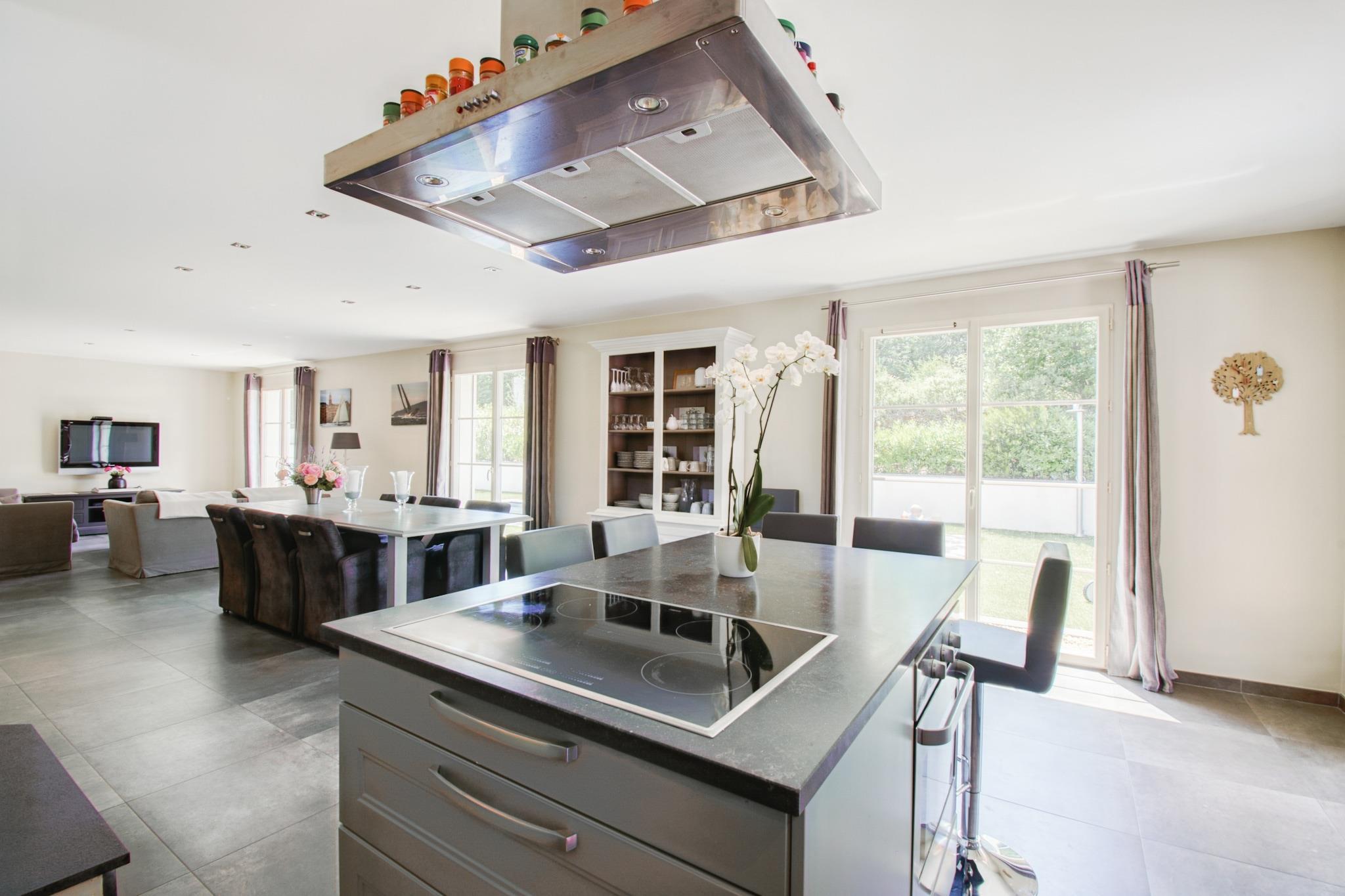 On the garden level, large living room with fitted kitchen (dishwasher, oven, microwave, induction hob, fridge and freezer), central island, dining room and TV lounge.