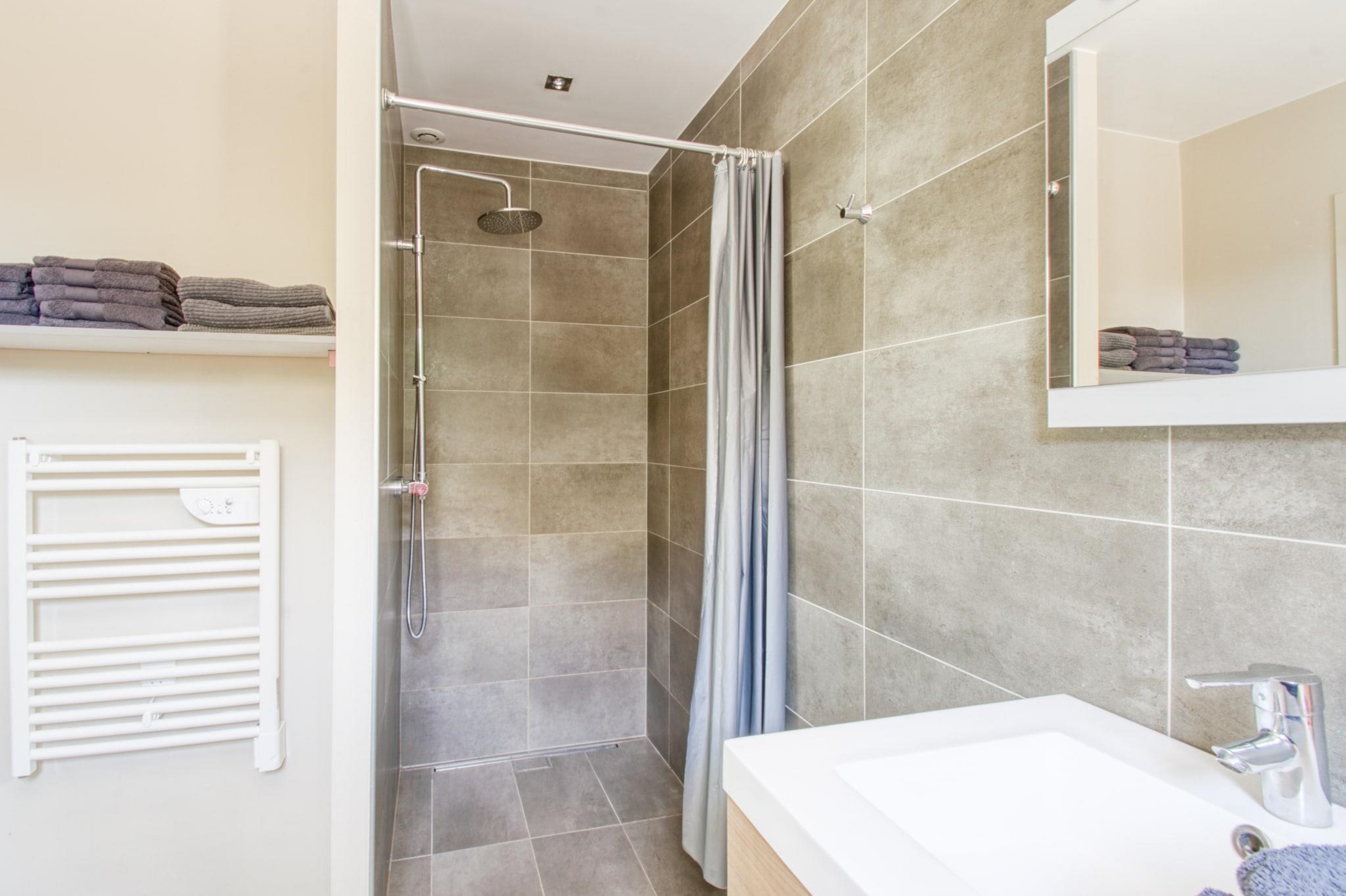 Ground floor: (open kitchen(hob(4 ring stoves), electric kettle, toaster, hood, coffee machine(cups), oven, microwave, dishwasher, fridge-freezer, air conditioning), Living/diningroom(TV, dining table, seating area, air conditioning), Bedroom with bathroom(double bed or 2 single beds(90 x 200 cm), shower, washbasin, toilet, air conditioning), toilet, washing room(fridge, tumble dryer, washing machine)) On the 1st floor: (bedroom(double bed or 2 single beds(90 x 200 cm), air conditioning), bedroom(double bed or 2 single beds(90 x 200 cm), air conditioning), Bedroom with bathroom(double bed or 2 single beds(90 x 200 cm), shower, washbasin, air conditioning), bathroom(shower, washbasin, toilet), toilet) terrace, terrace(roofed), garden, garden furniture, sun loungers, BBQ(gas), swimming pool(private, cover, 10 x 3 m.), boules court, children's bed, high chair