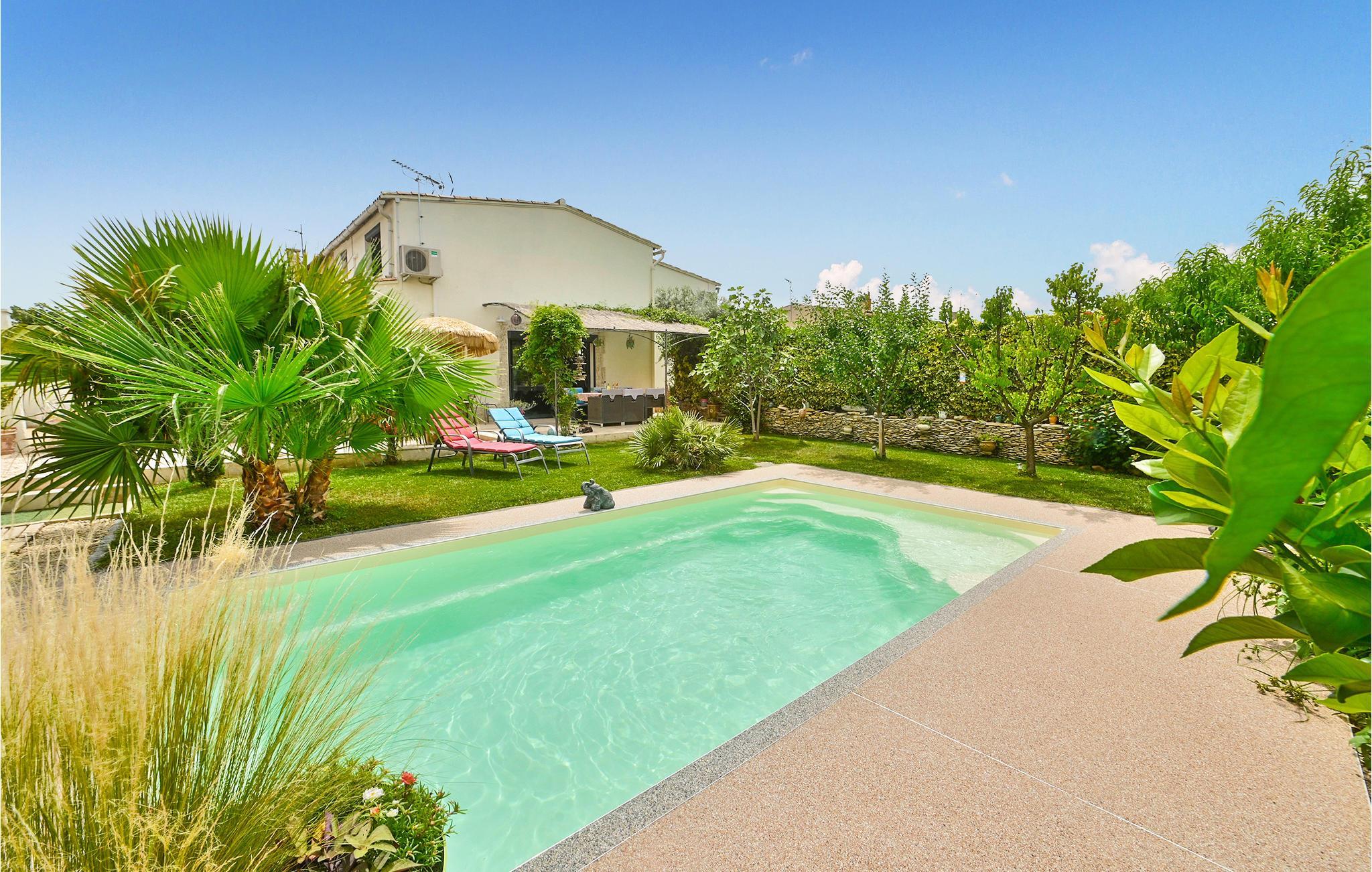 Einladendes klimatisiertes Ferienhaus mit privatem Pool und Whirlpool im Freien.