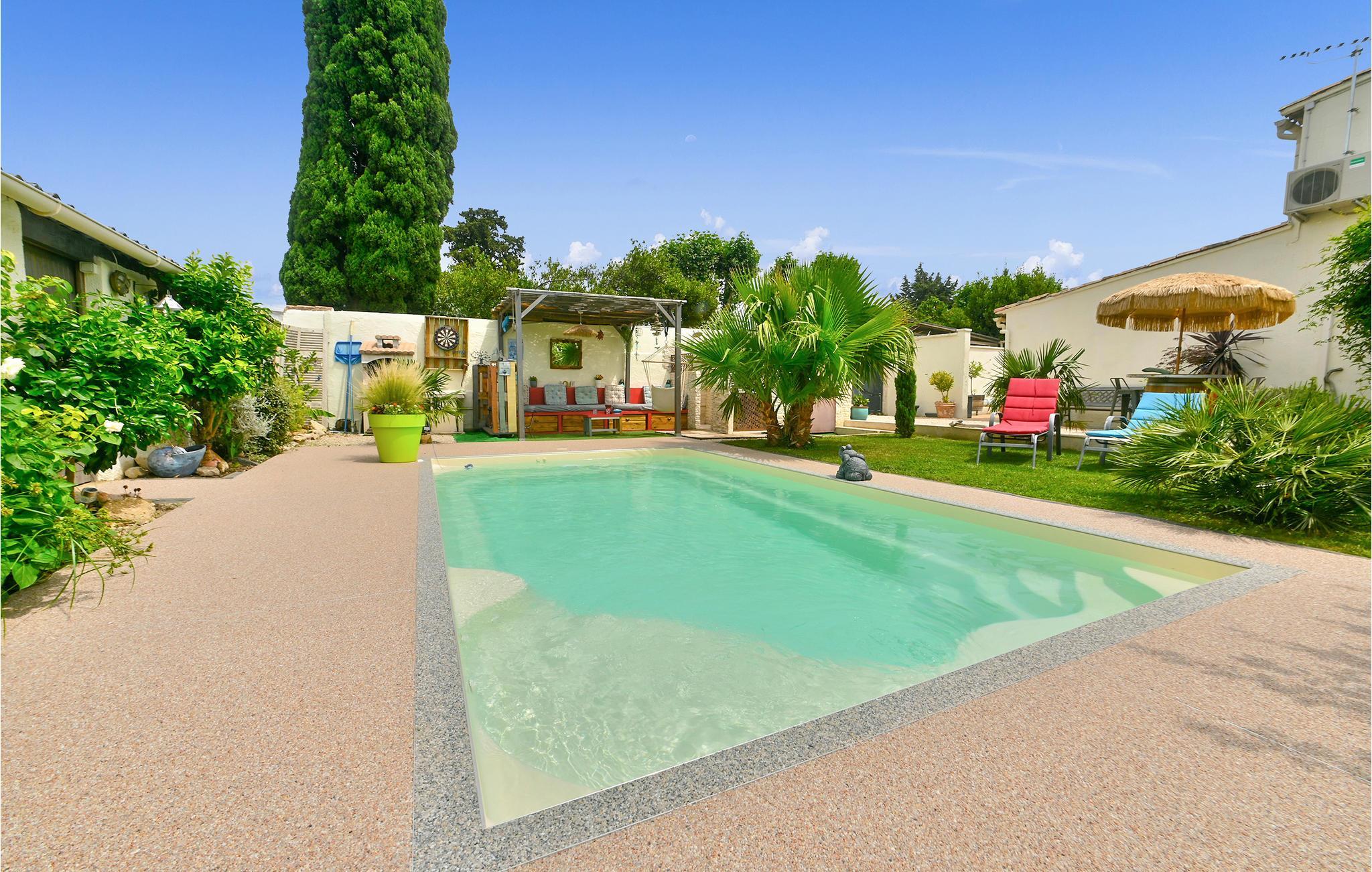 Dieses schöne Ferienhaus erwartet seine Gäste nur 10 Minuten vom Zentrum von Avignon entfernt. Es bietet neben dem Wohnzimmer die voll ausgestattete Küche, 3 Schlafzimmer, 1 Badezimmer sowie 2 Toiletten.