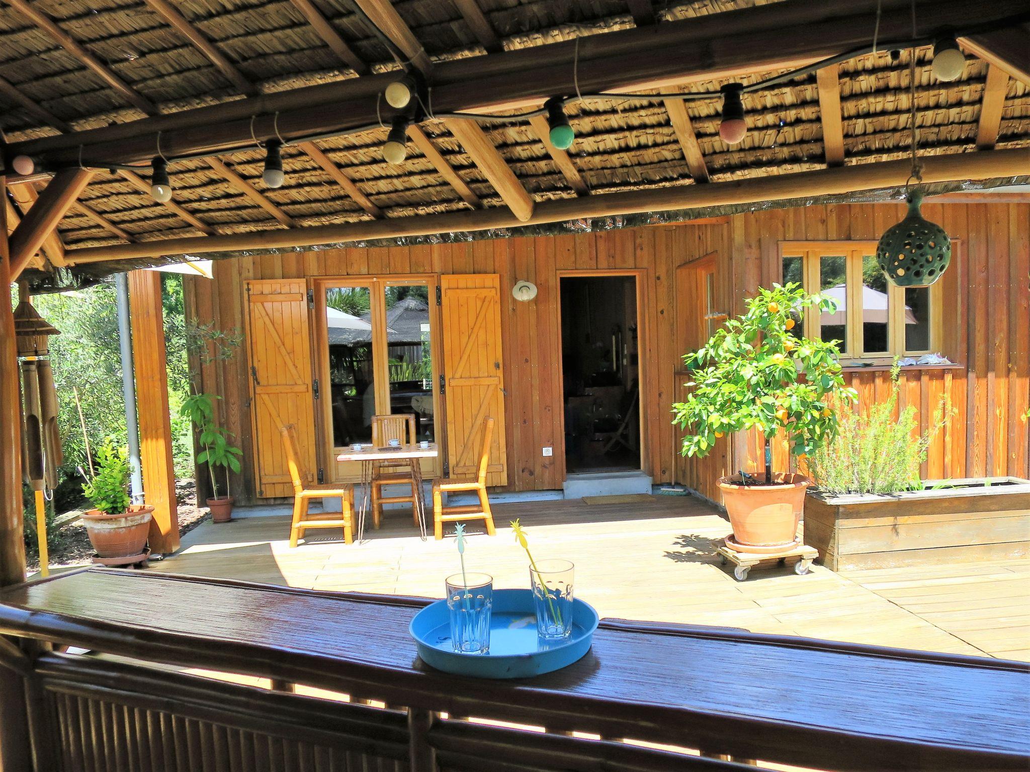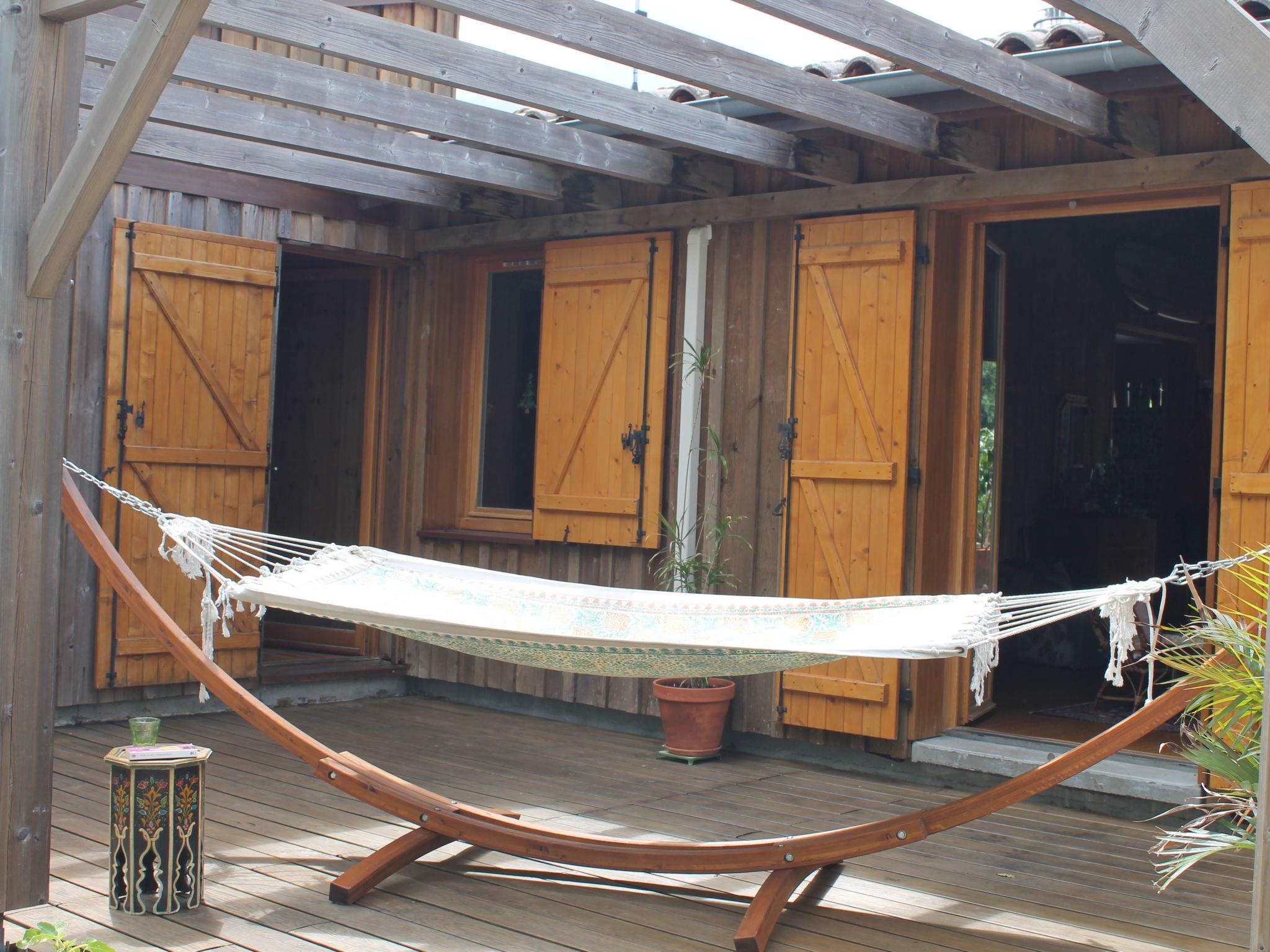 Single-family house "Ti Kaz Doudou", surrounded by trees. In the district of Ferron 1.5 km from the centre of Le Porge, 32 km from the centre of Cap Ferret, 50 km from the centre of Bordeaux, 9 km from the sea. Private: property 800 m2 (fenced) with trees, swimming pool (above ground) (4 m diameter, depth 130 cm, seasonal availability: 15.Jun. - 30.Sep.). Pergola, pool maintenance by the owner/gardener. Parking (for 2 cars) at the house. Shop 1.5 km, bus stop "Le ferron" 20 m, sandy beach "Le Porge Océan" 9 km.
