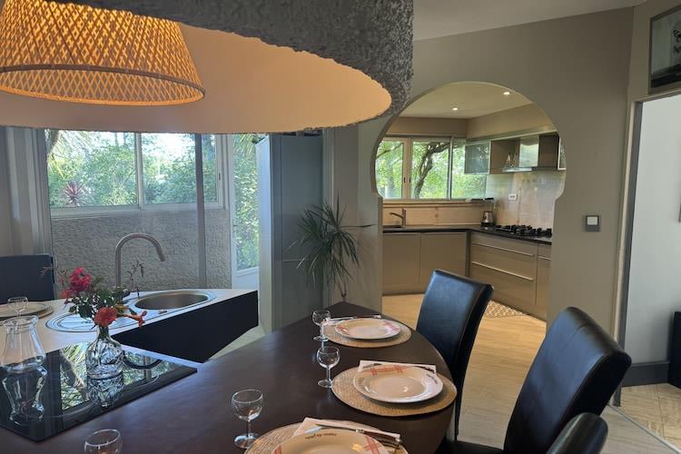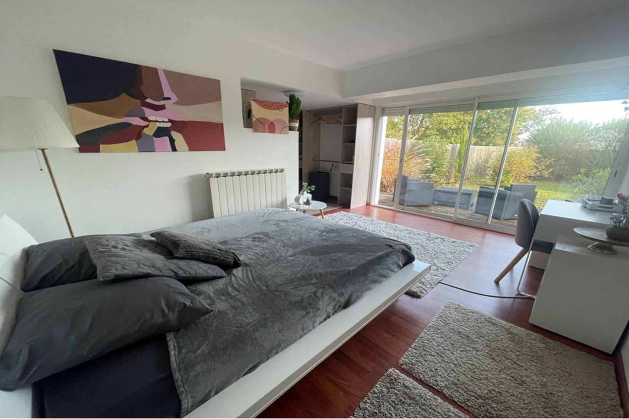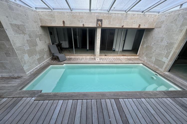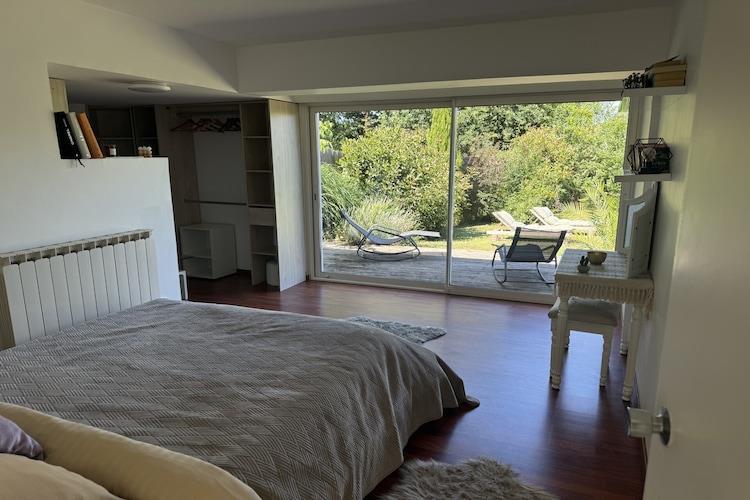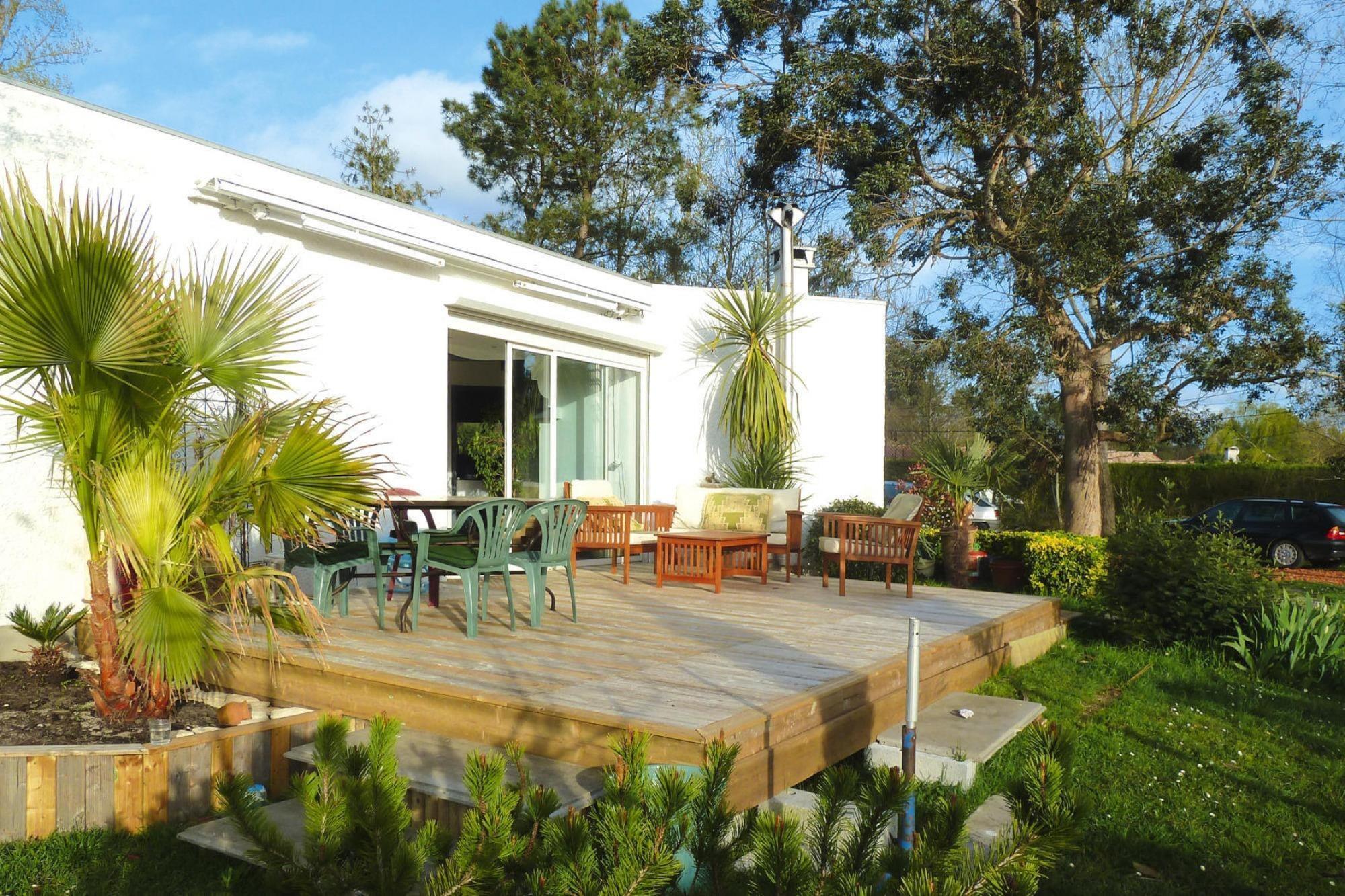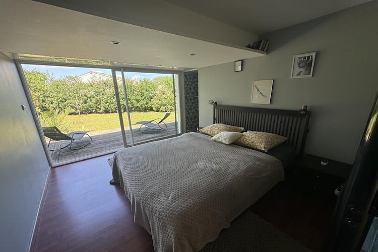 Originally designed holiday villa with private pool (16 sqm) in the atrium: Ground floor bungalow with 4 bedrooms and 3 bathrooms offering excellent comfort and plenty of space for a large family or a group of friends. The chic cooking and dining area in the kitchen and the comfortably designed terrace are the focal point for social gatherings. The location of the house is ideal for trips to the well-known seaside resorts of Lacanau or Arcachon. About eight kilometers from the long, beautiful sandy beach of the Atlantic lies the small community of Le Porge between unspoilt forests in a nature reserve. The famous seaside resort of Lacanau is about 18 kilometers away. You can drive to the center of Bordeaux in around an hour.