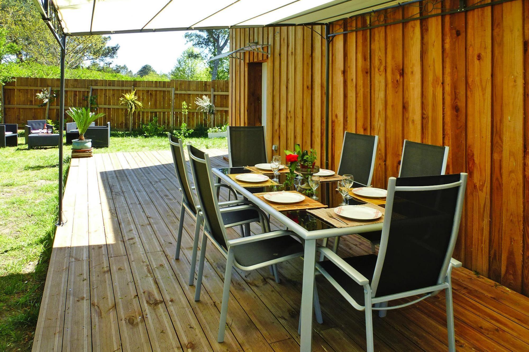 Modern holiday home in a quiet location, a little off the popular bathing resort. Behind the rustic wooden facade hides a tasteful and very comfortable equipment. The large, closed garden property with a cozy lounge corner and a covered terrace is particularly pleasant. Depending on the position of the sun and your mood, you can relax, sunbathe and enjoy pleasant meals outdoors. About eight kilometers from the long sandy beach of the Atlantic, Le Porge lies between unspoilt forests in a nature reserve between the ocean and Lake Lacanau. The popular bathing resort of Lacanau is about 18 kilometers away. You can drive to the center of Bordeaux in around an hour.