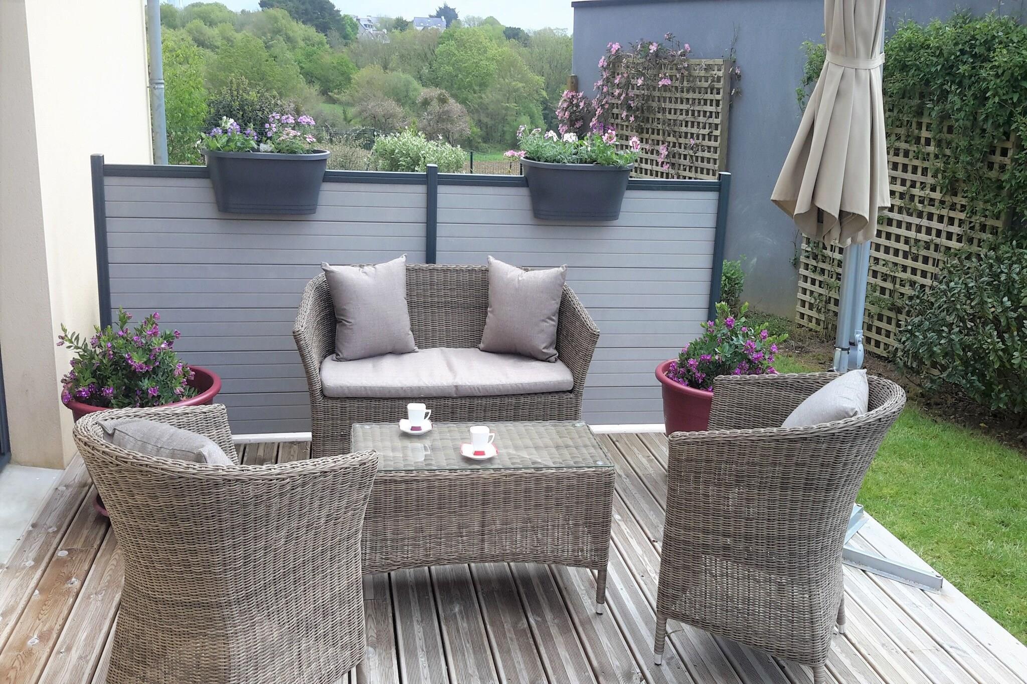 Located on a small hill above the beautiful sandy bay of the popular bathing resort in a well-kept residential area. In the bright, light-flooded rooms of the comfortable holiday home, there is a slight holiday mood thanks to the maritime decoration. Families with children are very welcome here (baby equipment available). From the spacious terrace you can see down to the sea. On foot or by bike, you can follow the coast on small customs officers' paths to the picturesque port of Doëlan or to the Belon oyster river. In a few minutes you can reach the Plomeur golf course, which is known for its magnificent location directly on the sea.Activities nearby: The central location in the border area between the two very different departments of Finistère and Morbihan is advantageous. to the north are the artists' town of Pont-Aven and the port of Concarneau with its fortress built into the sea, a little further south the Gulf of Morbihan, the Carnac menhirs and the Quiberon peninsula